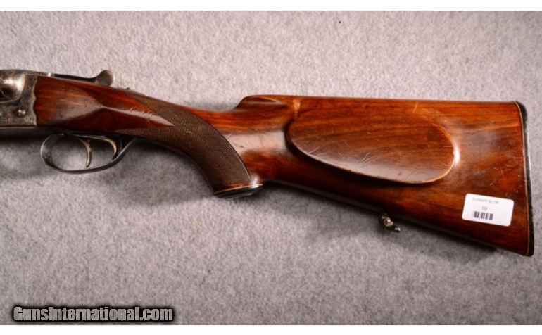 Description: Beautiful 16 Gauge shotgun with all the style for field hunts with classic guns. SOLD Caliber Info: 16 Ga. Chambers: 2 3/4 Metal Condition: Some oxidation over the entire surface in spots and a small dent in the right barrel Wood Condition: Line dents over all the wood Bore Condition: Dark Barrels: 28" Solid rib Stock: European walnut Stock Dimensions: 14 3/8" LOP Fore End: Walnut Butt Pad: Hard Rubber Weight: 6 LB 11 oz Sights: Gold bead front Chokes: F/IM Item Location: Fort Mill, SC |
