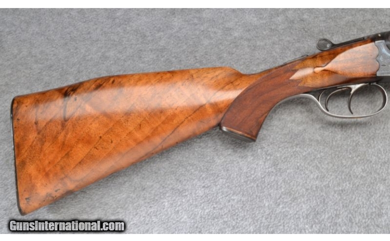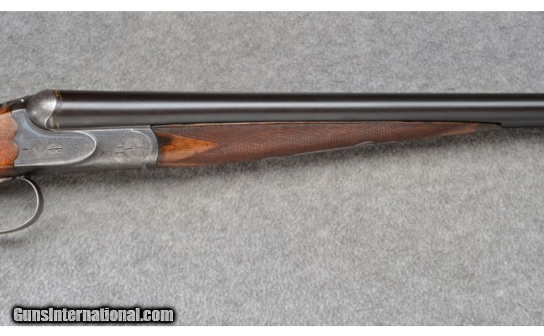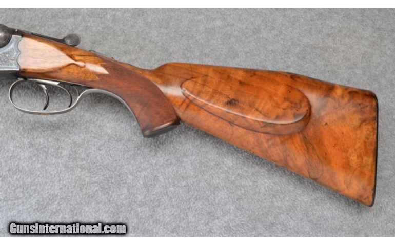 Description: Wood has been professionally restored including checkering recut. Shows little use since restoration. Barrel under rib shows evidence that a sling swivel was removed at some point with barrels still ringing properly. Receiver is nicely engraved with a bit of carry wear. Lockup remains tight. Solid old German double. SOLD Manufacturer: S/N - 7XXX Caliber Info: 16 Ga. Chambers: 2 1/2 in. Metal Condition: Very Good Wood Condition: Very Good - Restored Bore Condition: Excellent Barrels: 30 in. Triggers: Double Stock: Checkered Walnut P. G. - Restored Stock Dimensions: 13 7/8 in. LOP Fore End: Checkered Walnut Splinter - Restored Butt Pad: Serrated Bone Weight: 6 lbs. Sights: Single Brass Bead Chokes: Full /Full Item Location: Wheeling, WV |