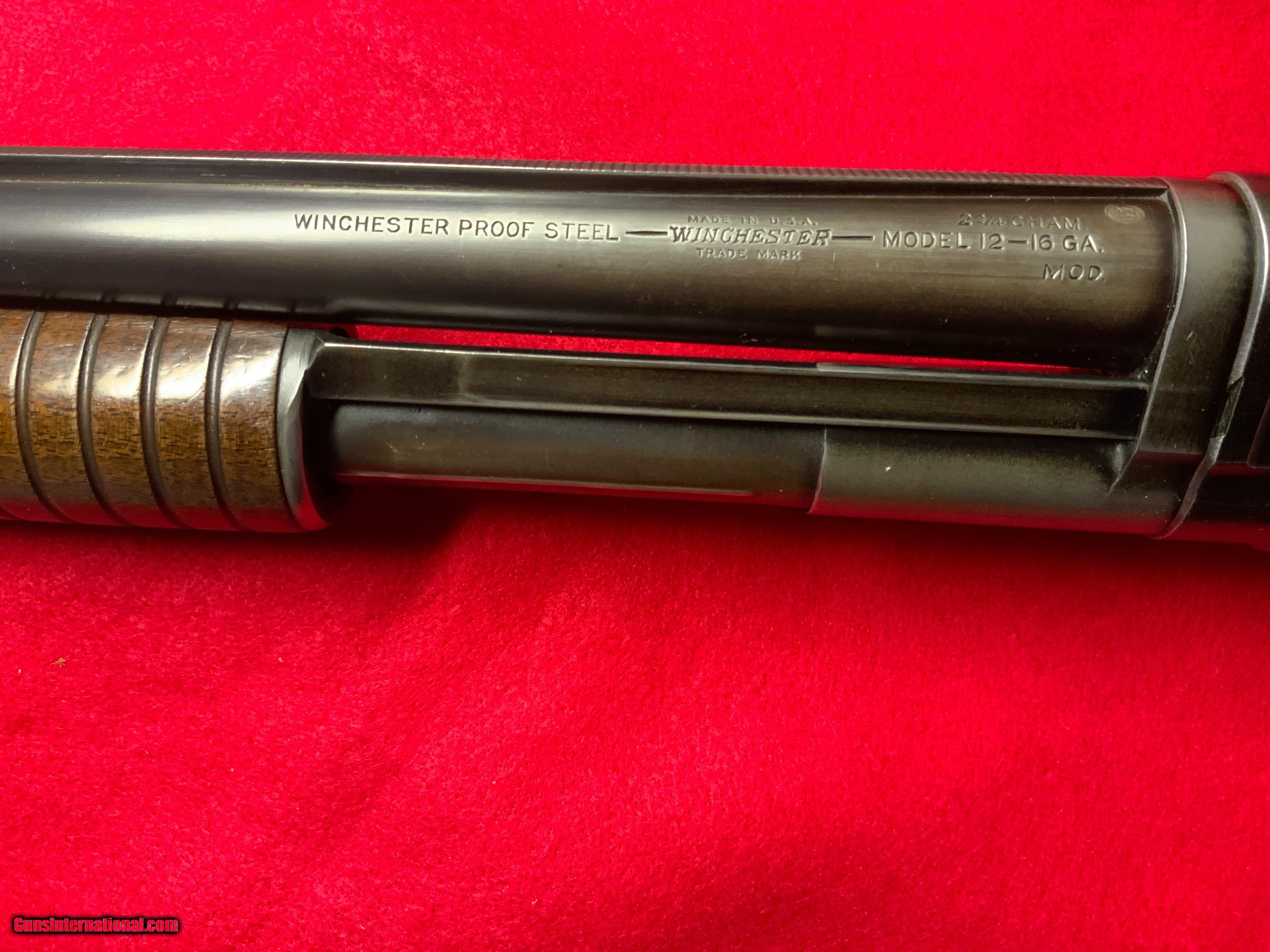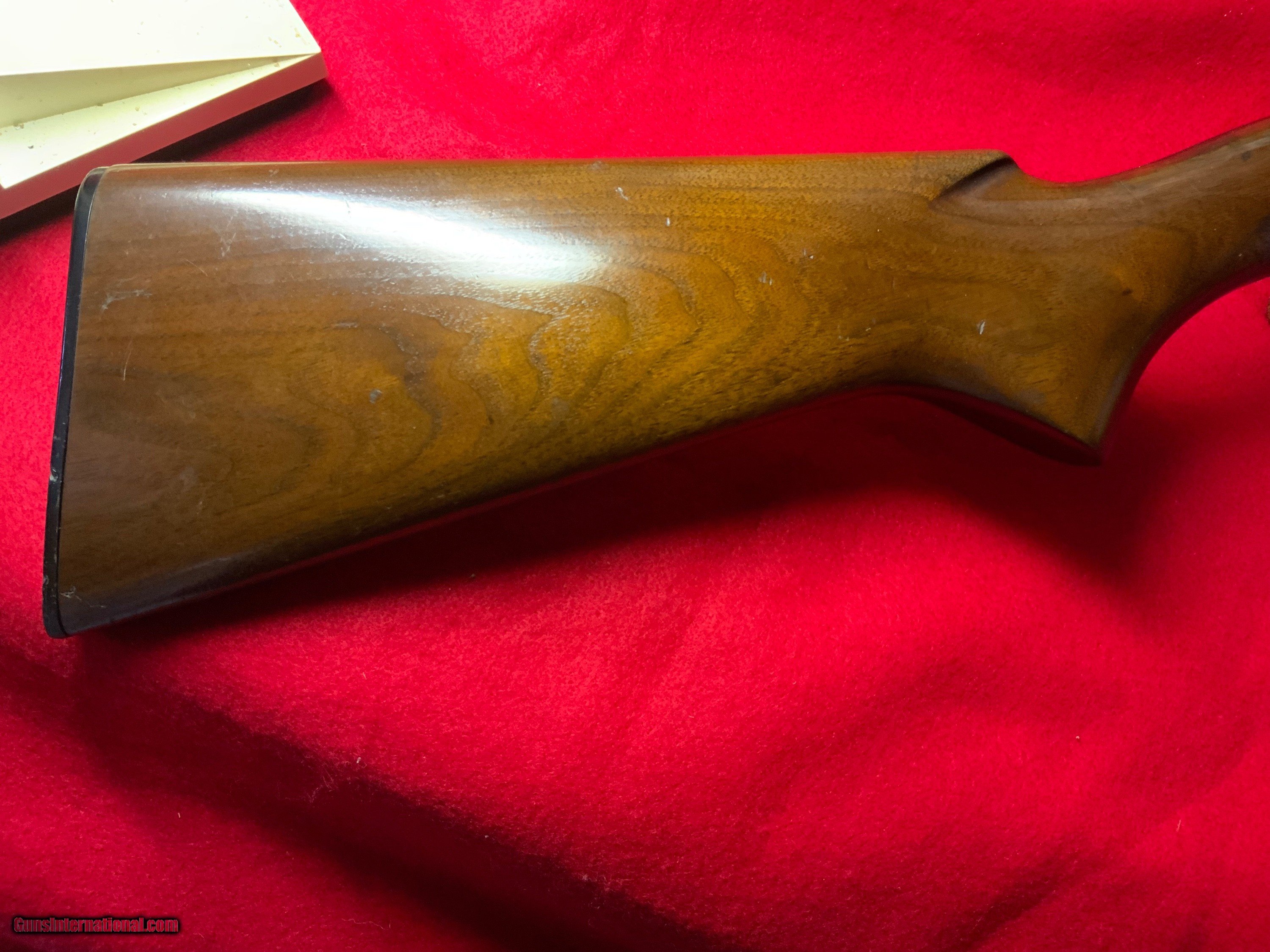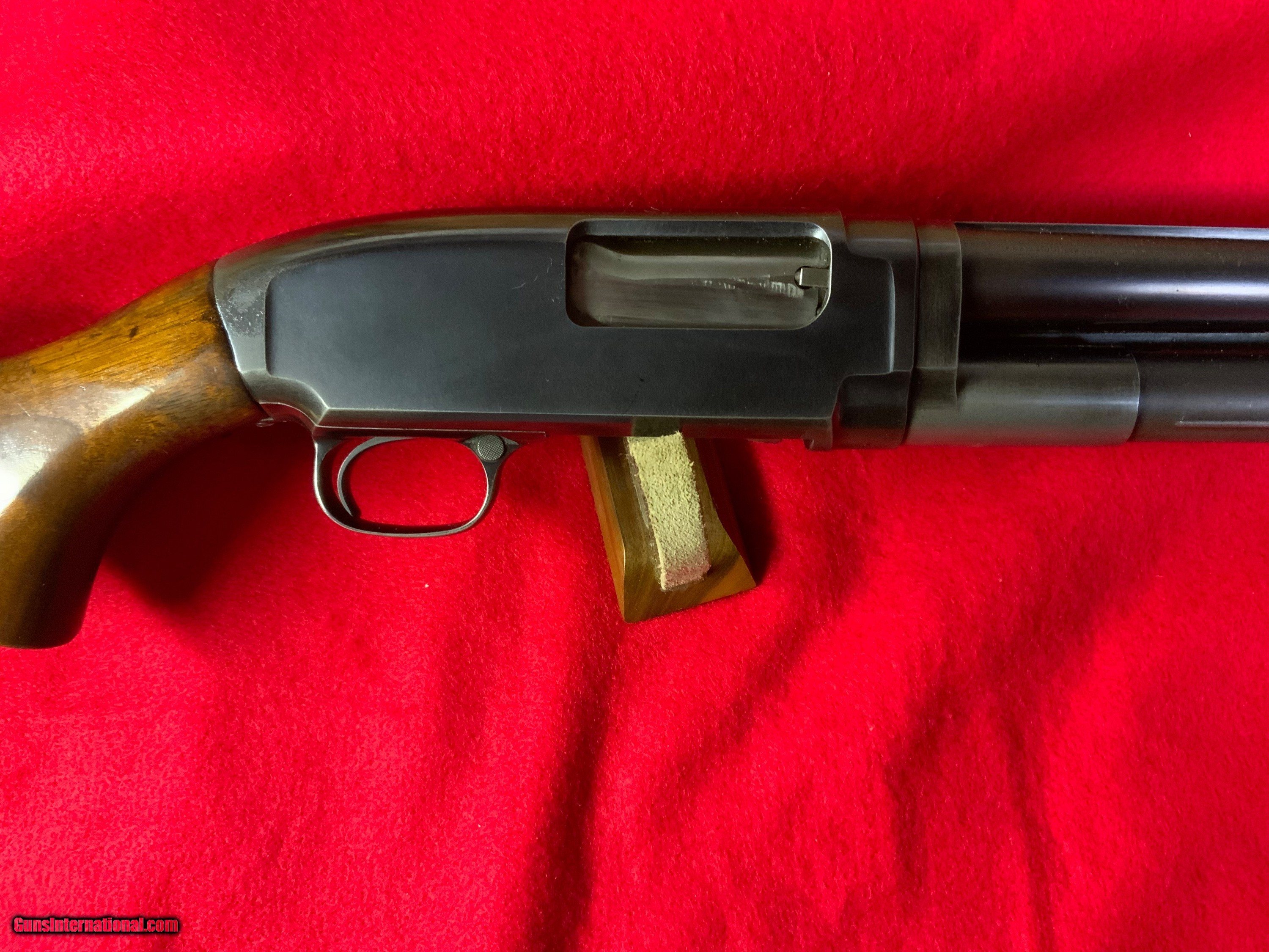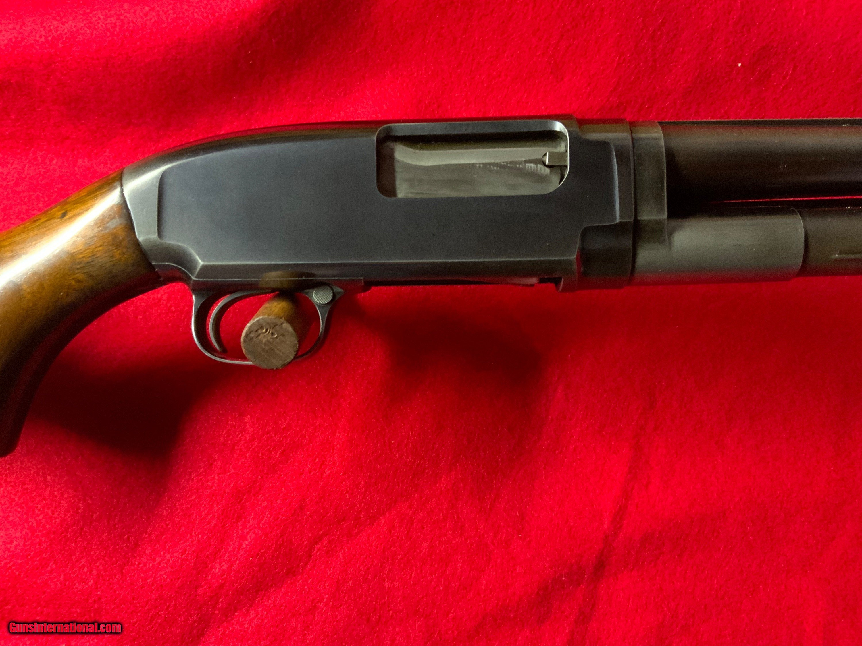 Description: SOLD SN 909900 1942 Cal.16ga. With 26" choked modified.Solid rib brl. Grooved corn cob forearm.Blued receiver retaining 85% original blue. Plain walnut flat knob pistol grip buttstock which terminates with a Winchester HRBP. Weight 6lbs. 7 oz. 2 3/4' chambers. Very good to excellent field use.Barrel with about 90% original blue. Stock is very good with scattered impressions and handling marks. Bore is bright and shiny and mechanics are fine. Great upland game gun and excellent gun for young person starting out hunting. PRICE $1095.00. Buyer pays shipping at $35.00 SOLD Curio/Relic: Yes Shotgun Gauge: 16 Gauge Manufacturer: Winchester Model: 12 Serial Number: 909900 Barrel Length: 26” Bore: Smooth Chambers: 2 3/4 ‘ Ejectors: Yes Condition: Very good to excellent Metal Condition: 87% Wood Condition: 93% Bore Condition: Mirror Barrels: Single Barrel Type: Shotgun Action: Pump Triggers: Single Stock: Walnut Stock Cast: Straight Fore End: Corncob Butt Pad: No LOP: 14” Rib: Solid Weight: 6lbs 7oz Sights: Open Manufacture Date: 1942 |