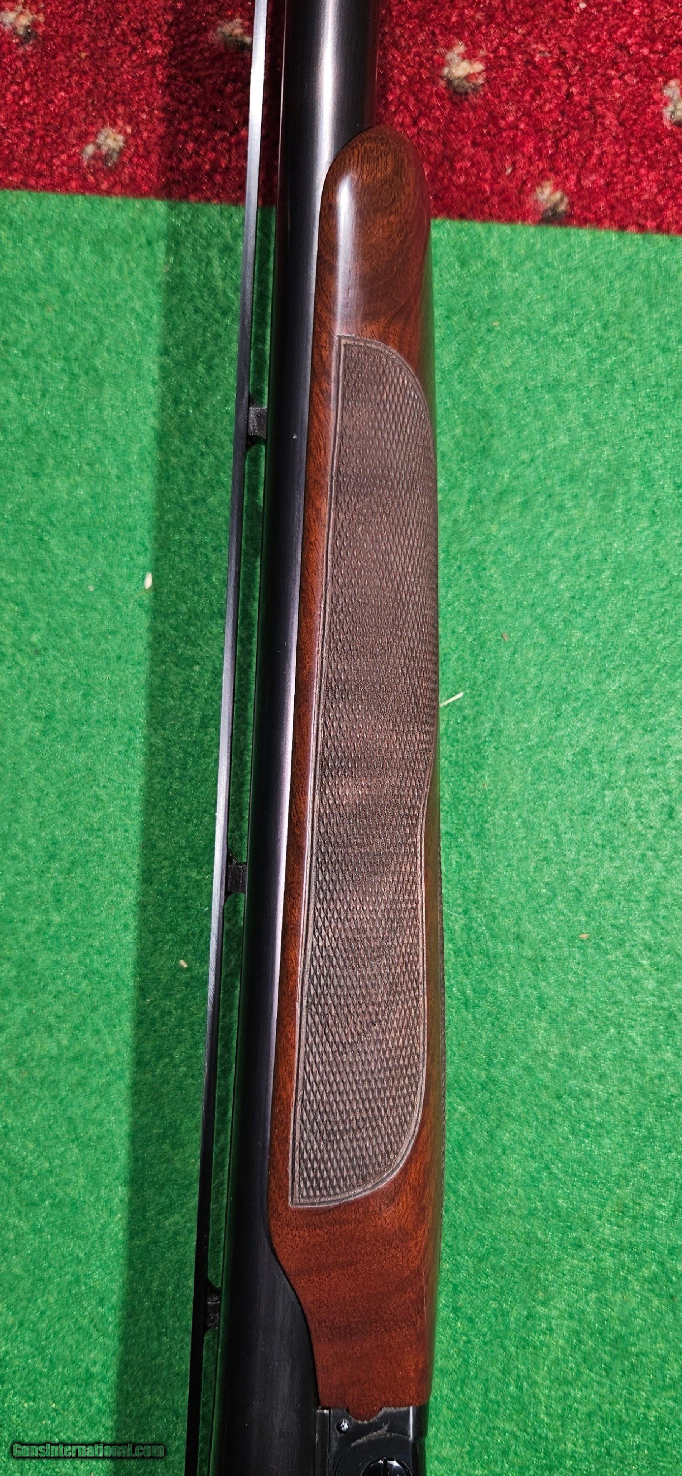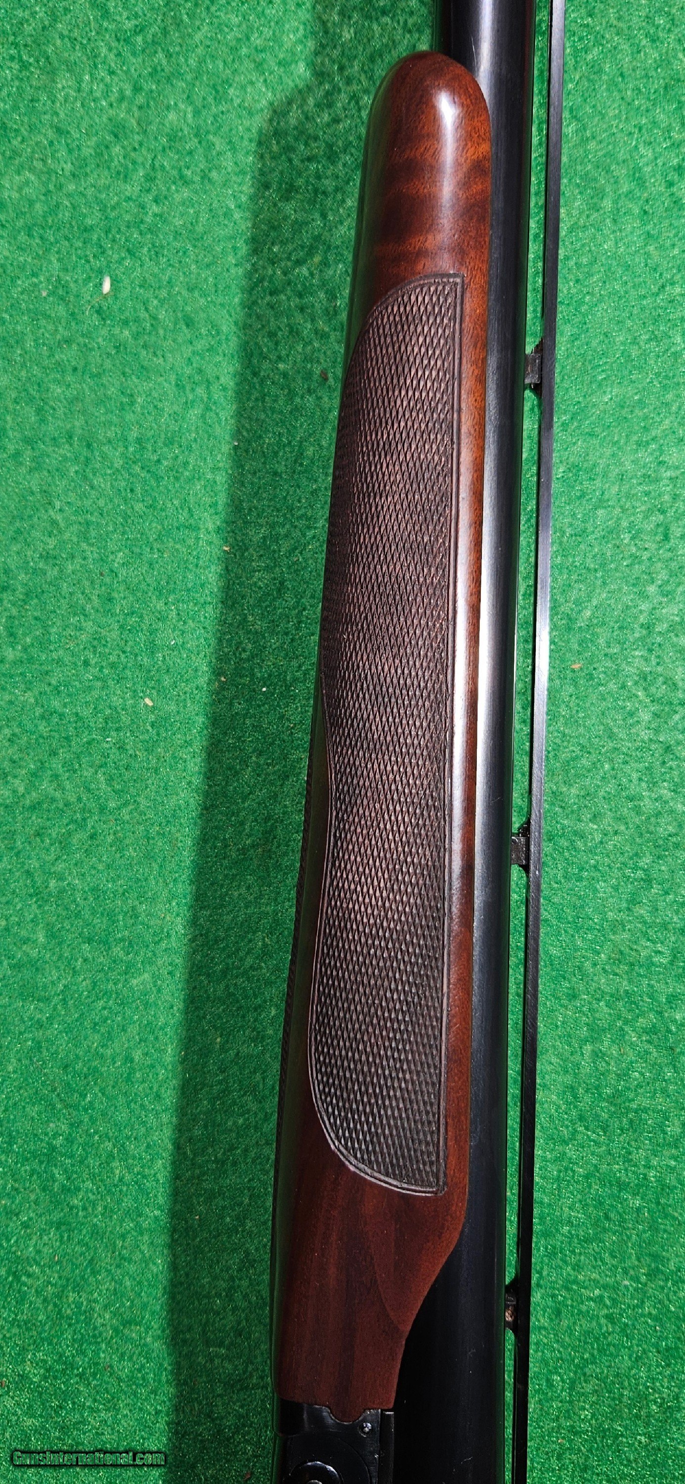 Description: Winchester - Model 21, SxS, 16ga. 30" Factory Vent Rib Barrels Choked F/M. Choke Full/Modified, kidney style beavertail, 21xxx serial # gun, very rare, straight grip with original Winchester pad, factory 3 point checkering with checkered side panels like a deluxe gun. It is a heavyweight 16ga. This gun has gone completely through our shop and is like a brand new gun. It has a beautiful half feather old growth black walnut stock. The edges are sharp, the screw holes are tight like the day it was made. Inv: 32184 7 lbs. 9 oz. 14 ½" x 1 ¾" x 2 ½" $8,450.00 CT Shotgun/Galazan buys sells and trades the world’s largest inventory on Model 21 shotguns. we are experts in all phases of buying, selling, and repairing as well as restoration of these very complex guns we have handled more Model 21 in all regards than all other companies put together. we have bought sold and manufactured most of the Grand Royal and Grand American grade guns and we understand them intimately. In 1994, Galazan/CT Shotgun purchased the Winchester Custom Shop from U.S. Repeating Arms Company and at that time designated the sole manufacturer and authorized repair for the Model 21, we purchased all of the inventory machining tooling and highly regarded trade secrets in regards to manufacturing and repairing maintaining these intricate shotguns. CT Shotgun/Galazan continues to perform the only authorized factory service on all these fine guns if you are interested in purchasing repairing or altering a Model 21 we should be your sole source when it comes to a Model 21 every gun we sell is serviced and inspected, comes with our lifetime warranty. CT/Galazan also has all assorted accessories, original style cases and recoil pads. WHY BUY A MODEL 21? 1. No one knows the gun better than us. 2. We are the only authorized repair facility for Model 21s. 3. We build the new Winchester Model 21. 4. We build the CSMC Model 21. 5. Every gun receives a safety inspection before sold to a customer. 6. Most guns are detailed, cleaned & lubricated and any parts charged to make them as factory new. 7. Fair honesty, reputable dealing for over 50 years. 8. Very competitive pricing. If you compare our guns to any other gun on the market, you will find in most instance that our guns are the best value. The best are brought up to factory specs which, in some cases, can be more than the gun. 9. The largest collection of Model 21s in the world. 10. Why any Model 21 SxS you buy from us; we offer a lifetime mechanical warranty. The largest, most diverse, high-grade shotgun and firearms inventory in history. There is no one even close and a service department to back up everything we sell with our unparalleled warranty to support our customers exclusively. If someone tells you they have a larger inventory, just look for yourself. Price: $8,450.00 Contact Seller |