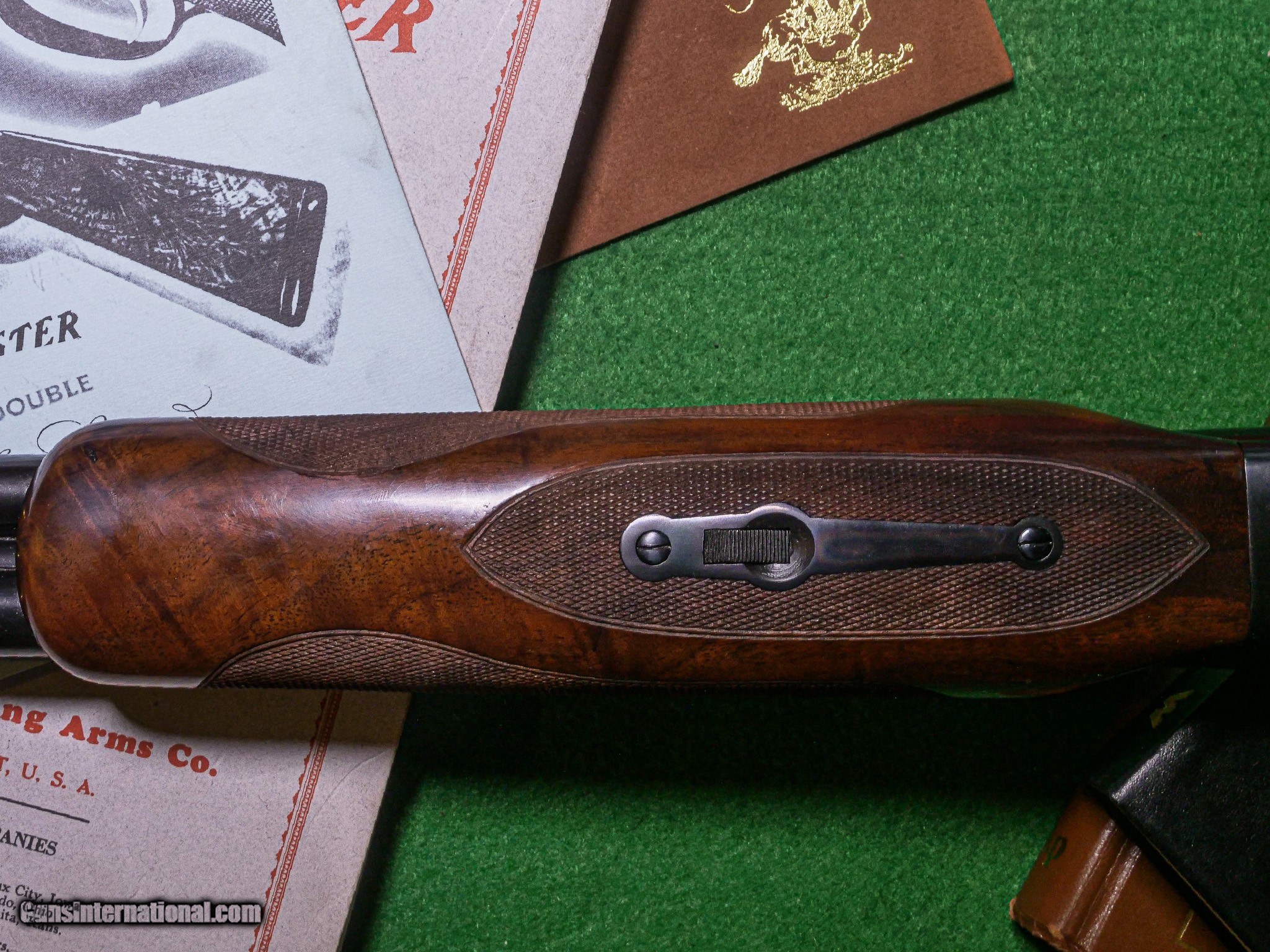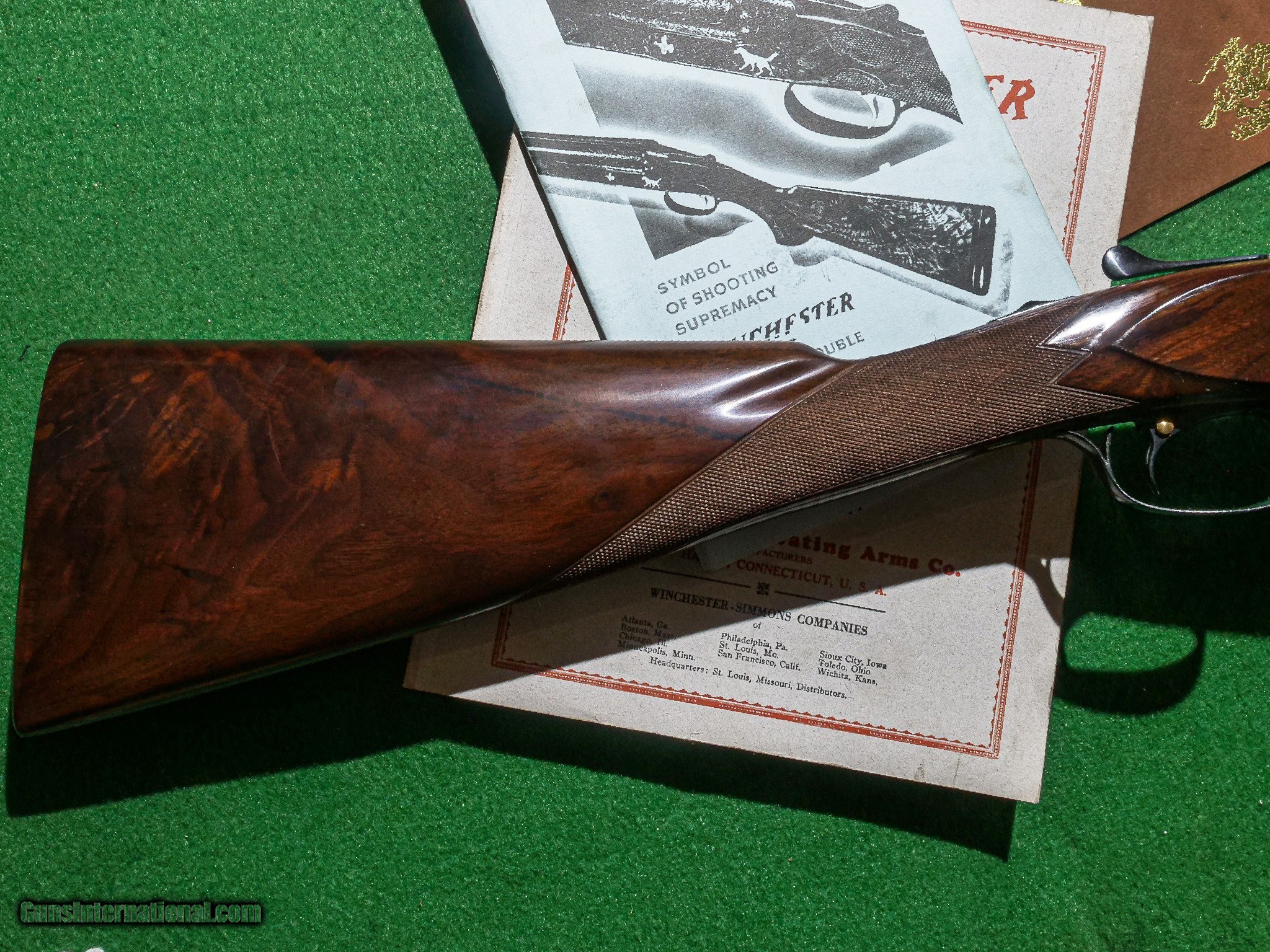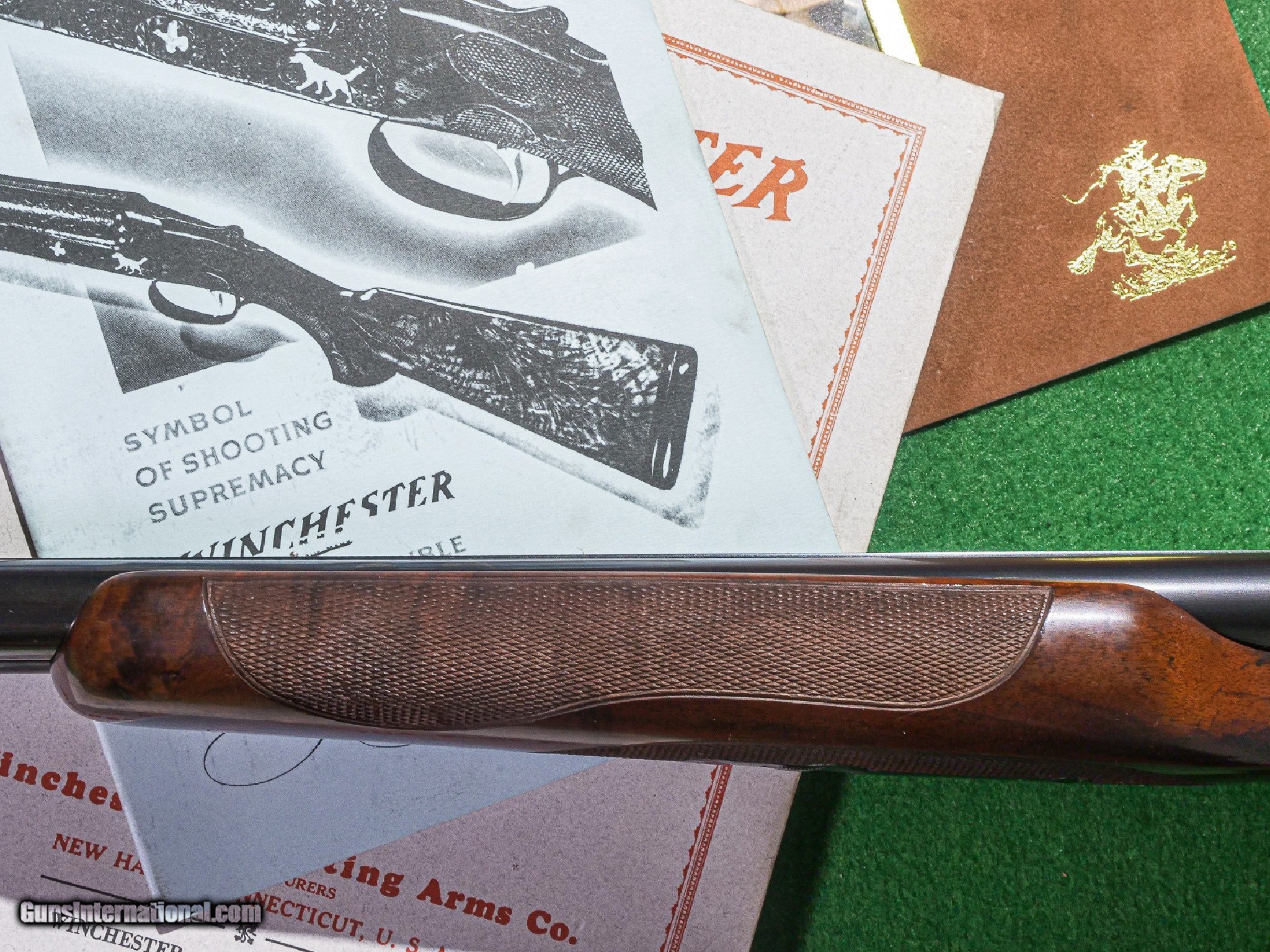 Description: Winchester - Model 21, SxS, RARE Factory Tournament Skeet Grade, 16ga. 26" Barrels Choked WS1/WS2. Kidney style beavertail, matted rib, rare factory tournament skeet, straight grip. Gun has 100% blue, wood finish, and checkering. We have gone over this gun completely in our shop and it is practically a new gun. Everything is perfect on this gun. Warrantied for life to the original owner courtesy of Connecticut Shotgun. Inv: 90087 6 lbs. 1 oz. 14 1/8" x 1 3/8" x 2 1/8" $8,300.00 CT Shotgun/Galazan buys sells and trades the world’s largest inventory on Model 21 shotguns. we are experts in all phases of buying, selling, and repairing as well as restoration of these very complex guns we have handled more Model 21 in all regards than all other companies put together. we have bought sold and manufactured most of the Grand Royal and Grand American grade guns and we understand them intimately. In 1994, Galazan/CT Shotgun purchased the Winchester Custom Shop from U.S. Repeating Arms Company and at that time designated the sole manufacturer and authorized repair for the Model 21, we purchased all of the inventory machining tooling and highly regarded trade secrets in regards to manufacturing and repairing maintaining these intricate shotguns. CT Shotgun/Galazan continues to perform the only authorized factory service on all these fine guns if you are interested in purchasing repairing or altering a Model 21 we should be your sole source when it comes to a Model 21 every gun we sell is serviced and inspected, comes with our lifetime warranty. CT/Galazan also has all assorted accessories, original style cases and recoil pads. WHY BUY A MODEL 21? 1. No one knows the gun better than us. 2. We are the only authorized repair facility for Model 21s. 3. We build the new Winchester Model 21. 4. We build the CSMC Model 21. 5. Every gun receives a safety inspection before sold to a customer. 6. Most guns are detailed, cleaned & lubricated and any parts charged to make them as factory new. 7. Fair honesty, reputable dealing for over 50 years. 8. Very competitive pricing. If you compare our guns to any other gun on the market, you will find in most instance that our guns are the best value. The best are brought up to factory specs which, in some cases, can be more than the gun. 9. The largest collection of Model 21s in the world. 10. Why any Model 21 SxS you buy from us; we offer a lifetime mechanical warranty. The largest, most diverse, high-grade shotgun and firearms inventory in history. There is no one even close and a service department to back up everything we sell with our unparalleled warranty to support our customers exclusively. If someone tells you they have a larger inventory, just look for yourself. Price: $8,300.00 Contact Seller |