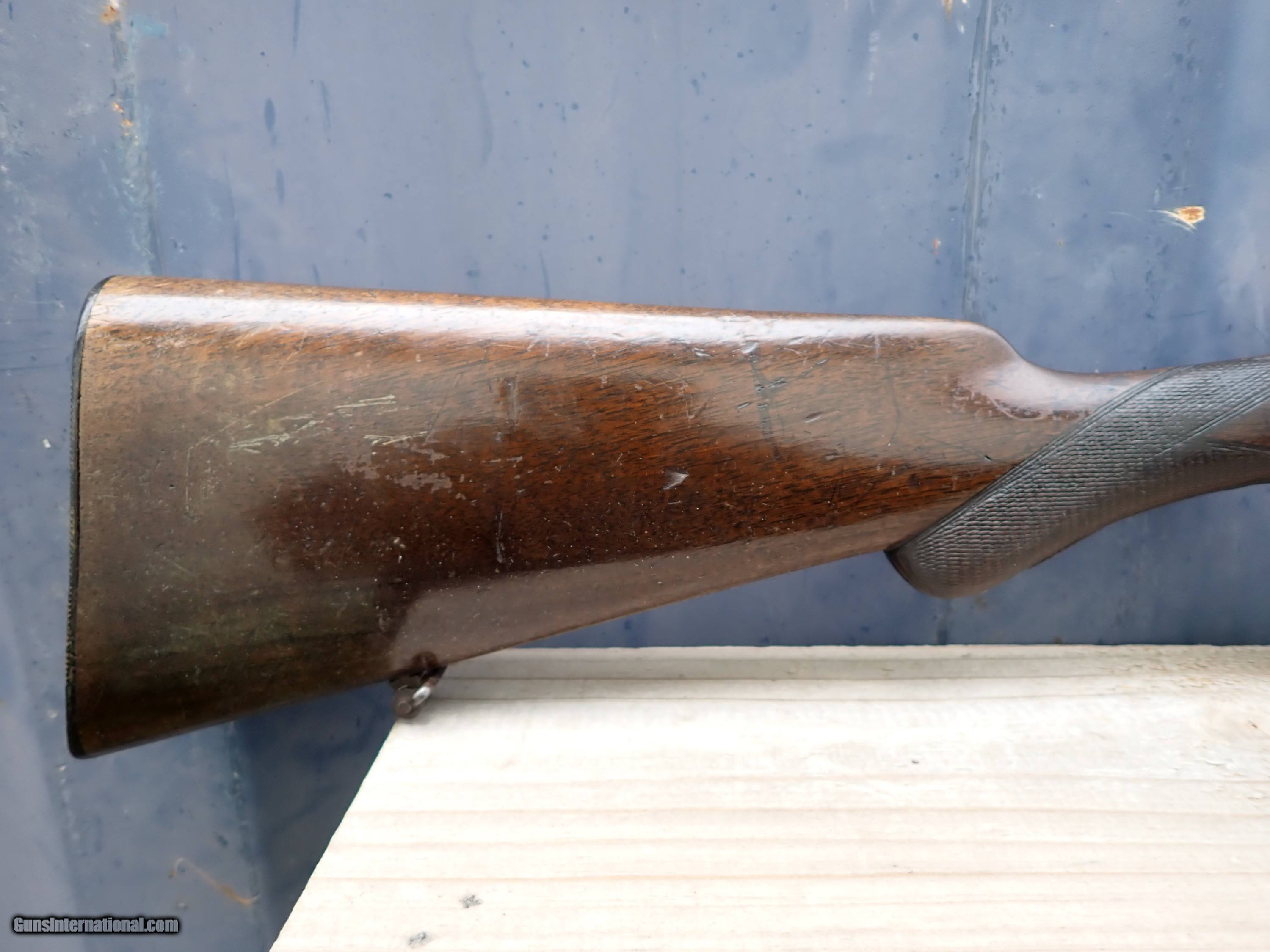 Description: Here is a beautiful old Belgian shotgun. It is gold inlayed "DAMAS BOSTON EXTRA TIN" on the rib along with "BOSTON" on each barrel. The barrels are 27". I do not have a 24 ga chamber gauge or choke gauge so I cannot measure those features. The LOP is 12-1/2" to the rear trigger and 13-3/8" to the front trigger. This is a very small shotgun and weighs in at 4 lbs 15 oz on my postal scale. Everything appears to function as it should. The lever is to the right of center and the bores look very good. Neat old lightweight hunting gun with nice engraving of hunting dogs on the locks. Fiocchi makes shells as do a few other companies. Not hard to find online. This shotgun was imported by CAI in Vermont. Thanks for looking! $45 shipping, Alaska and Hawaii will be a little more for shipping. Please call with any questions. Please click the BUY NOW button to purchase this item. We are required to charge 8.25% for Texas residents. There is a 3.5% fee if paying by credit card. SOLD Shotgun Gauge: 24 Gauge Manufacturer: Damas Boston Model: SXS Serial Number: 302X Barrel Length: 27 Condition: Good Metal Condition: Good Wood Condition: FAIR Bore Condition: Good LOP: 12-1/2 and 13-3/8 Weight: 4 lbs 15 oz Engraving: Hunting Dogs |