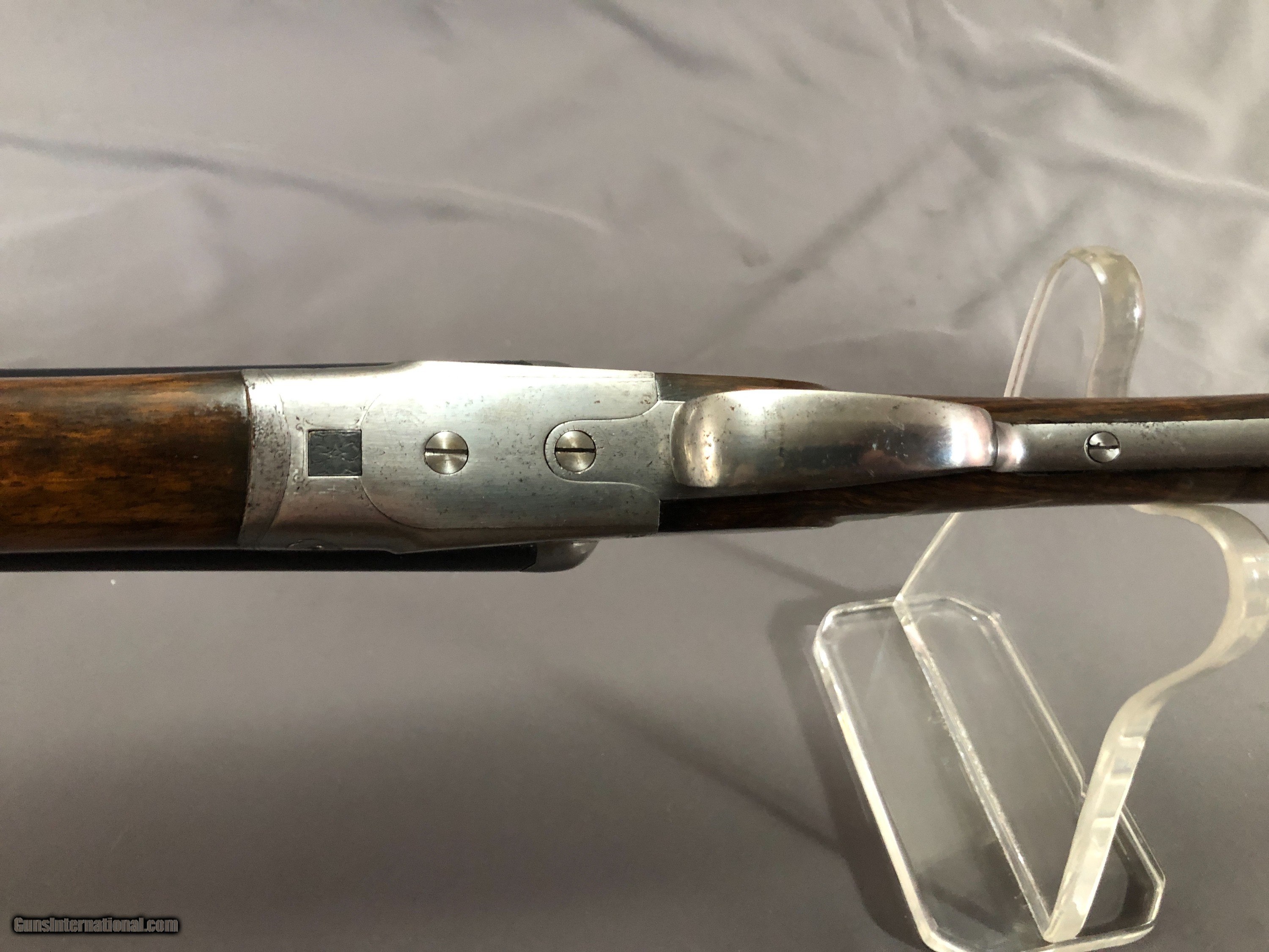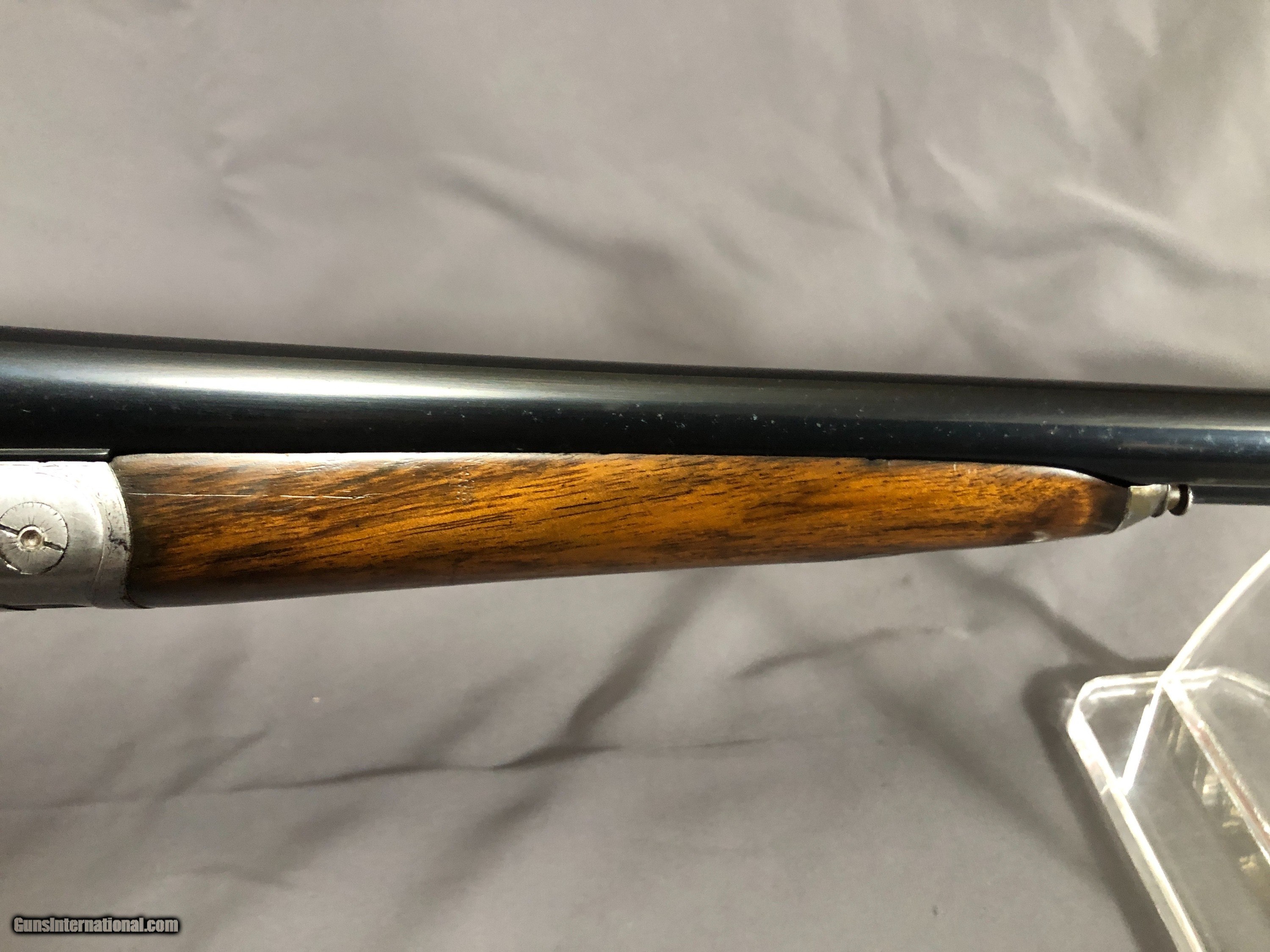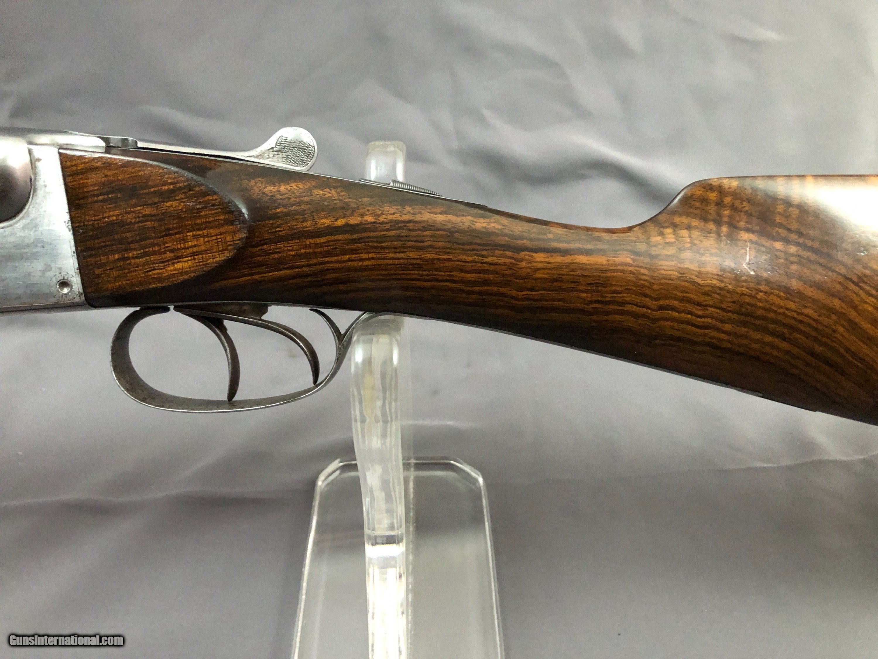 Description: SOLD !!!A Nice French Double with Side clips, figured wood, French and english proofs.Locks up tight. Barrels ring. Bright bores with scattered light rough patces. Please call Mark 715-814-1295 Pack and ship $65 LAYAWAY: Layaway is available with 1/3 down of final total price including shipping/insurance within 7 days . Balance due in 45 days. Layaway Sales and guns modified at time of sale are FINAL with no refunds, no inspections, no returns. Chokes may be opened to your choice at time of sale for $50 per barrel . SOLD Curio/Relic: Yes Manufacturer: FRENCH Model: BLNE Barrel Length: 26IN Chambers: 2 1/2 IN Ejectors: no Condition: NICE Bore Condition: BRIGHT with scattered light rough spots Stock Comb: 1 1/2IN Stock Heel: 2 3/8IN Butt Pad: ORIGNAL HORN LOP: 14 1/4IN Weight: 5LBS 3OZ Choke Left: FULL Choke Right: SKT Proof:Nitro: FRENCH AND ENGLISH |