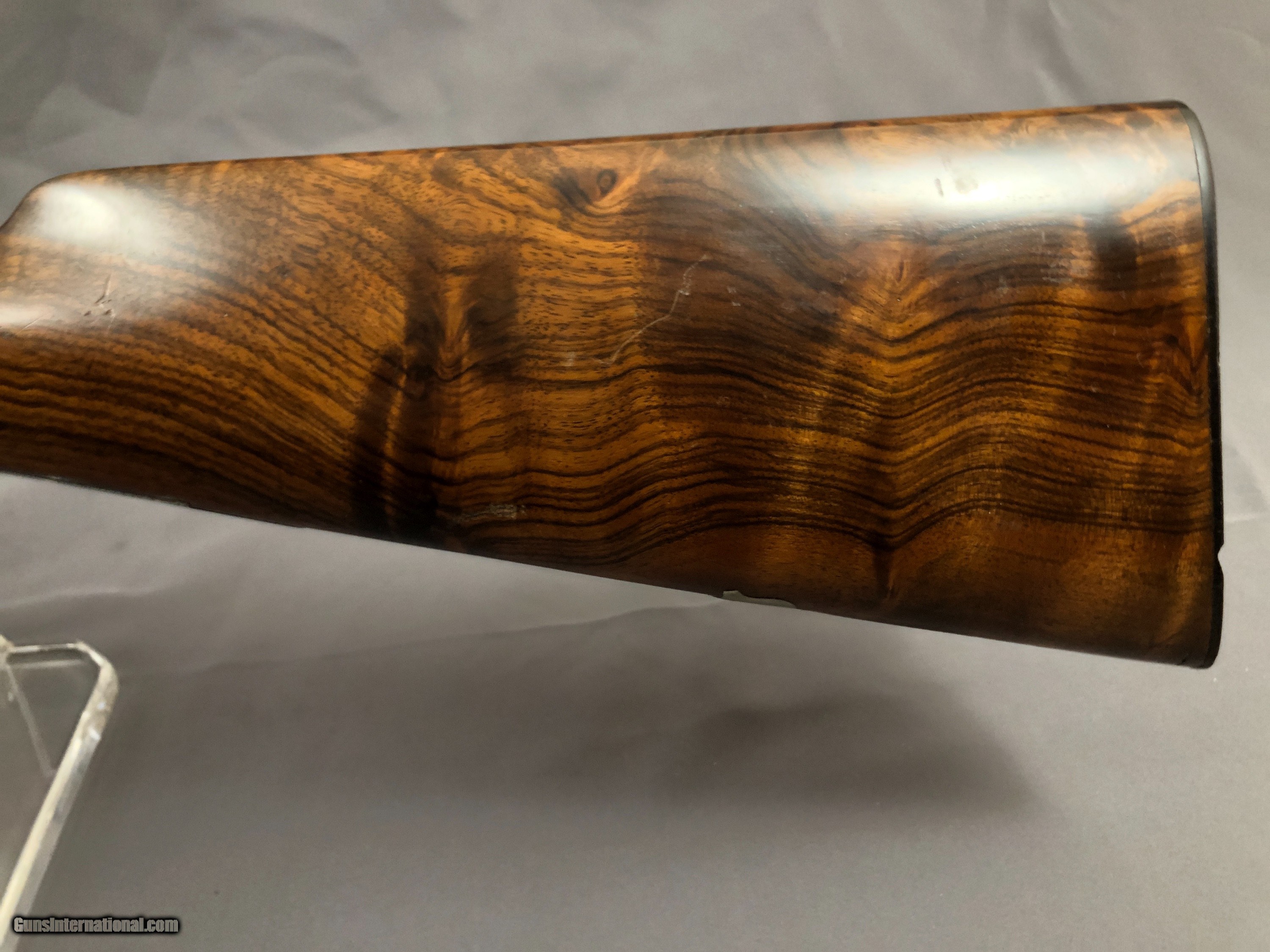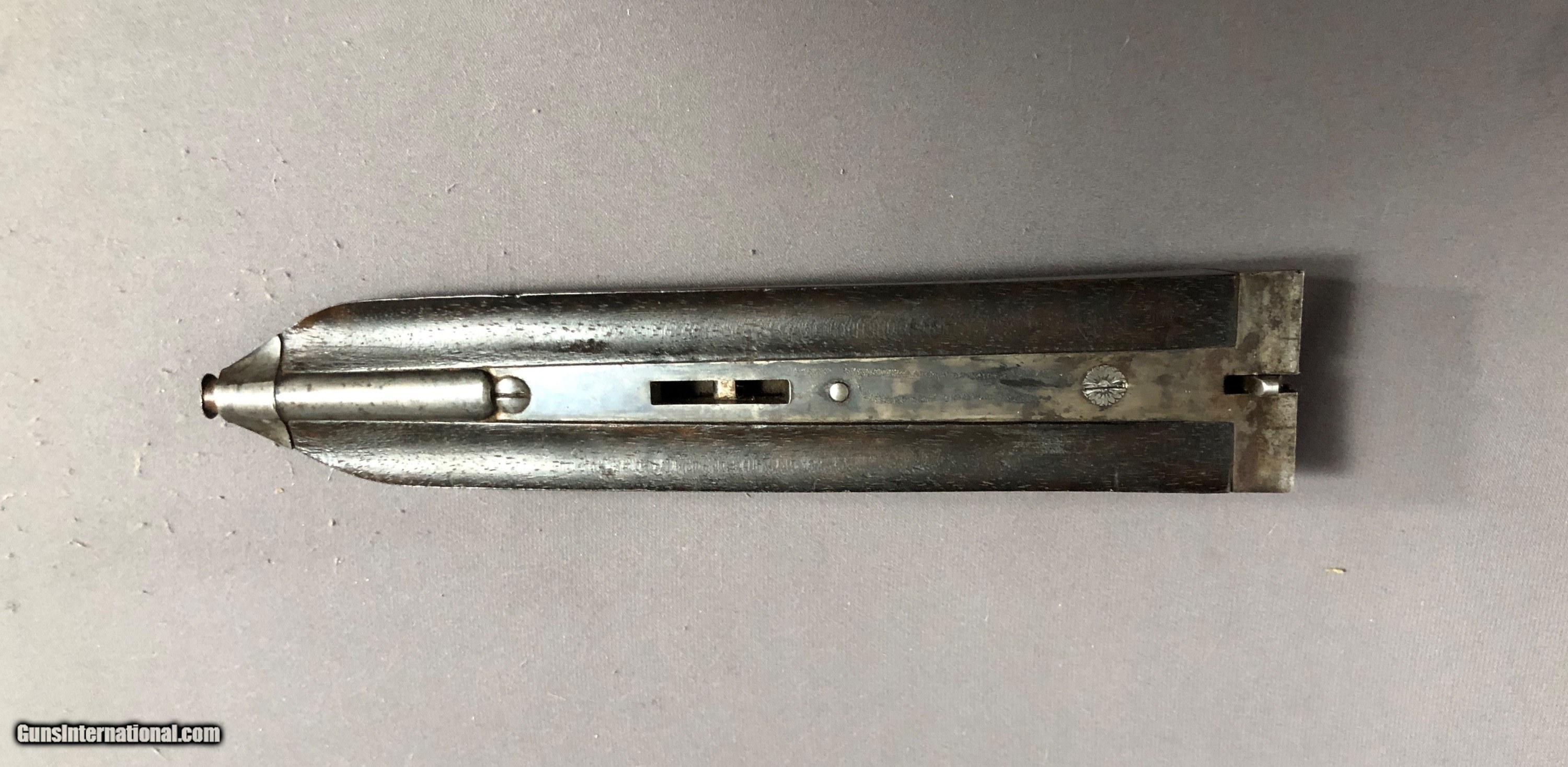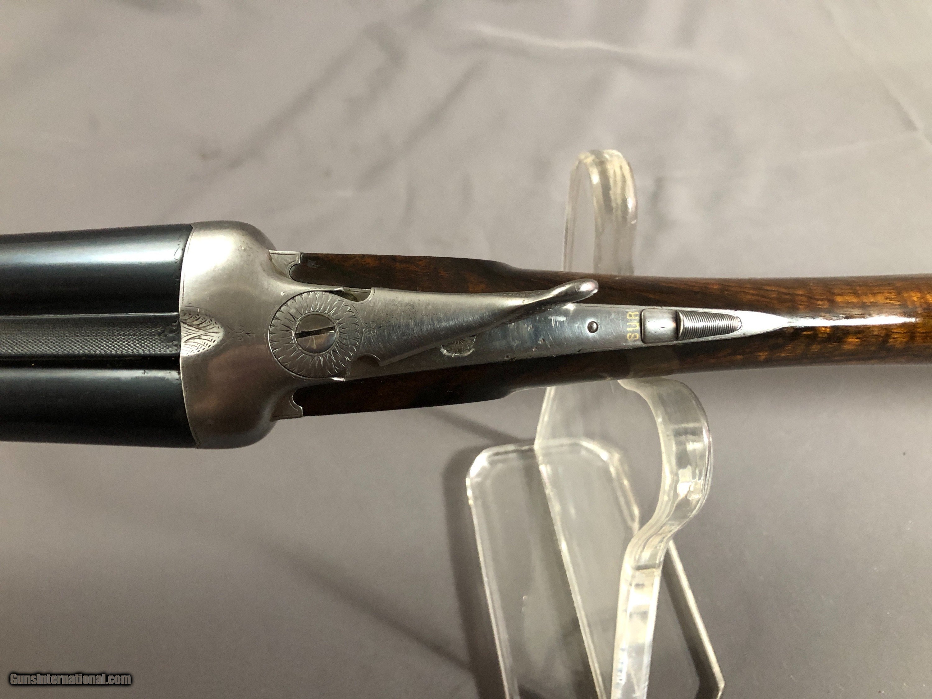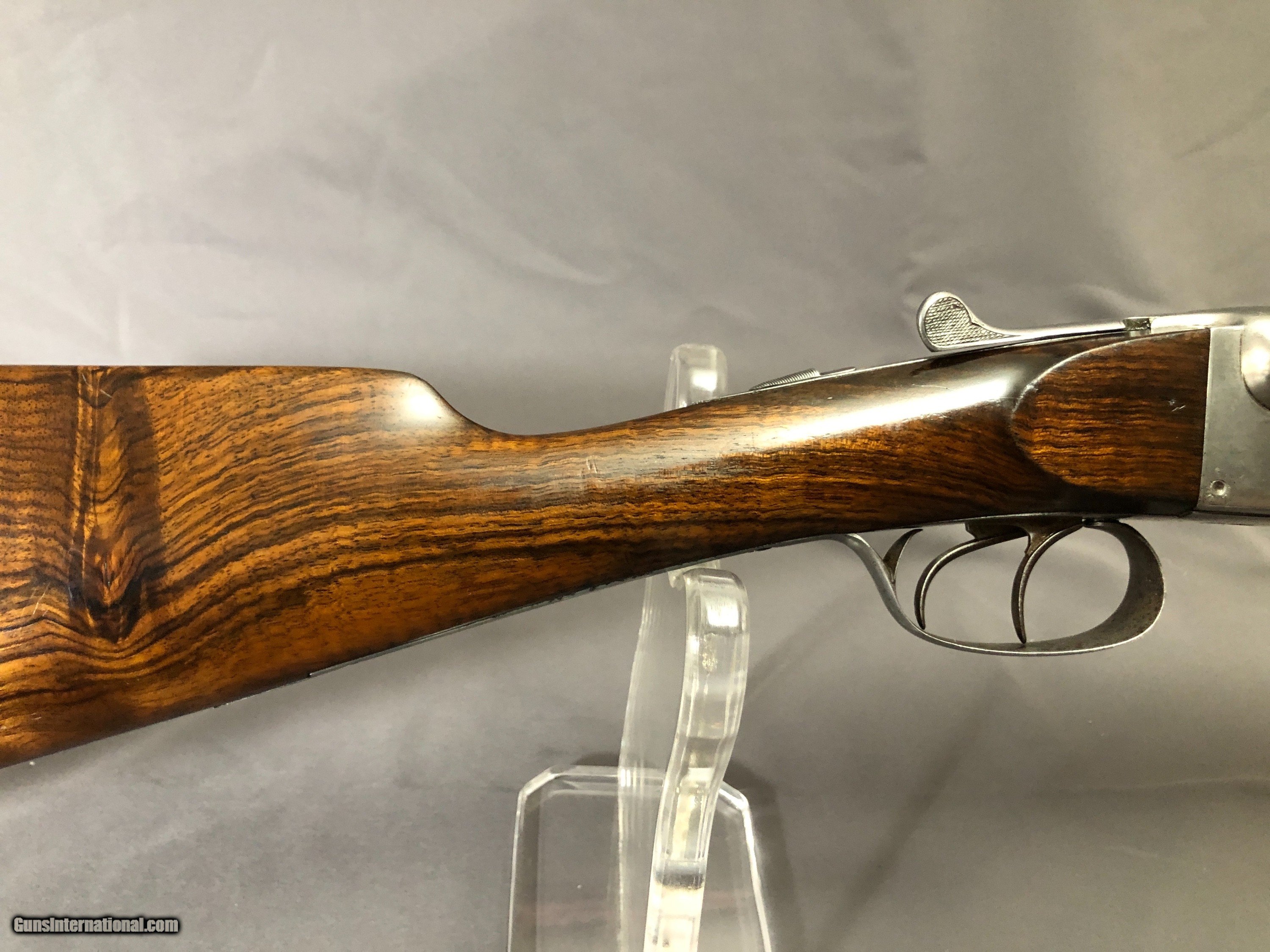 Description: SOLD !!!A Nice French Double with Side clips, figured wood, French and english proofs.Locks up tight. Barrels ring. Bright bores with scattered light rough patces. Please call Mark 715-814-1295 Pack and ship $65 LAYAWAY: Layaway is available with 1/3 down of final total price including shipping/insurance within 7 days . Balance due in 45 days. Layaway Sales and guns modified at time of sale are FINAL with no refunds, no inspections, no returns. Chokes may be opened to your choice at time of sale for $50 per barrel . SOLD Curio/Relic: Yes Manufacturer: FRENCH Model: BLNE Barrel Length: 26IN Chambers: 2 1/2 IN Ejectors: no Condition: NICE Bore Condition: BRIGHT with scattered light rough spots Stock Comb: 1 1/2IN Stock Heel: 2 3/8IN Butt Pad: ORIGNAL HORN LOP: 14 1/4IN Weight: 5LBS 3OZ Choke Left: FULL Choke Right: SKT Proof:Nitro: FRENCH AND ENGLISH |