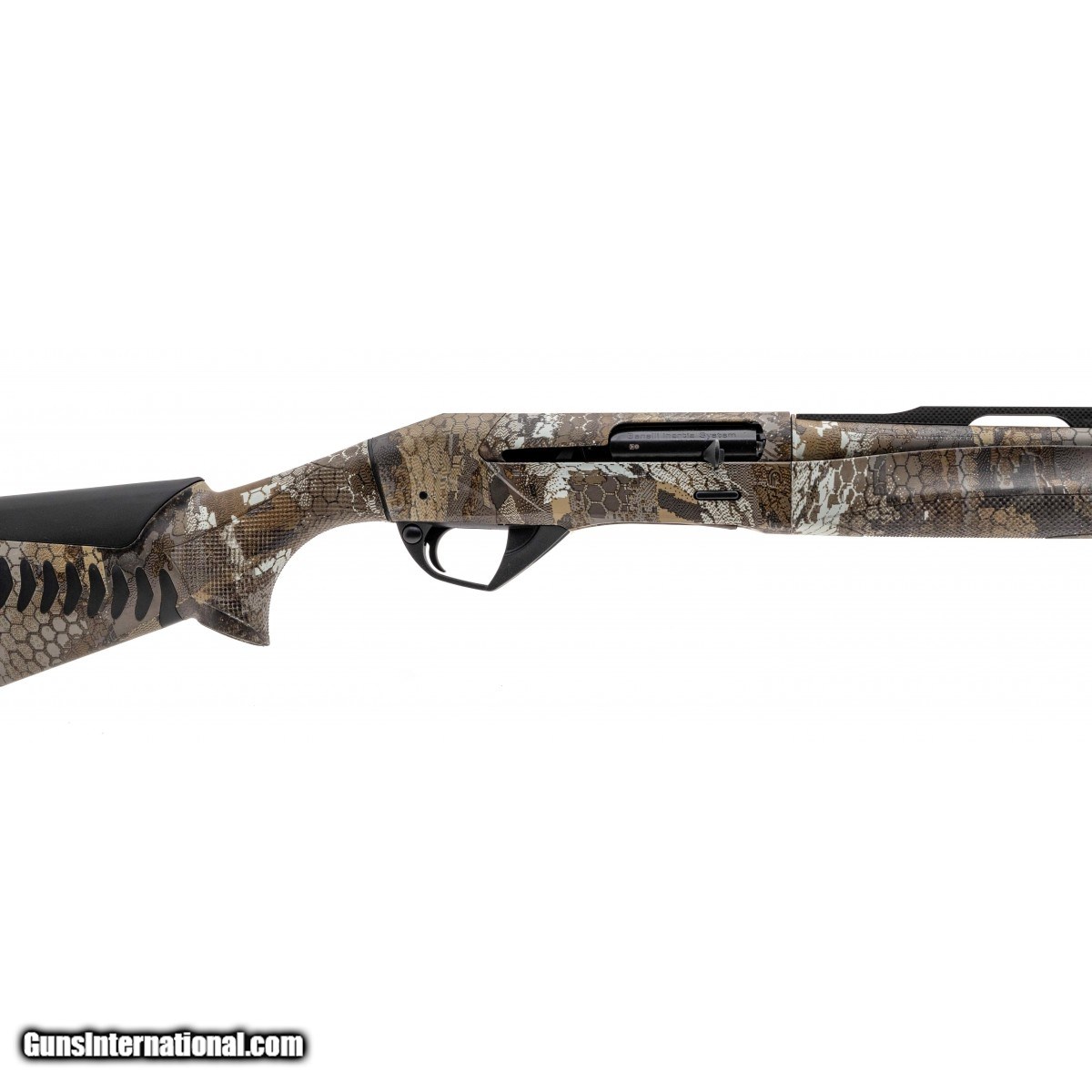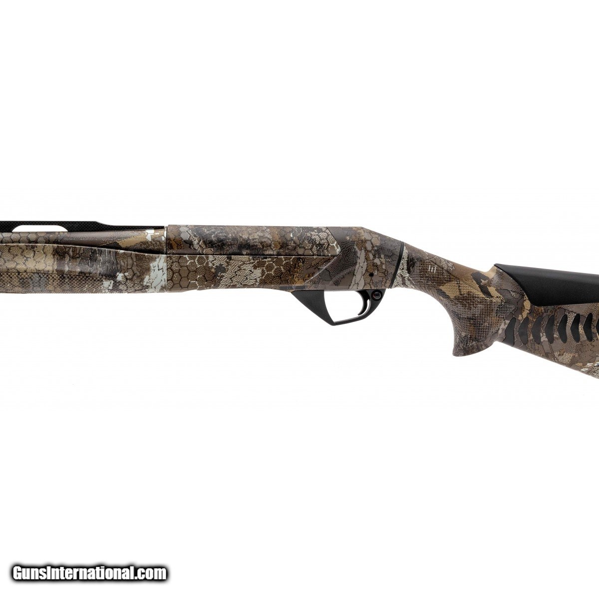 Description: "Semi automatic shotgun with a 28"" vented rib barrel, 3"" chamber, LOP is 14.375"", inertia driven system, fiber optic front sight with a Optifade Timber camo synthetic stock. NEW. UPC: 650350103335. (STOCK PHOTO) SOLD |