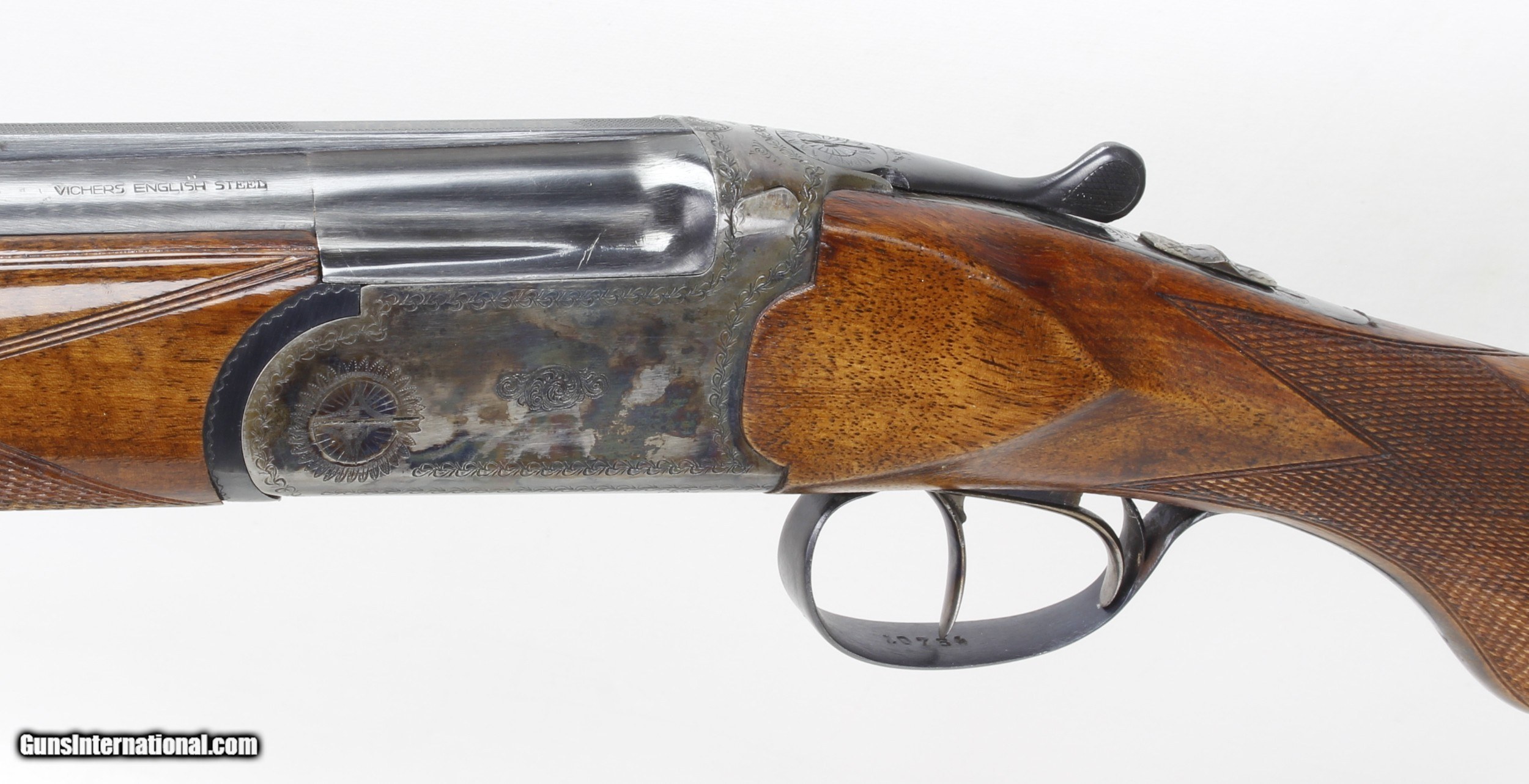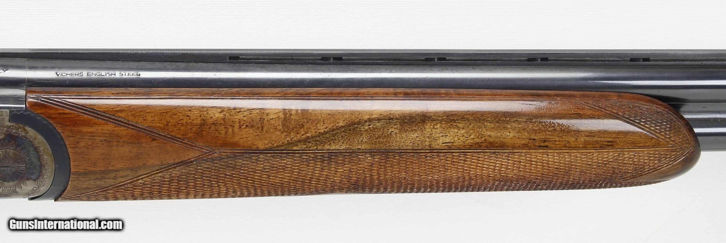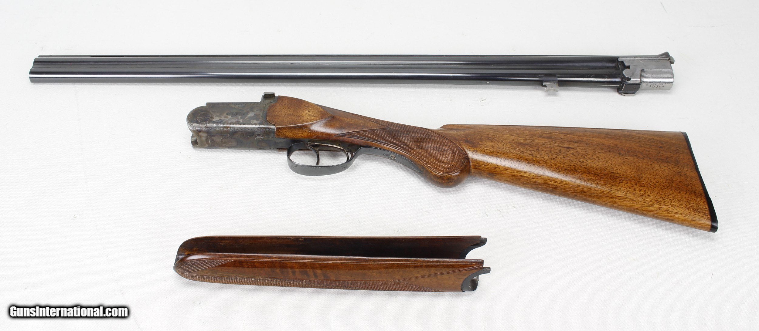 Description: Atlas Model 65 28Ga. O/U Shotgun. SN #10764. Mfg. by A. Zoli in 1962. LOP 14 1/4" & 13 3/8". DAC 1 3/8"- DAH 1 7/8". Chamber 2 3/4". 27 1/2" barrels with excellent bores. Fixed chokes: Top is Full, Bottom is Modified. Blued barrel and case colored receiver are in very good condition. The checkered Walnut stock and forend have been nicely re-finished. Double triggers. Extractors. Plastic buttplate. NRA Very Good Condition. Weight 5.5 lbs. More pictures available upon request. SOLD Manufacturer: A Zoli Model: Atlas Model 65 Serial Number: 10764 Barrel Length: 27 1/2 Condition: VG Metal Condition: VG Wood Condition: VG Bore Condition: Excellent Gauge Info: 28 Finish: Blue / Case Colored Weight: 5.5 lbs Chokes: Full & Mod. |
