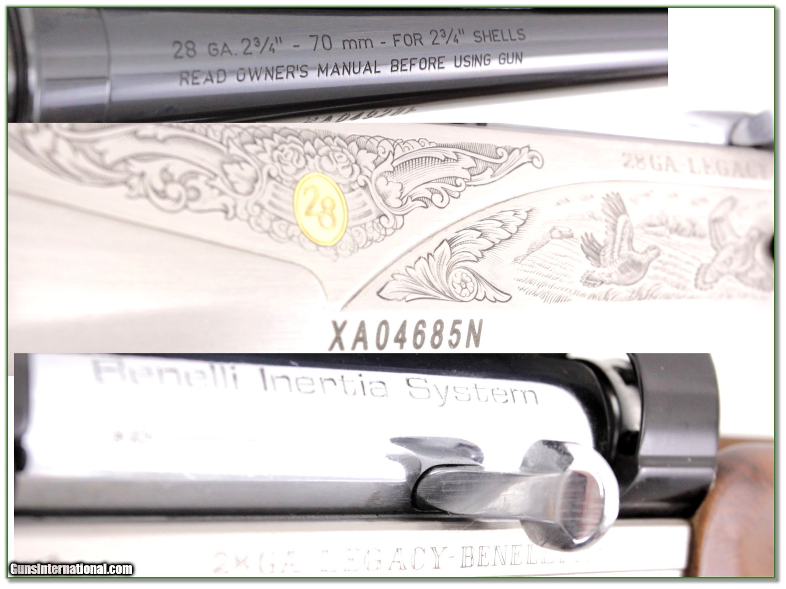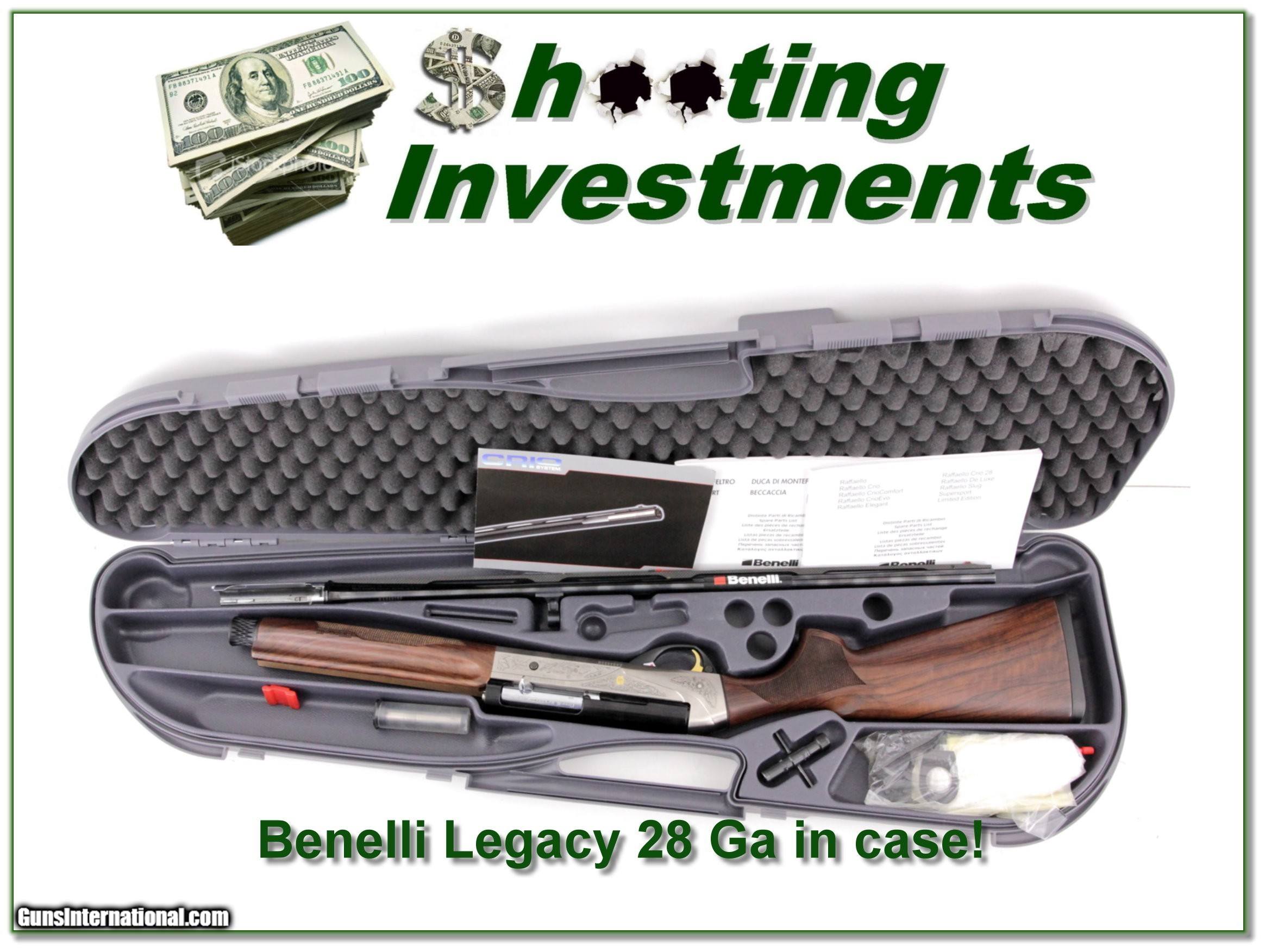 Description: This is a like new Benelli Legacy 28 Gauge. If fired since leaving the factory you can’t tell from the bolt face. The wood is excellent. It has a 26in barrel and comes as seen in case with papers and choke tubes. I am selling this one on consignment and as such lay-a-way can’t be used. It does of course have the standard 3-day inspection. Shipping with insurance is $39. Please email me with any questions or larger pictures. (Consign your quality firearms with Shooting Investments for only 12%! Let me know if you have any you would like to sell!) 19-0174 Payment: Payment is by Money Order, Cashiers Check or Personal Check. I can now also accept Credit Cards (MasterCard, Visa, Discover & American Express) with a 3% convenience fee. PayPal can be used for some items but never for firearms. Shipping: The shipping charge will be listed in each description. It is $39 for most firearms. Some heavy guns or those insured for over $2000 will be higher. Shipments to Alaska and Hawaii are higher because air shipment is required. Most firearms are shipped on Tuesday and Thursday and usually in 5 days of receipt of payment. We package all shipments carefully and insure them. Optics are shipped Priority Mail and most other non-firearm shipments are shipped First Class. Returns: Our return policy is simple. If for any reason you are not pleased with your purchase, you may return your item for a full refund of purchase price. Ammunition cannot be returned. It is important to us that you are happy. Guns cannot be fired or dissembled before returning them and they must be returned in the same condition as received. Notification of a return must occur with-in 3 days of receipt at your dealer. Shipping, convenience and dealer fees are not refundable and are the responsibility of the buyer. Lay-a-way: If needed, we offer a 60 day lay-a-way option on most firearms. It is 1/3 now, 1/3 in 30 days and 1/3 in 60 days. Lay-a-way firearm sales are final and if not completed the first payment cannot be returned. Consigning your firearms with Shooting Investments: We will help you get top dollar for your firearms. While most local guns shops charge 20% or more, our fee is only 12% with a minimum of $75. At your local gun shop it might take months to sell. Selling on-line provides instant access to thousands of interested buyers. You won’t find any other on-line dealer willing to sell your firearms for only 12% or listing every gun on 3 separate s. Selling through an House typically costs the seller 15% and the buyer an addition 15% (so 30%) and you have to wait several months to sell and longer to receive funds. If properly priced, we will sell your firearms in a few weeks. Send us an email or give us a call and we’ll explain how easy it is for you to get top dollar. Trading: Trading for use is really just buying your gun to re-sell. If you have a gun you want to trade, please email a picture and we will let you know what we can give or it. You will always get more if we sell it for you on consignment. Help for California Buyers: We are happy to ship to California. It is the buyer’s responsibility to make sure any item you buy is legal in your state. We are also happy to help with your purchase of a firearm from someone other than us. If you see a gun you would like to buy but the seller can’t or won’t ship to California they can ship to use and we’ll then ship it to your California dealer. The cost for this service is only $30 + shipping. Let us know if we can help! SOLD |