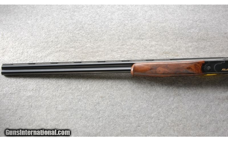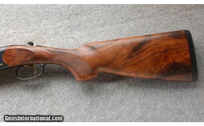 Description: Available only from Cabela's, the legendary Model 686 in an Onyx Pro Field version with an exclusive high-luster blued receiver and gold engraving. The high-grade, oil-finish walnut pistol-grip stock and Schnabel forend complement the blued barrels and receiver. Includes one full and two modified flush Mobilchoke™ tubes. SOLD Manufacturer: 2014 Caliber Info: 28 Gauge Chambers: 2 3/4 Inch Over/Under with ejectors. Metal Condition: New From Beretta. Wood Condition: New From Beretta. Bore Condition: New From Beretta. Barrels: 28 Inch blue with a vent rib. Triggers: Single gold color. Stock: High-grade, oil-finish walnut pistol-grip stock with checkering. Stock Dimensions: 14 5/8 Inch LOP. Fore End: Matching checkered Schnabel Butt Pad: Beretta black rubber butt pad. Weight: 6 Lbs 1 OZ. Sights: Single front bead on the vent rib. Chokes: Screw in includes one full and two modified flush Mobilchoke™ tubes. Extras: Comes with the case and all the factory accessories. Item Location: Owatonna, MN |