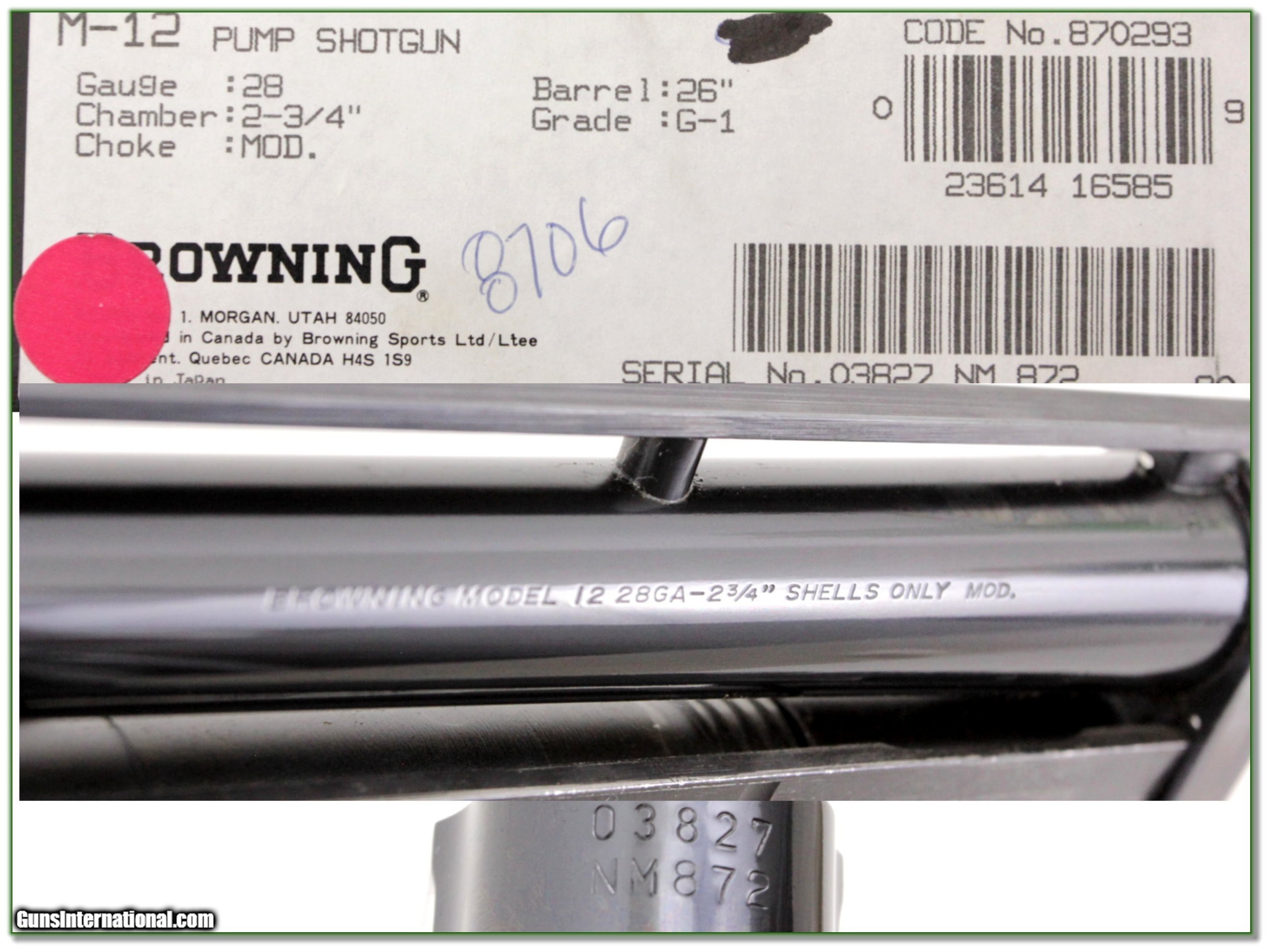 Description: This is beautiful Browning Model 12 28 Gauge with 26in barrel choked Modified. It has nicer wood than most of these Grade 1’s. If fired since leaving the factory I’m sure just test fired. I see no marks. It comes as seen in original box with papers. Shipping with insurance is $39. Please email me with any questions or larger pictures. (Consign your quality firearms with Shooting Investments for only 12%! Let me know if you have any you would like to sell!) 19-0251 Payment: Payment is by Money Order, Cashiers Check or Personal Check. I can now also accept Credit Cards (MasterCard, Visa, Discover & American Express) with a 3% convenience fee. PayPal can be used for some items but never for firearms. Shipping: The shipping charge will be listed in each description. It is $39 for most firearms. Some heavy guns or those insured for over $2000 will be higher. Shipments to Alaska and Hawaii are higher because air shipment is required. Most firearms are shipped on Tuesday and Thursday and usually in 5 days of receipt of payment. We package all shipments carefully and insure them. Optics are shipped Priority Mail and most other non-firearm shipments are shipped First Class. Returns: Our return policy is simple. If for any reason you are not pleased with your purchase, you may return your item for a full refund of purchase price. Ammunition cannot be returned. It is important to us that you are happy. Guns cannot be fired or dissembled before returning them and they must be returned in the same condition as received. Notification of a return must occur with-in 3 days of receipt at your dealer. Shipping, convenience and dealer fees are not refundable and are the responsibility of the buyer. Lay-a-way: If needed, we offer a 60 day lay-a-way option on most firearms. It is 1/3 now, 1/3 in 30 days and 1/3 in 60 days. Lay-a-way firearm sales are final and if not completed the first payment cannot be returned. Consigning your firearms with Shooting Investments: We will help you get top dollar for your firearms. While most local guns shops charge 20% or more, our fee is only 12% with a minimum of $75. At your local gun shop it might take months to sell. Selling on-line provides instant access to thousands of interested buyers. You won’t find any other on-line dealer willing to sell your firearms for only 12% or listing every gun on 3 separate s. Selling through an House typically costs the seller 15% and the buyer an addition 15% (so 30%) and you have to wait several months to sell and longer to receive funds. If properly priced, we will sell your firearms in a few weeks. Send us an email or give us a call and we’ll explain how easy it is for you to get top dollar. Trading: Trading for use is really just buying your gun to re-sell. If you have a gun you want to trade, please email a picture and we will let you know what we can give or it. You will always get more if we sell it for you on consignment. Help for California Buyers: We are happy to ship to California. It is the buyer’s responsibility to make sure any item you buy is legal in your state. We are also happy to help with your purchase of a firearm from someone other than us. If you see a gun you would like to buy but the seller can’t or won’t ship to California they can ship to use and we’ll then ship it to your California dealer. The cost for this service is only $30 + shipping. Let us know if we can help! SOLD |