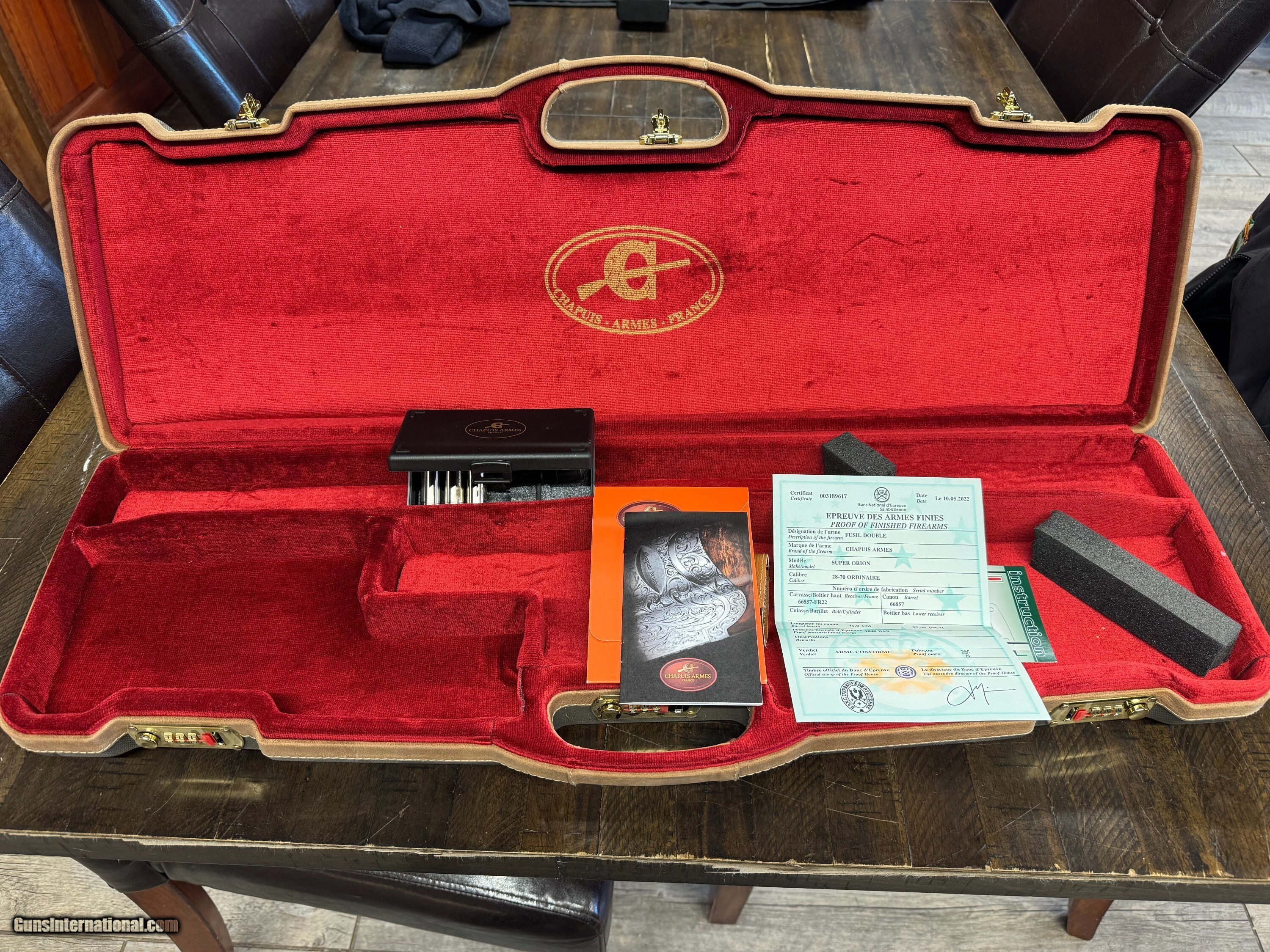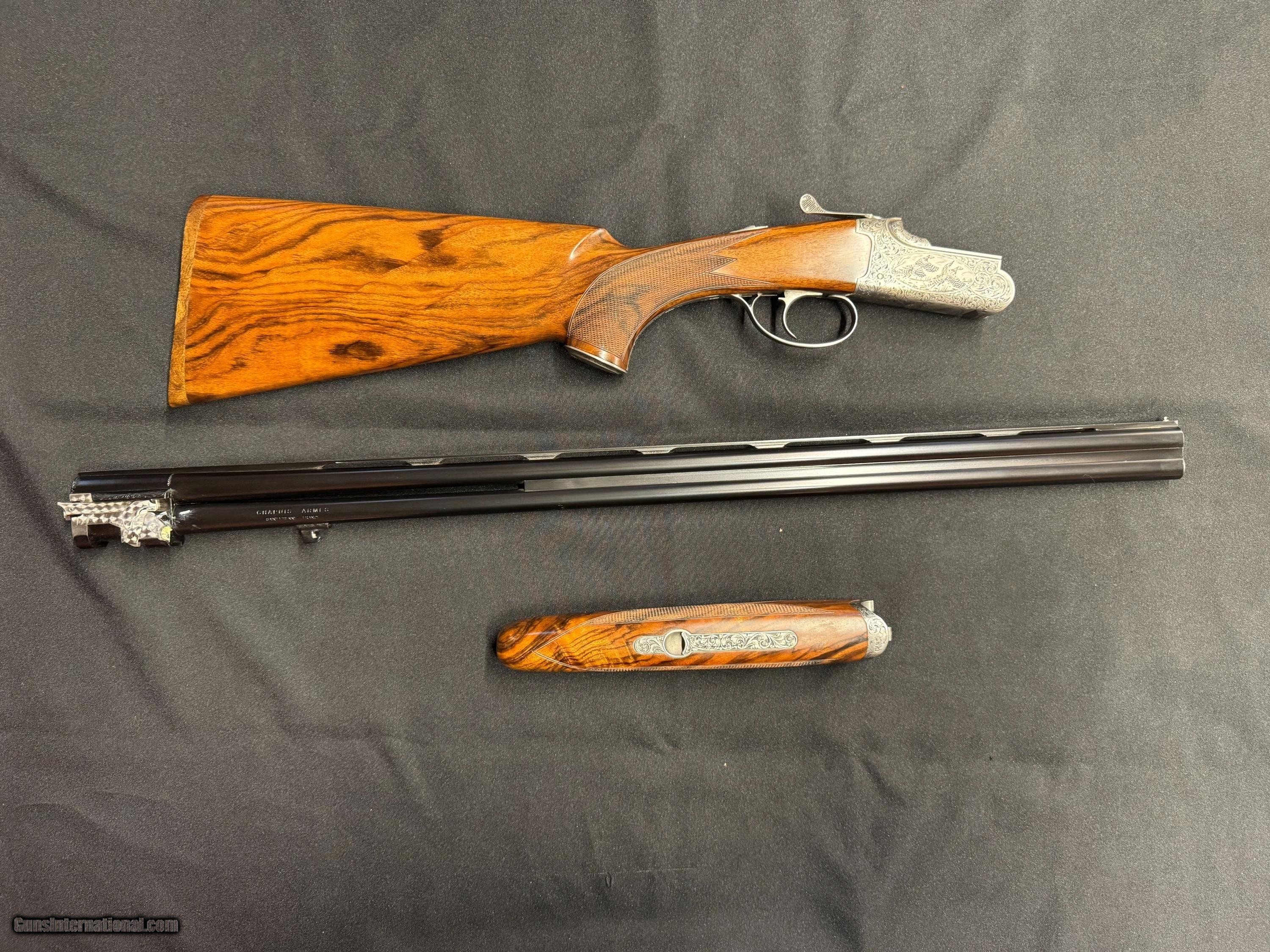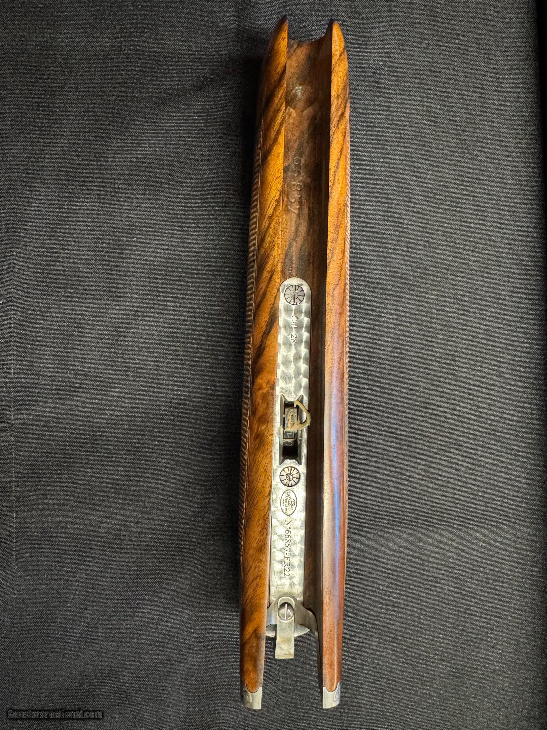 Description: --Made by Chapuis Armes of France --The model is a C135 Super Orion --28 Gauge --28 inch barrels --Factory Case, in excellent condition --Factory Adjustable chokes --Factory Certificate of Firearms --Registration brochure --Wood butt plate --Superb wood finish --Bluing is in excellent condition --Hand contoured round action --Hand engraved by master engraver --Deep cut foliage with fine game scenes --Pistol grip --Gun is new Shotgun Gauge: 28 Gauge Manufacturer: Chapuis Model: C135 Super Orion Barrel Length: 28 Ejectors: Yes Condition: NIB Metal Condition: Excellent Wood Condition: Excellent Bore Condition: Excellent Action: O/U Triggers: Single Butt Pad: Wood Sights: Front Bead Chokes: Full Factory Adjustable Engraving: Master Engraver Case: Yes, Excellent condition Grips: Pistol Price: $10,999.00 Pay with