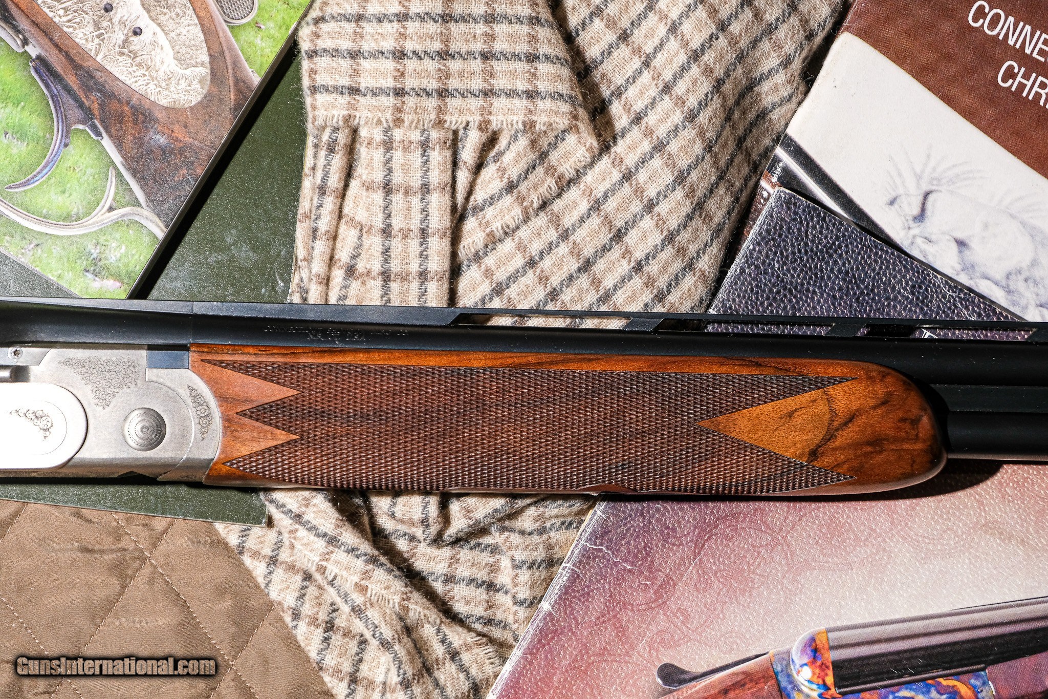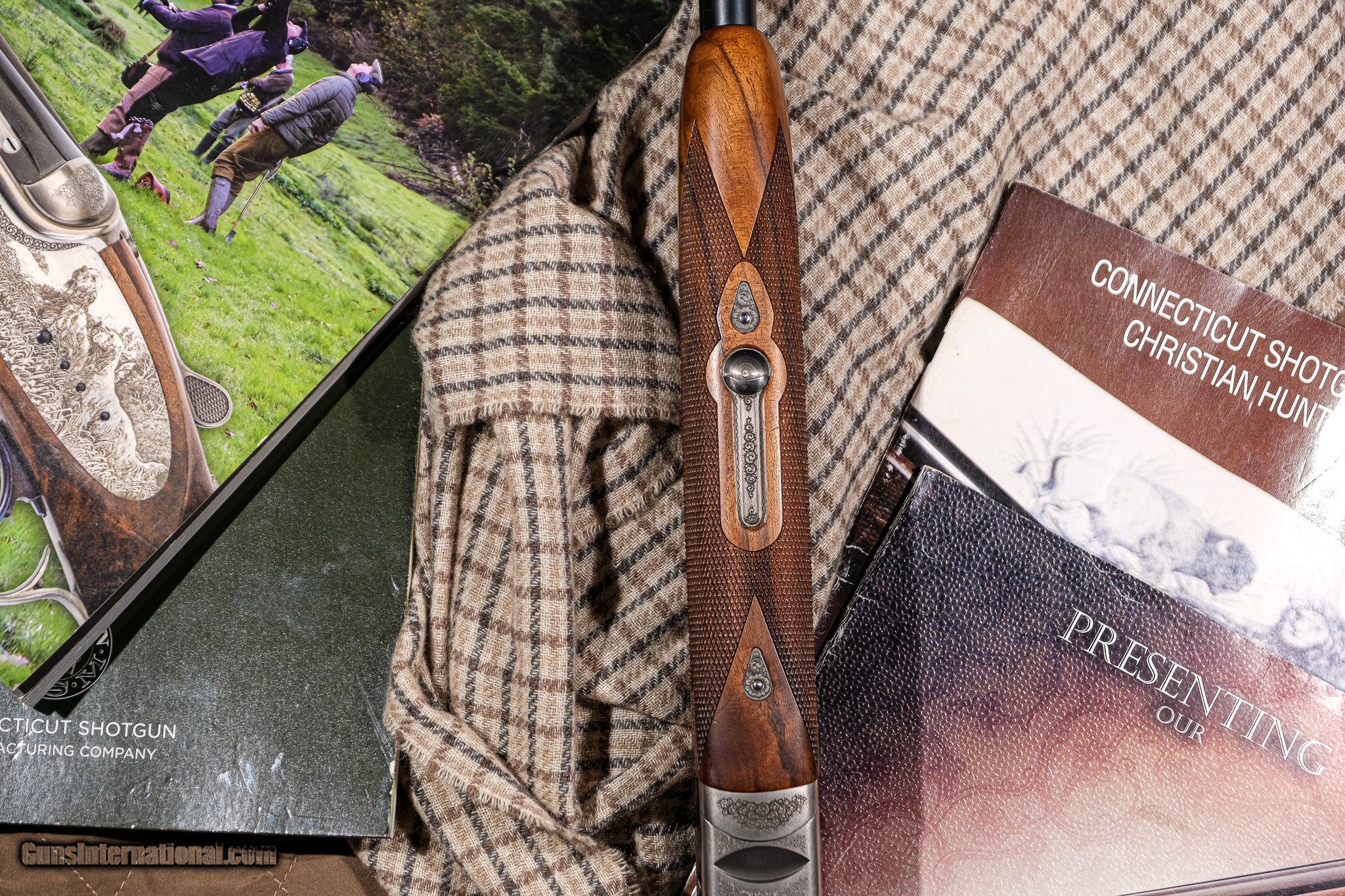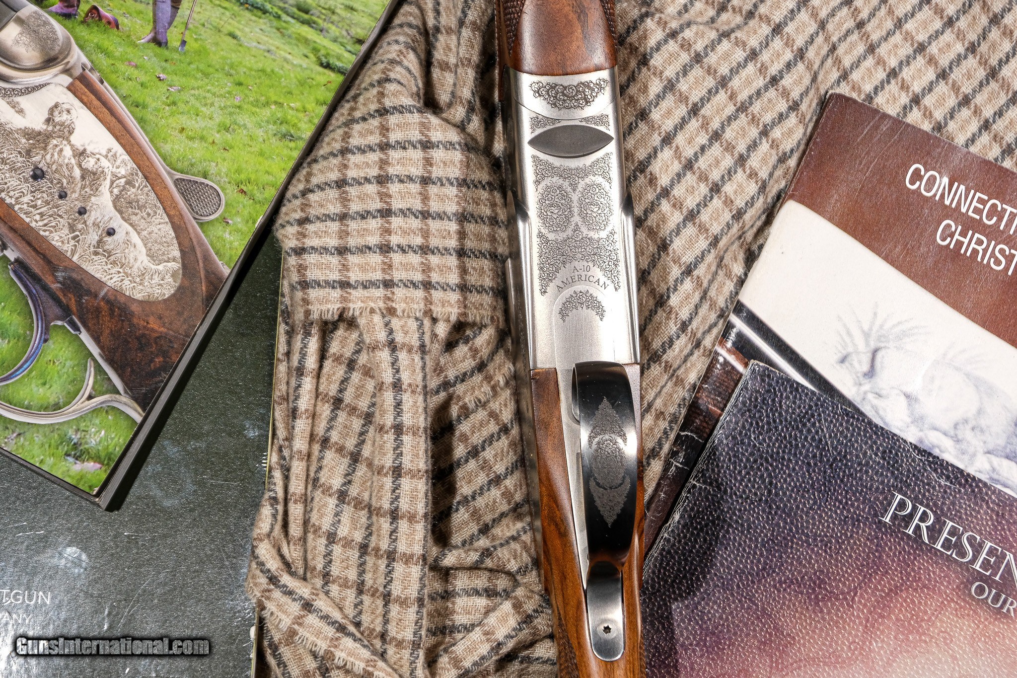 Description: CSMC - A10, O/U Sidelock, Standard Grade, 28ga. 28" Barrels with Screw-in Choke Tubes. Standard engraving pattern over coined finish, beautiful feathercrotch California walnut, factory recoil pad, vent rib, automatic ejectors, straight grip, field forend, London oil finish, factory case, perfect gun, adjustable position trigger providing 14 ¼”-14 ¾” length of pull, available for immediate delivery. Inv: 92517 6 lbs. 0 oz. 14 ½" x 1 ½" x 2 ½" $12,500.00 Do not compare this gun to a box lock gun with side plates that might look nice with some fancy mechanical engraving. This is a full sidelock shotgun, equal to or superior to any sidelock over and under on the market and is by far the strongest sidelock over and under available. We only sell direct; we use no dealers. You get the maximum value this way without any additional markup. All of our guns are made in the USA, in one facility, designed and built, with a lifetime warranty which no one else can offer. A dealer will sell you the gun he makes the most money on, which generally means less money going into the gun. Price: $12,500.00 Contact Seller |