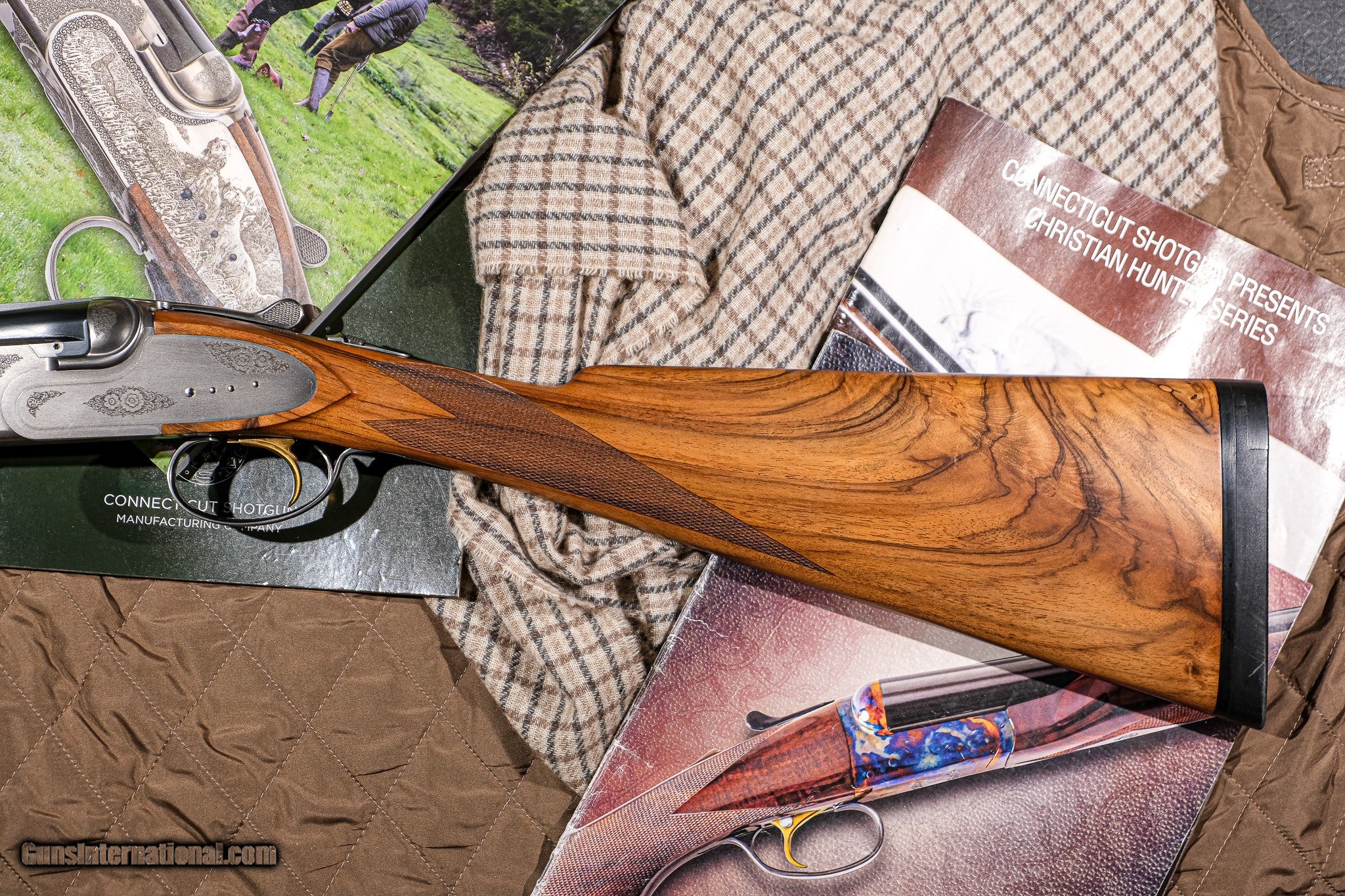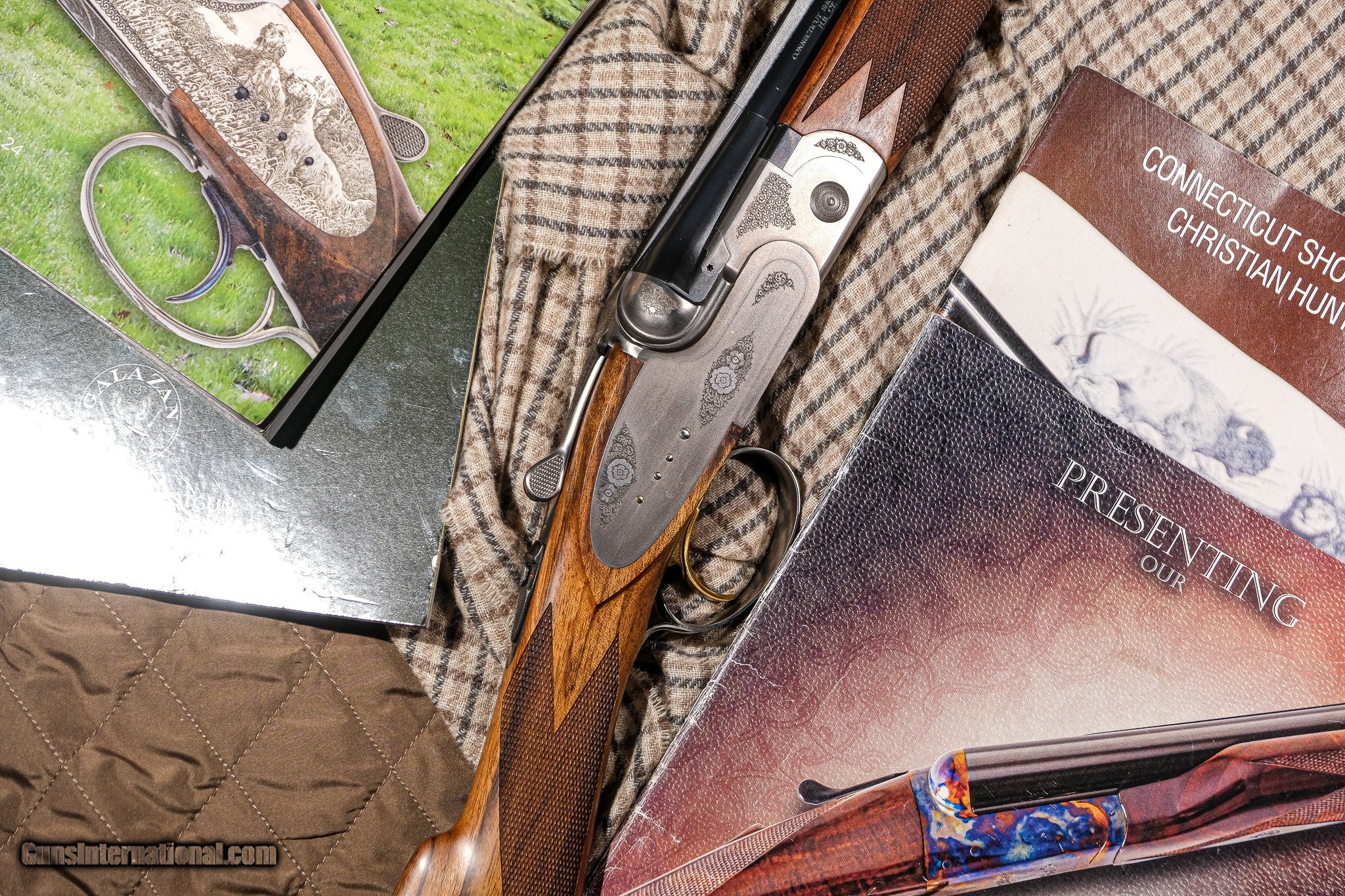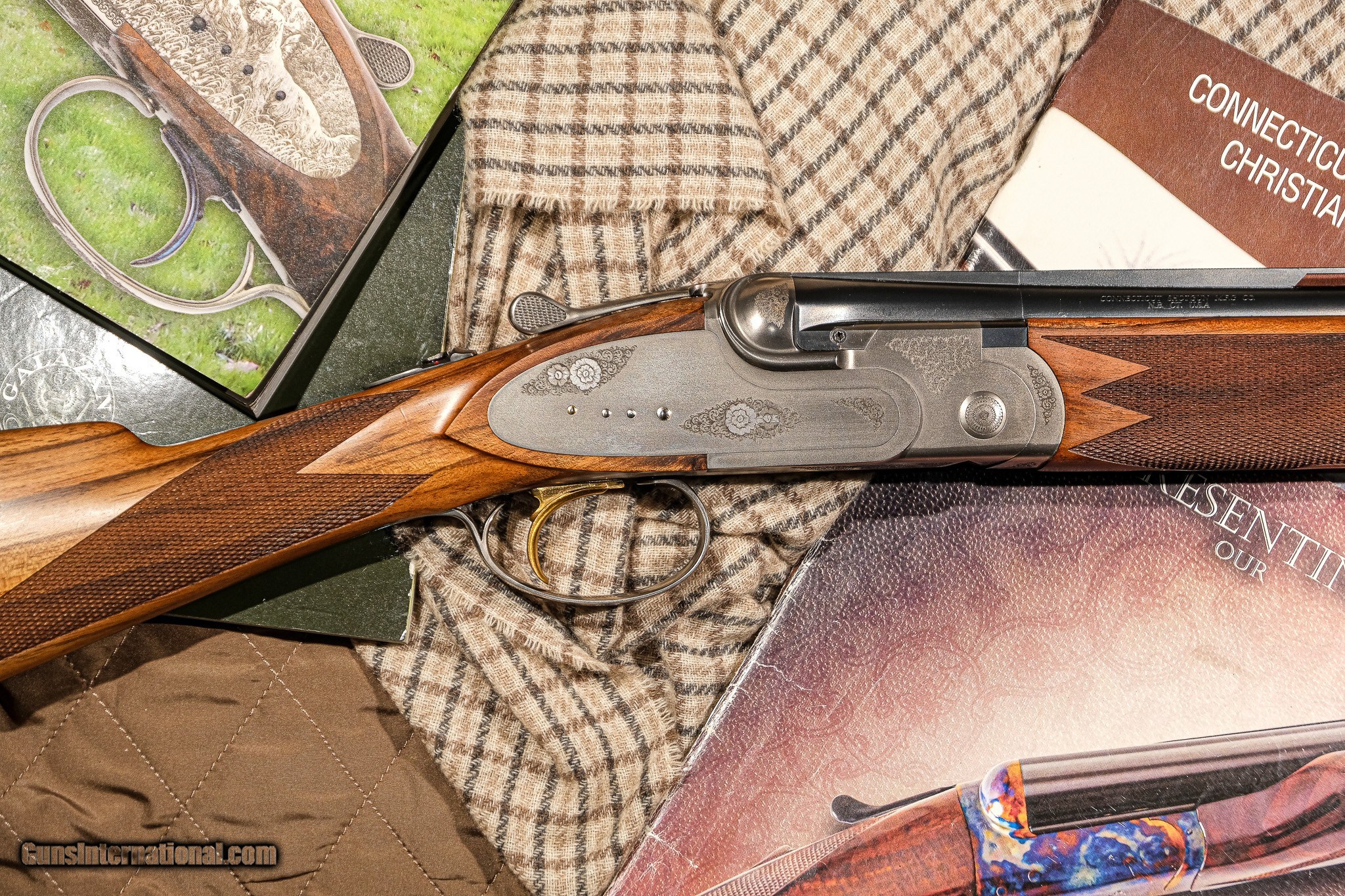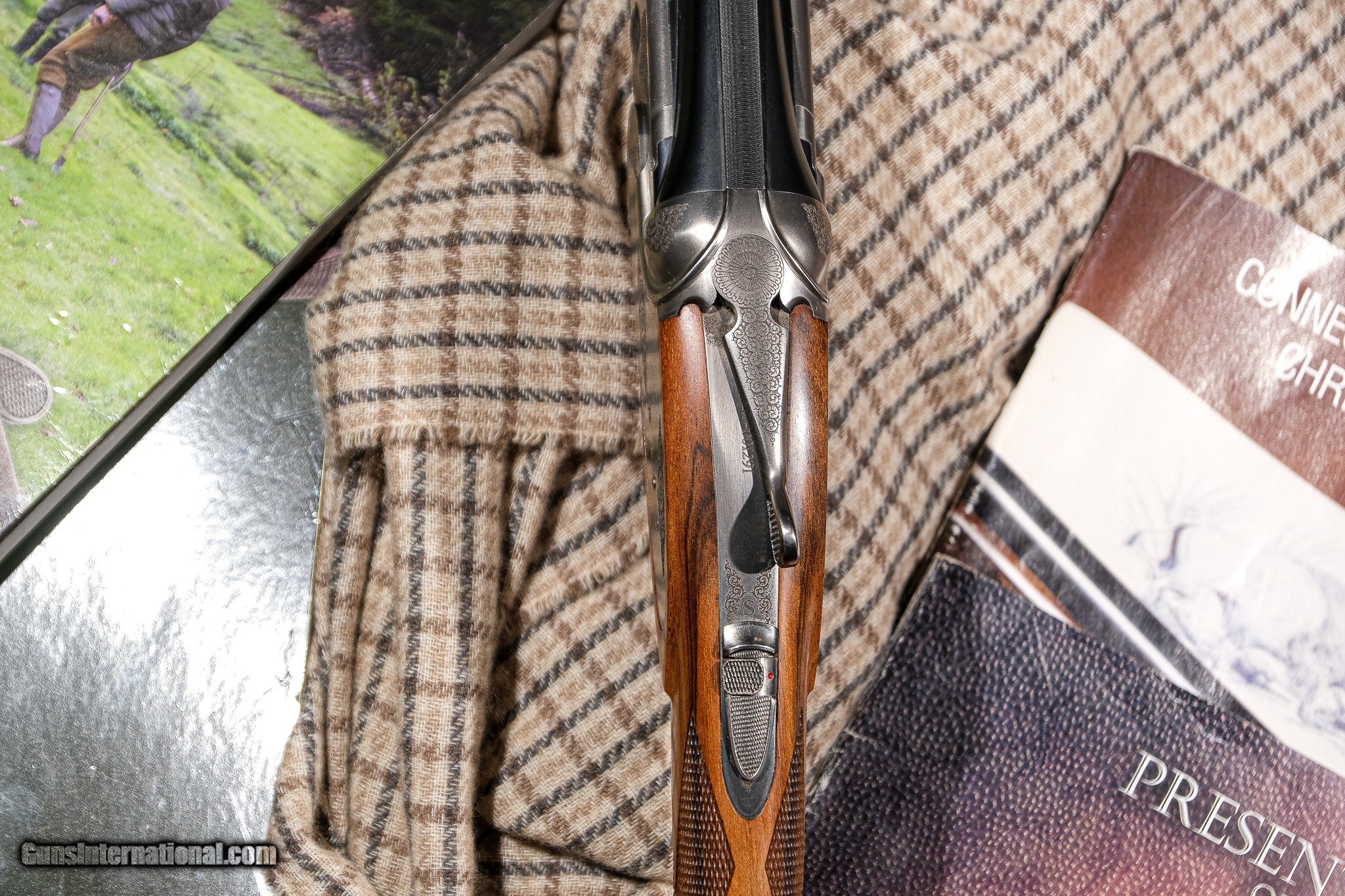 Description: CSMC - A10, O/U Sidelock, Standard Grade, 28ga. 28" Barrels with Screw-in Choke Tubes. Standard engraving pattern over coined finish, beautiful feathercrotch California walnut, factory recoil pad, vent rib, automatic ejectors, straight grip, field forend, London oil finish, factory case, perfect gun, adjustable position trigger providing 14 ¼”-14 ¾” length of pull, available for immediate delivery. Inv: 92517 6 lbs. 0 oz. 14 ½" x 1 ½" x 2 ½" $12,500.00 Do not compare this gun to a box lock gun with side plates that might look nice with some fancy mechanical engraving. This is a full sidelock shotgun, equal to or superior to any sidelock over and under on the market and is by far the strongest sidelock over and under available. We only sell direct; we use no dealers. You get the maximum value this way without any additional markup. All of our guns are made in the USA, in one facility, designed and built, with a lifetime warranty which no one else can offer. A dealer will sell you the gun he makes the most money on, which generally means less money going into the gun. Price: $12,500.00 Contact Seller |