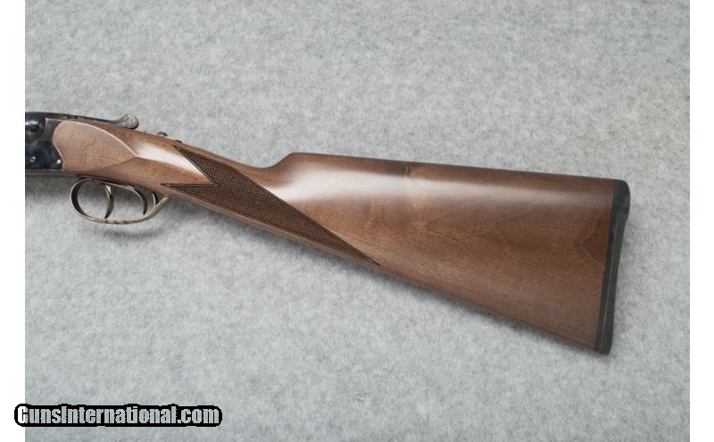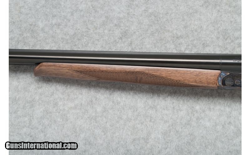 Description: Used. SOLD Caliber Info: 28 Ga. Chambers: 2 3/4 Metal Condition: Excellent Wood Condition: Excellent Bore Condition: Clean and bright Barrels: 26 Triggers: Double triggers Stock: Straight grip checkered Turkish walnut Stock Dimensions: LOP - 14 5/8 Fore End: Checkered walnut; medium splinter style Butt Pad: Black rubber pad Weight: 5 lbs. 11 oz. Sights: Brass bead front Chokes: Choke tubes Extras: Original box and (5) chokes. Item Location: Sun Prairie, WI |