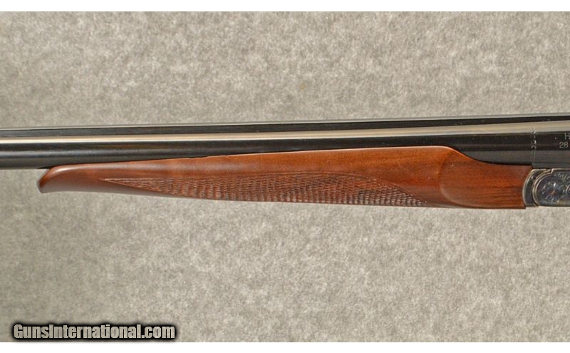 Description: Sales Tax on Gun Library Online Orders Cabela's Gun Library Online is a part of Cabela's Retail, Inc. Any purchase from the Gun Library Online will be subject to sales tax if shipment is made to a state in which Cabela's Retail, Inc has an active physical presence. Sales taxes will be charged based on the state and local sales-tax rates where the gun is delivered. SOLD Manufacturer: 2012 Caliber Info: 28 Gauge Chambers: 2 3/4 Metal Condition: Excellent Wood Condition: Excellent Bore Condition: Excellent Barrels: 26 Triggers: Single selective Stock: Checkered walnut with rounded knob pistol grip Stock Dimensions: 14 3/8" LOP, 1 1/2' dac, 2 1/4" DAH Fore End: Checkered walnut semi-beavertail schnabel Butt Pad: Black recoil pad Weight: 5 lbs. 14 ozs. Sights: Hollow rib with brass bead front sight Chokes: Screw-in chokes Item Location: Garner, NC |