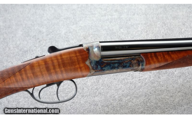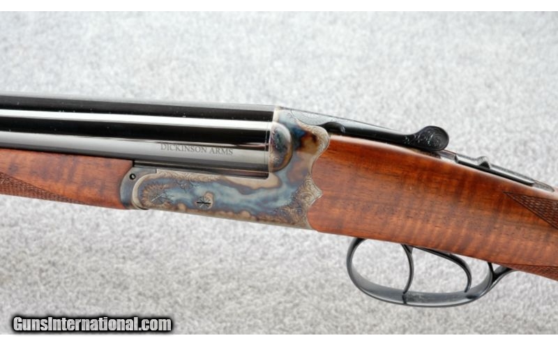 Description: This Dickinson Estate Side-by-Side Two Barrel Set Shotgun boasts 28 inch barrel as well as a Turkish walnut straight-hand stock with a gloss finish,. It features a trigger-plate action, charcoal color cased hardening receiver, double triggers, selective automatic ejectors and manual safety SOLD Manufacturer: 2016 Caliber Info: 28 Gauge and .410 Gauge Chambers: 2 3/4 in. and 3 inch Metal Condition: New Wood Condition: New Bore Condition: New Barrels: 28 inches Triggers: Double triggers Stock: Checkered walnut straight-hand stock with gloss finish Stock Dimensions: 14 3/4 inch LOP, 1 1/2 inch DAC, 2 1/4 inch DAH Fore End: Checkered walnut splinter fore end Butt Pad: Checkered Weight: 5 lbs. 9 oz. with 28 gauge barrels Chokes: Thin wall interchangeable chokes tubes for the 28 gauge; Modified and Modified on the .410 Extras: Case and accessories Item Location: Lehi, UT |