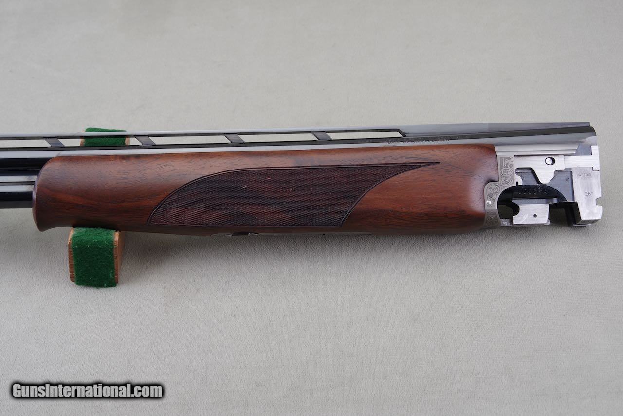 Description: 2007 Browning Citori Grade 6. This is a limited edition 2 barrel set with 28GA and 410GA 28'' barrels with invector chokes. The receiver is a stunning coin engraved finish with 7 gold etched birds. The stock is a beautiful oil rubbed walnut. The LOP is 14.25''. This shotgun is new in the factory case with the manual. It has never been assembled. The finish on the barrels and receiver are flawless and both rate 100%. The factory stock is exceptional with sharp checkers throughout. This is a rare top shelf package that can not be upgraded. SOLD Shotgun Gauge: 28 Gauge Manufacturer: Browning Model: Citori |