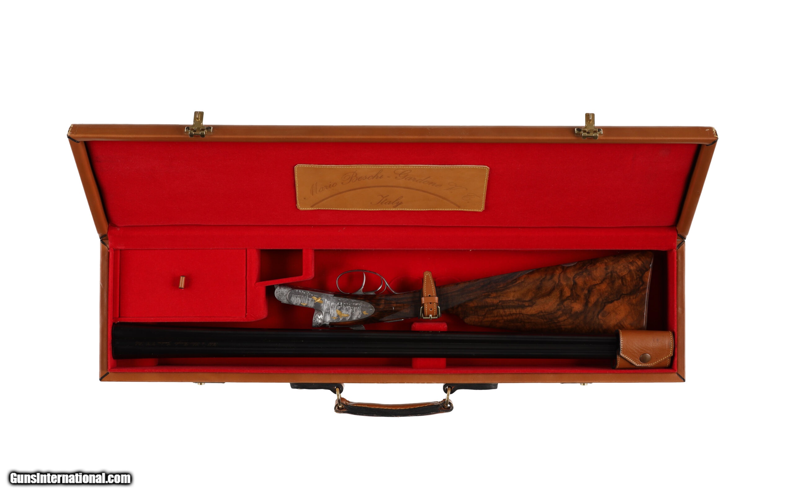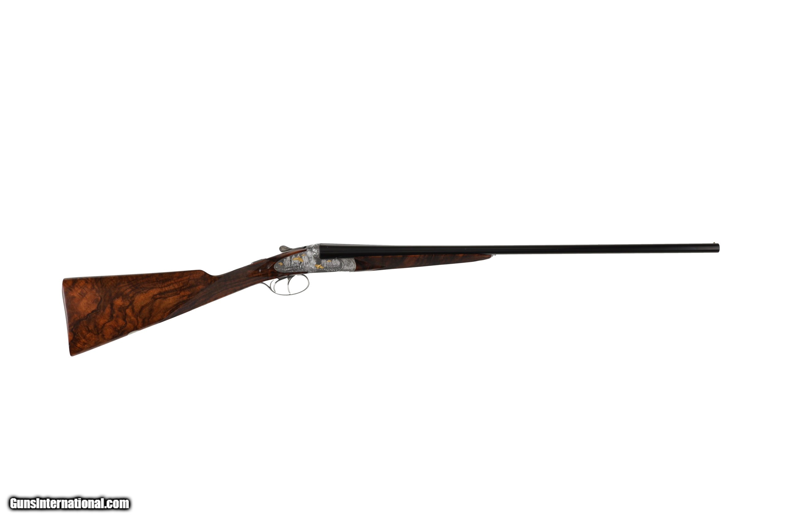 Description: Beautifully engraved gun in very good condition, engraved oval, leather case. Manufactured in: Italy Hand: Right Hand Action Finish: Coin Barrel Length: 26 Inches Barrel Condition: Very Good Stock Finish: Original Stock Condition: Very Good Type of Butt: Checkered Wood Grip: Straight Grip Forend: Checkered Cast Amount: 1/8" Extra Barrels: No. SOLD Manufacturer: Ferlib Model: SLE Chambers: 2 3/4 Ejectors: Yes Condition: Preowned Metal Condition: Very Good Action: Sidelock Triggers: Double Gauge Info: 28 Gauge Stock Comb: 1 3/4 Stock Heel: 2 3/8 Stock Cast: Off Fore End: Checkered LOP: 14 3/4 Rib: Concave Manufacture Date: 1989 Chokes: IC/IC Extras: No. Case: Leather |