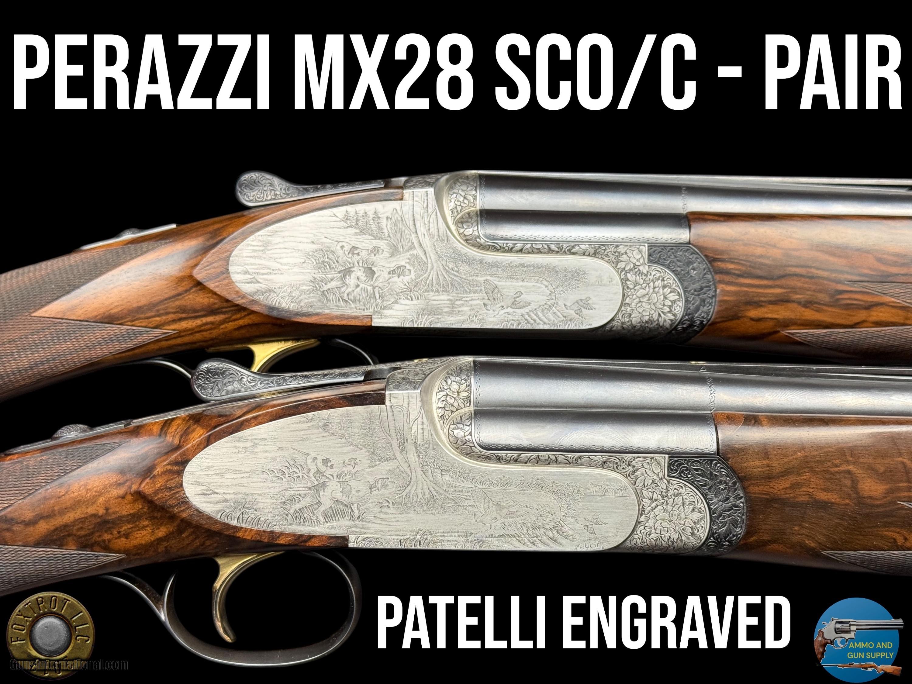 PAIR - PERAZZI - MX28 SCO/C - 28 GA - 29.5" - 34-312-39 ENGRAVING SCENES BY PATELLI