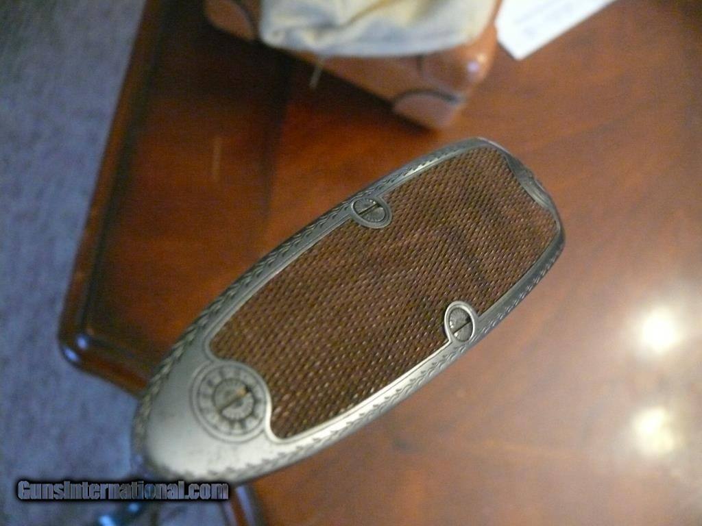 Description: Hard to find Parker Reproduction DHE in 28 ga with 26” barrels with perfect bores, solid rib and choked IC/M. Straight grip stock, Skeleton butt plate. Single selectable trigger! Original case and cloth dust cover. Includes original 20 ga Parker snap caps. LOP is 14.25”, DAC is 1.5”and DAH is 2.5”. Right tube has .007 constriction, and the left tube has .020 constriction. A genuinely nice and light weight 28 ga that you can carry all day long. If you have any questions, please let me know. Must ship to an FFL, cards add 3%. Strength and Honor! SOLD |