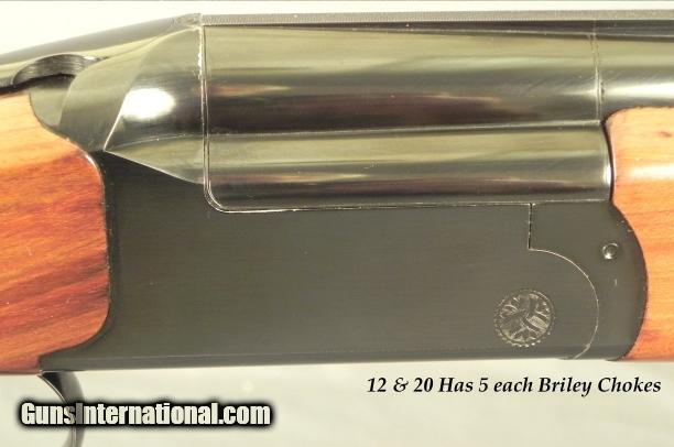 Description: #64389, Perazzi MX3 - 4 Barrel Set in 12-20-28 & 410, Every serial number matches everywhere, Made in 1984, Every barrel is 27 1/2"; 2 Forends with 1 for the 12 & 20 & another for the 28 & 410, Everything is 7 lbs. 12 oz. except the 28 bore is 7 lbs. 10 oz.: The 12 Bore with 5 each Briley chokes at .724 .011 - .015 - .019 - .025 & .030" (Imp.Cyl. - Skt.II - Mod. - Imp.Mod. & Light Full), 2 3/4" chambers; The 20 bore with 5 each Briley chokes at .625 .008 - .012 - .015 - .017 & .020" (Imp.Cyl. - Skt.II - Mod. - Imp.Mod. & Light Full), 2 3/4" chambers; The 28 bore at .548 .005 & .005" (Imp.Cyl. & Imp.Cyl.), 2 3/4" chambers, The 410 bore at .413 .005 & .005" (Imp.Cyl. & Imp.Cyl.), 2 1/2" chambers, The 12 bore barrels are ported but the Briley tubes block the ports as shown in the photos, Matted vent ribs on all 4 barrels, Single non-selective trigger, Detachable trigger group, Forend with finger grooves, Type 4 forend, Pistol grip stock at 14 1/2 x 1 1/2 x 2 5/16" over a 3/4" leather faced pad, Neutral stock, 7 lbs. 12 oz. with all the barrels except the 28 bore is 2 ounces lighter, The original blue on all 4 barrel sets remains at 98%, Original receiver blue at 98%, The face of the trigger has 100% blue, The wood at 96% with a few handling marks, The checkering is still 100%, Every barrel set has bores as new. The gun is cased in the maker's molded trunk but the case for the spare barrels has separated lining which I have seen before with these cases from Perazzi. The case in the photos remains in excellent condition. The barrels are smack on the face and it remains very tight with a lot of bite left and a lot of mechanical life. SOLD |