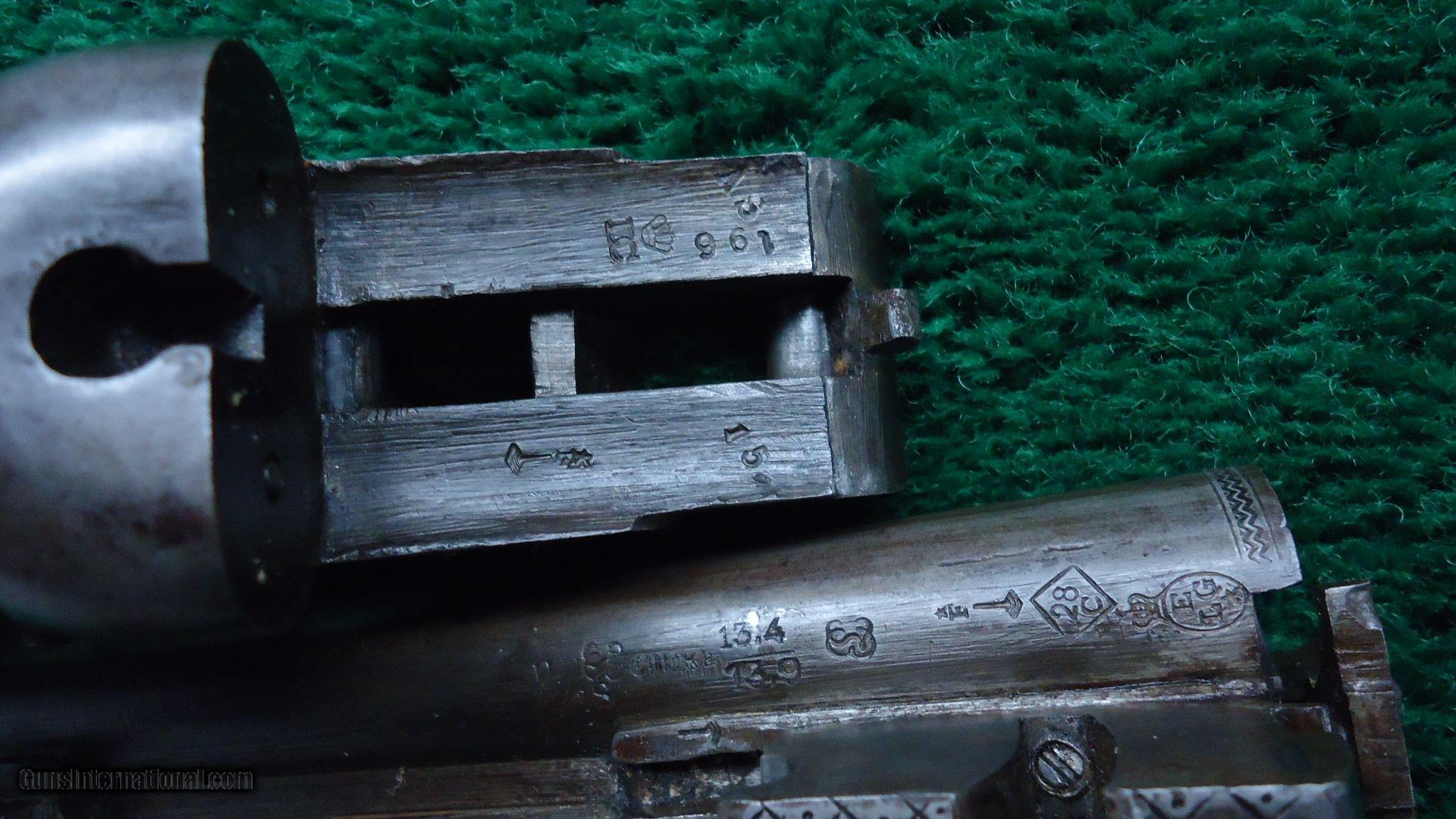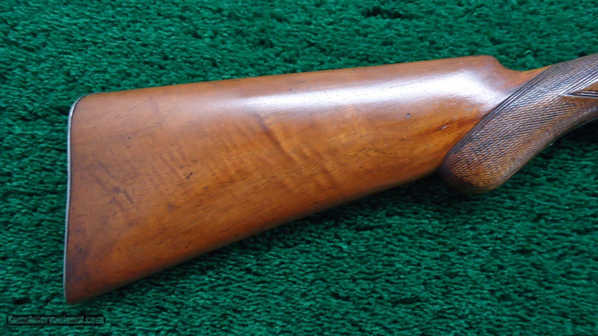 Description: Double barrel 28 gauge exposed hammer shotgun. Locks are signed “QUAIL-GUN” of Belgian manufacture. Approximately 25-1/4 inch barrels with good shiny bores. The rib is marked “LAMINATED-STEEL BELGIUM”. Checkered wood with pistol grip stock. Checkering is worn but still visible. Steel ribbed shotgun butt plate. The lock up is just a bit loose. The hammers are a little bit different. Light gun at only 4 pounds 7.6 ounces! 13-3/8 inch LOP. Good looking little gun. Leroy Merz Antique Firearms specializes in antique and vintage Winchesters and other fine American firearms. Since 1965 Mr. Merz has taken part in the world of firearms and has been a contributor to many well known reference books. Just recently we mailed the 127th edition of our privately-published catalog. We have hundreds of additional guns in every price range at our home online. Search for Merz Antiques in google. SOLD Curio/Relic: Yes |