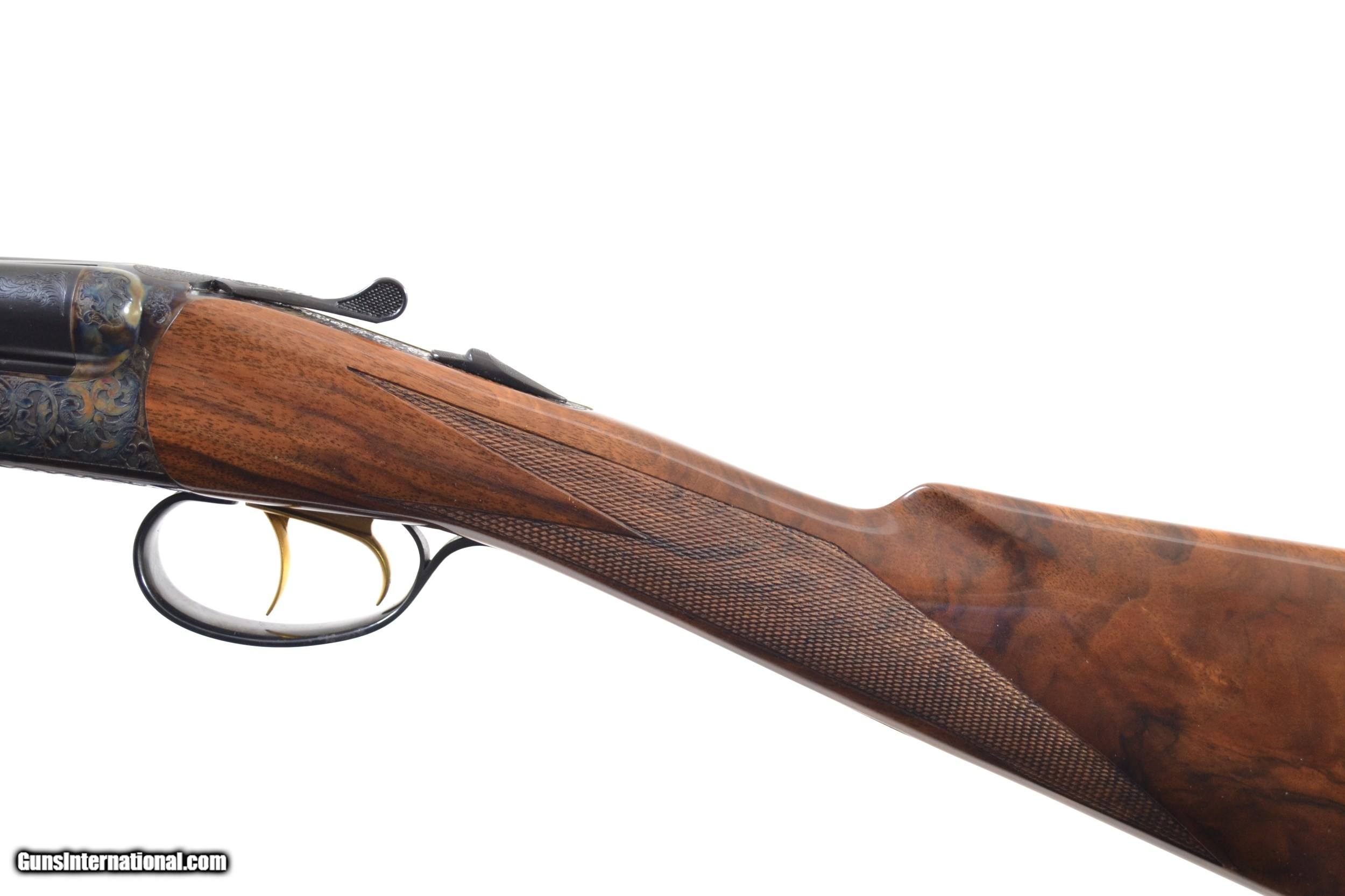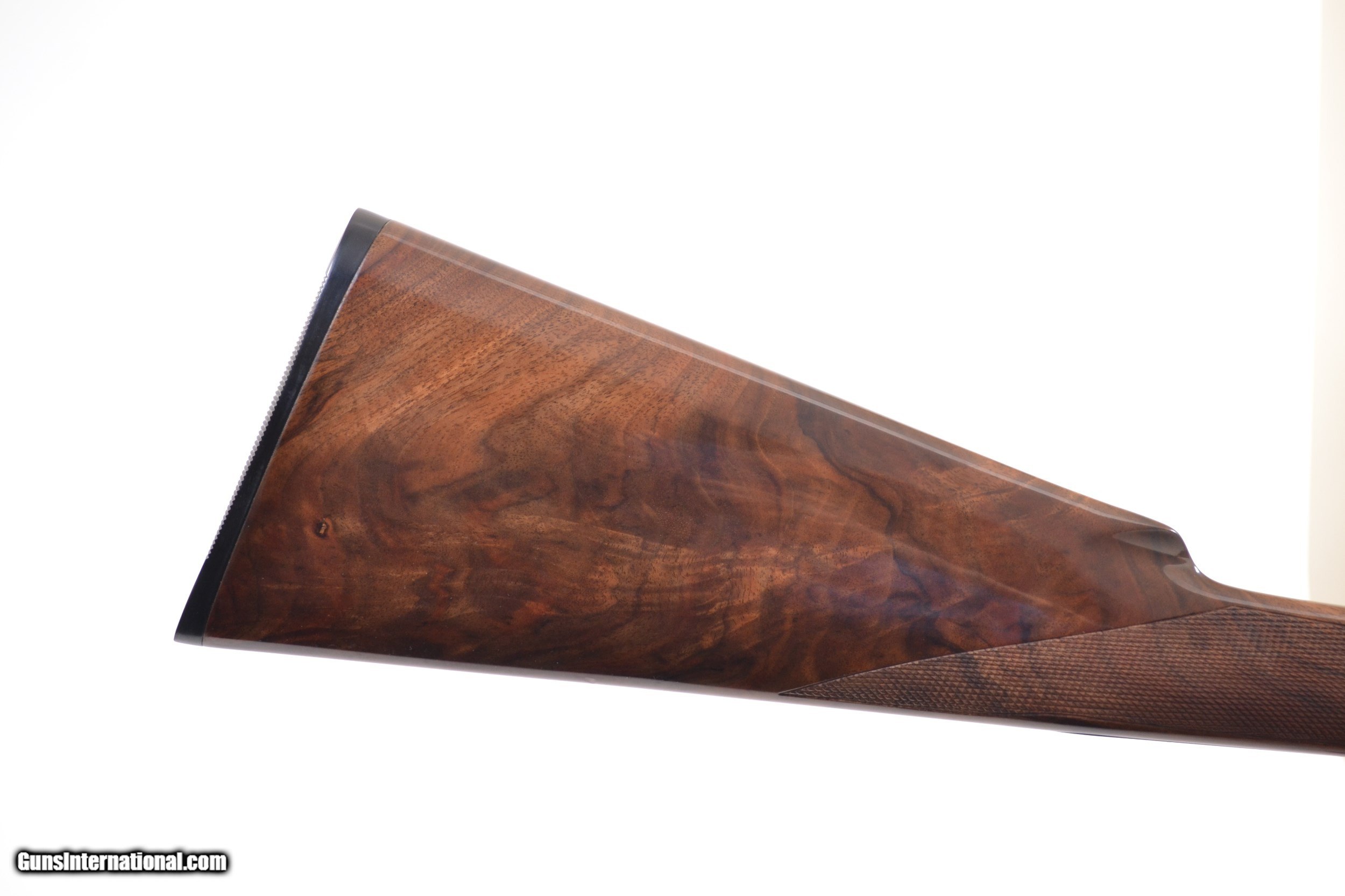 Description: RBL 28 - .28ga., 30” barrels, M/F choked, can be opened to customers specifications, beautifully figured 4x walnut long tang straight grip stock, beavertail forend, double triggers, automatic ejectors, automatic safety, Truoil finish, solid rib, hard butt plate, marvelous deep full coverage scroll over a bone and charcoal case colored receiver. 100% new and unfired, available for immediate delivery. Base - $4,995, 4x Wood - $600, Beavertail - $175, Truoil - $500, S&H 50. 6lbs. 0oz. 14 3/4” X 1 ½” X 2 3/8” $6,320.00 SOLD |