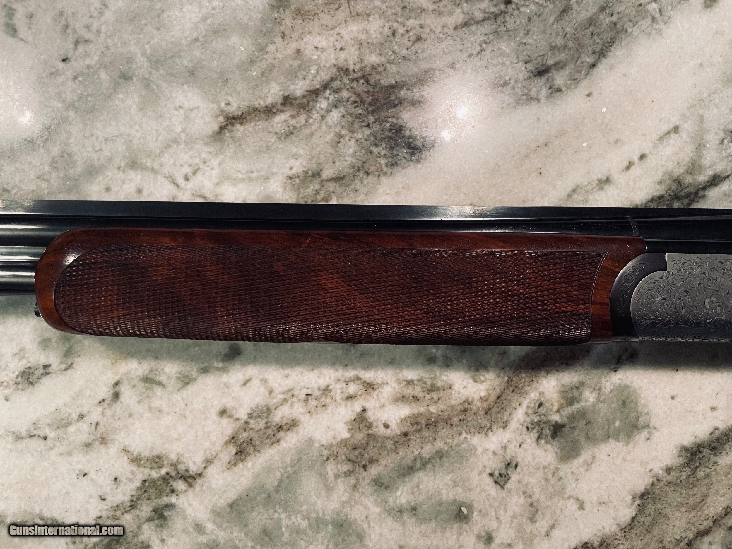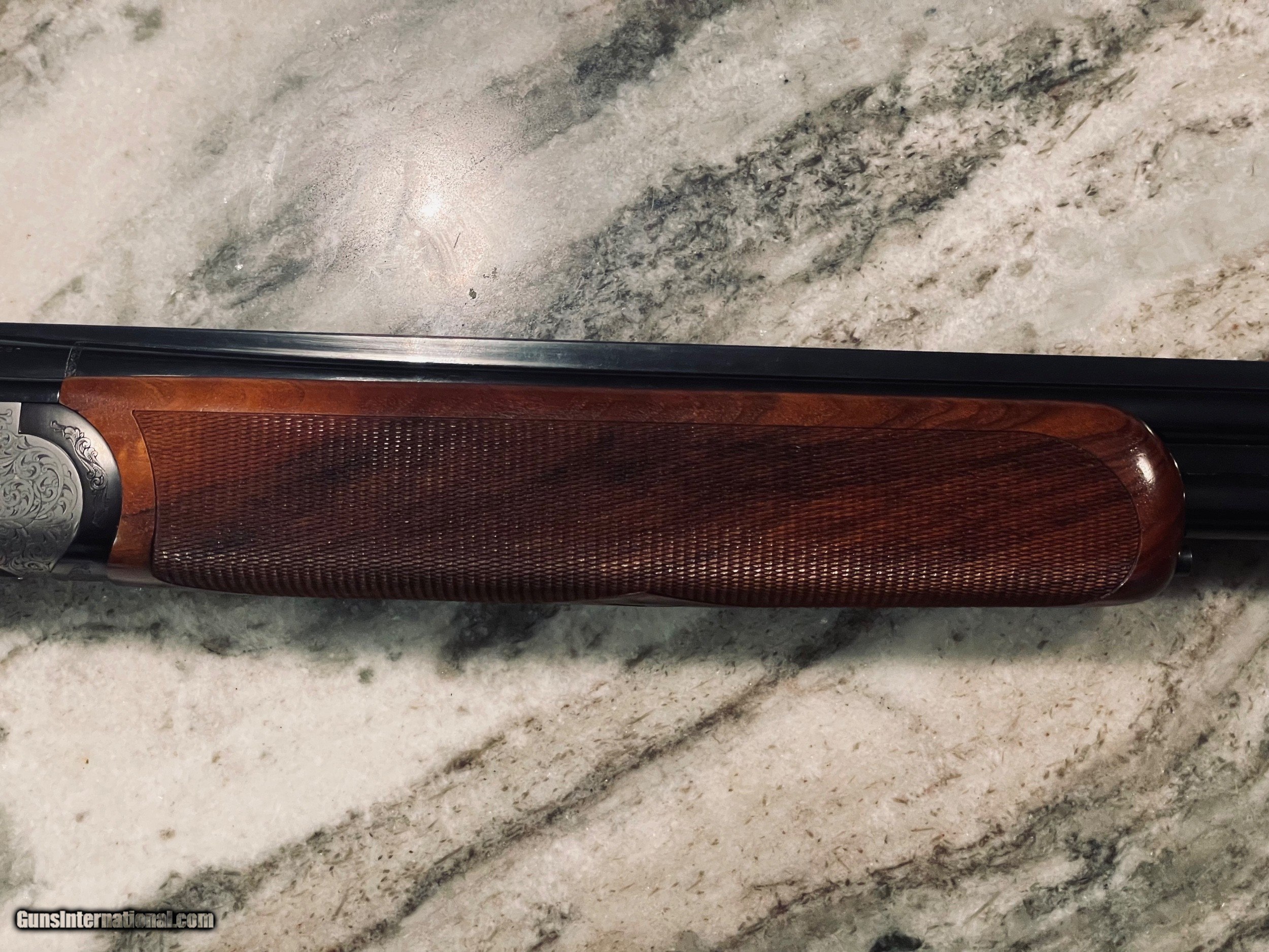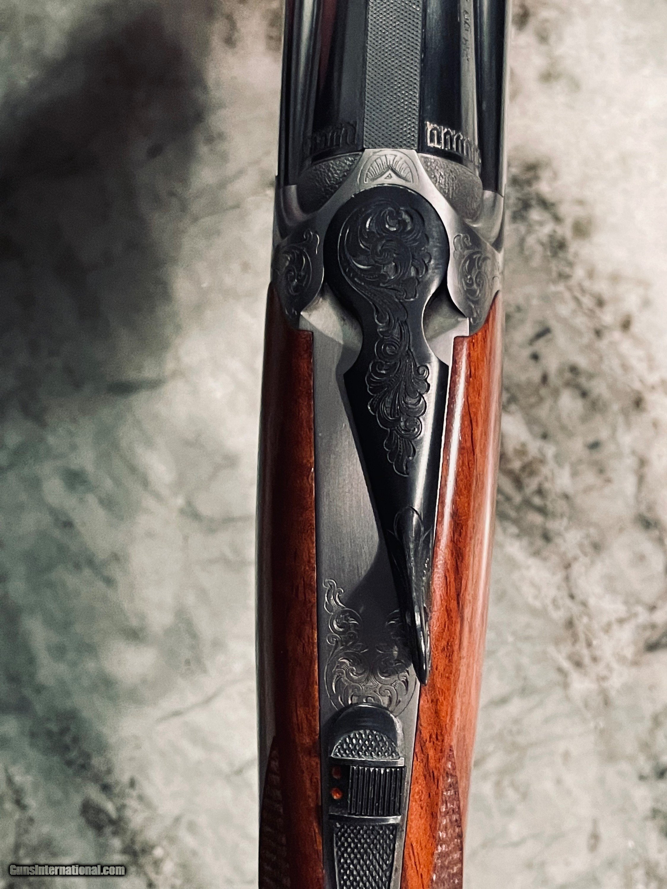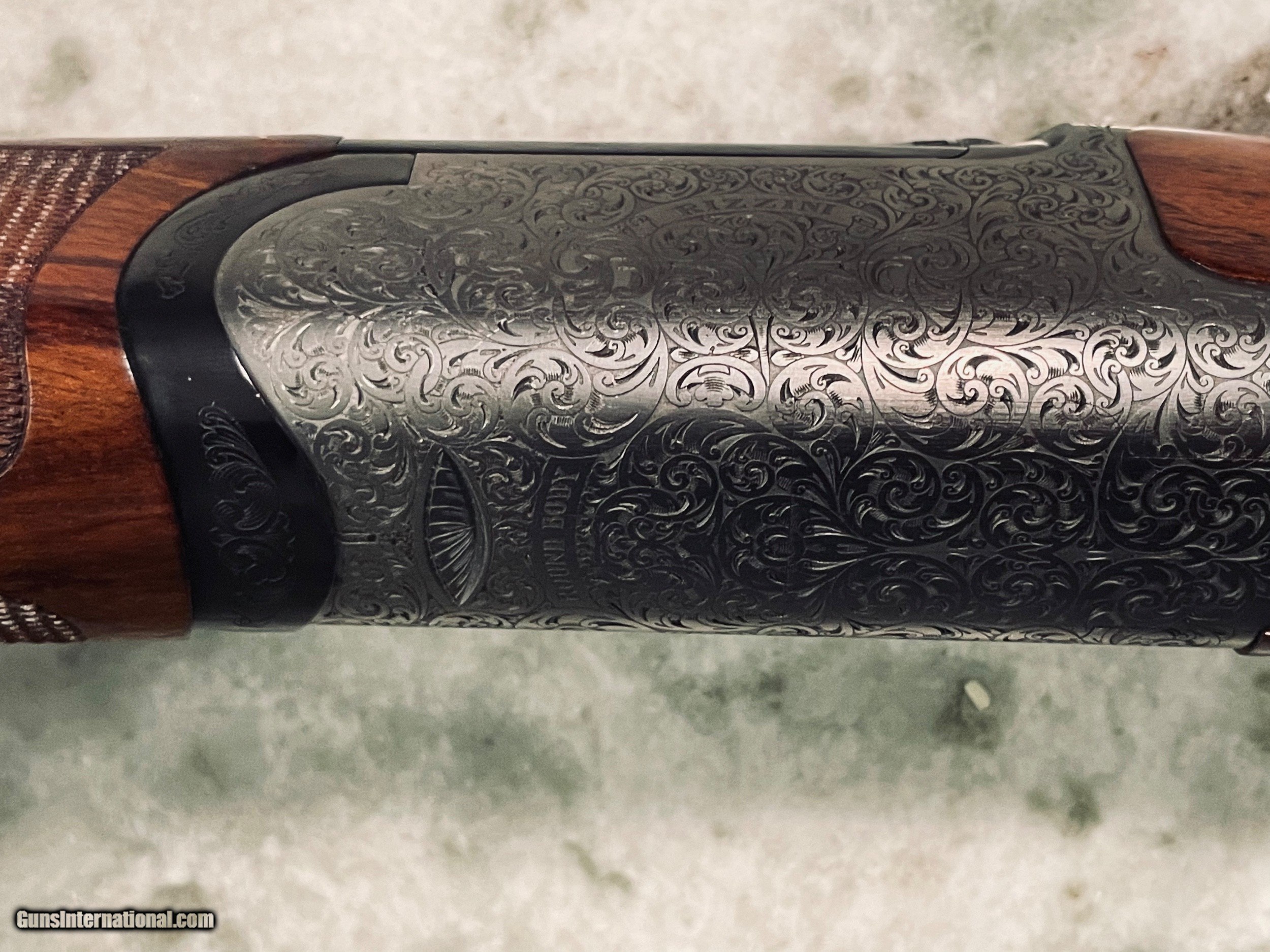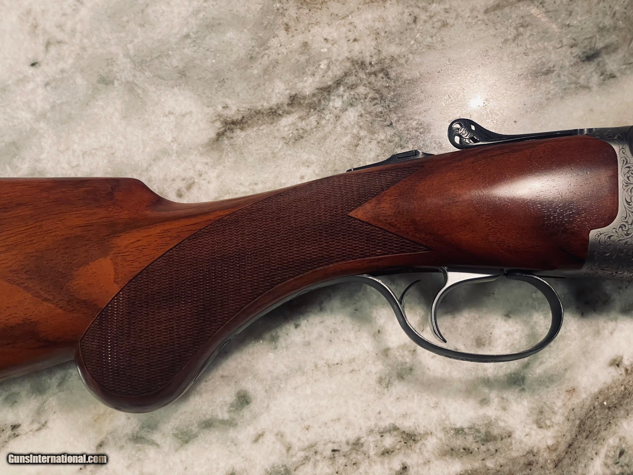 Description: First edition Rizzini Round Body EL 28g in mint condition. English scroll engraved and singned by Bottega Giovanelli. Solid game rib. Frame scaled to 28g size. Very lively gun at only 6lbs 1oz. Massive discount compared to a new one in the same condition. Specifications are below. Call 786-375-1709 for any additional information. 28" barrels 14 3/4" LOP 1 1/2" DAC 2 1/4" DAH 2 3/4" chambers 6lbs 1oz Choked IC/M 1/8" right hand cast "off Ejectors SOLD |