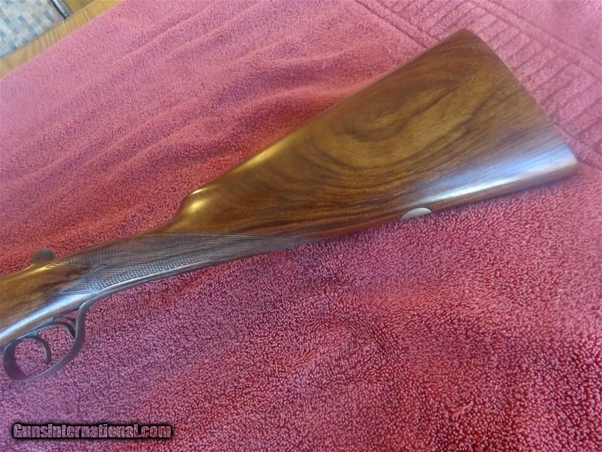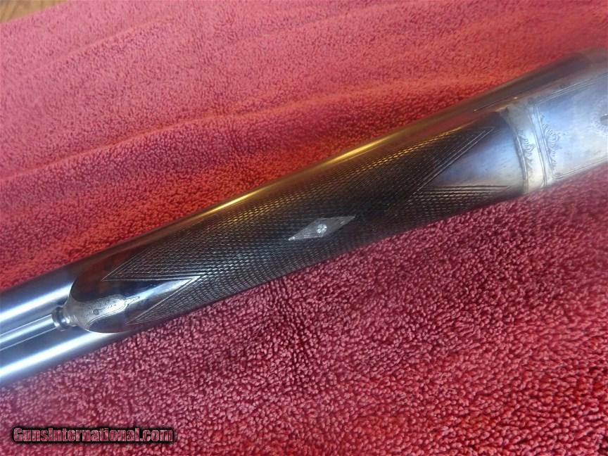 Description: SALTER & VARGE, LONDON, 28 GAUGE, 28" BARRELS, IC. AND MODIFIED, 2 1/2" CHAMBERS, EXCELLENT BLUE, MIRROR BORES. BOX LOCK, FINE SCROLL AND BORDER ENGRAVING, CASE COLOR IN THE PROTECTED AREAS, TOP LEVER TO THE FAR RIGHT, TIGHT ON FACE. STRAIGHT GRIP STOCK, SPLINTER FOREARM WITH FRONT BUTTON RELEASE, NICELY FIGURED ENGLISH WALNUT, FINE CHECKERING, CARVED BUTT, SILVER OVAL STOCK INLAY (NO INITIALS). GREAT DIMENSIONS, 1 3/8" X 2" X 14 1/8", 5 POUNDS, 5 OUNCES. NICE LITTLE PRE-WAR ENGLISH DOUBLE. $3500.00 + $40.00 Insured shipping to an FFL address. Email for more information.We have hundreds of pieces of ORIGINAL gun company advertising & memorabilia available for sale. We have no reprints or reproductions. SOLD Curio/Relic: Yes Manufacturer: Salter & Varge Bore: 28 gauge Chambers: 2 1/2" chambers Ejectors: no Triggers: double trigger Gauge Info: 28ga Stock: straight grip stock Stock Dimensions: See description |