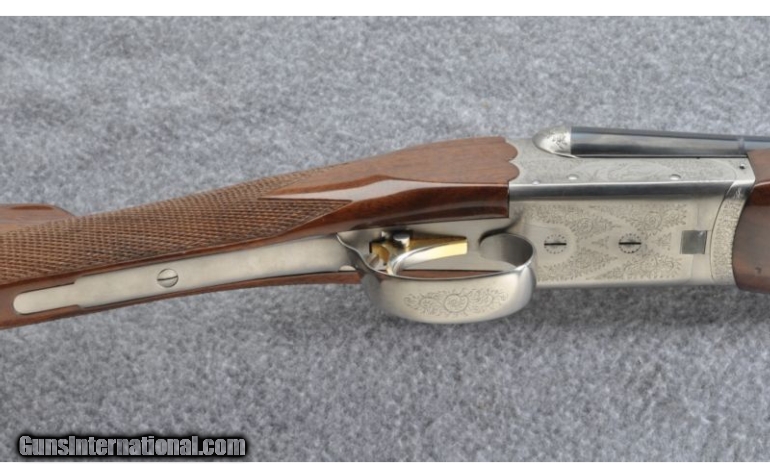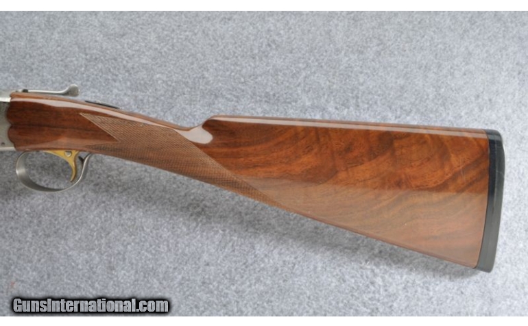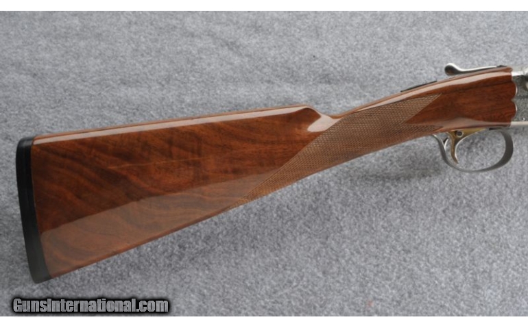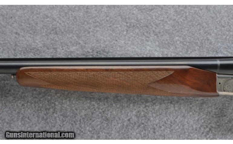 Description: SOLD Caliber Info: 12 Gauge Chambers: 2 3/4 Metal Condition: Appears in nice condition with only slight carry wear Wood Condition: Very few small field marks on the fore end and butt stock Bore Condition: Bright Barrels: 26" with solid rib and auto ejectors Triggers: Single Selective at the trigger Stock: Checkered English style Stock Dimensions: 14" LOP, 1 3/8" DAC, 2 1/2" DAH Fore End: Checkered beavertail with Anson type release Butt Pad: Old English by Pachmayr Weight: 6 lbs 8 oz Sights: Brass bead front Chokes: Screw-in Skeet, Improved Cylinder & Modified Extras: Only three choke tubes provided Item Location: Grand Junction, CO |