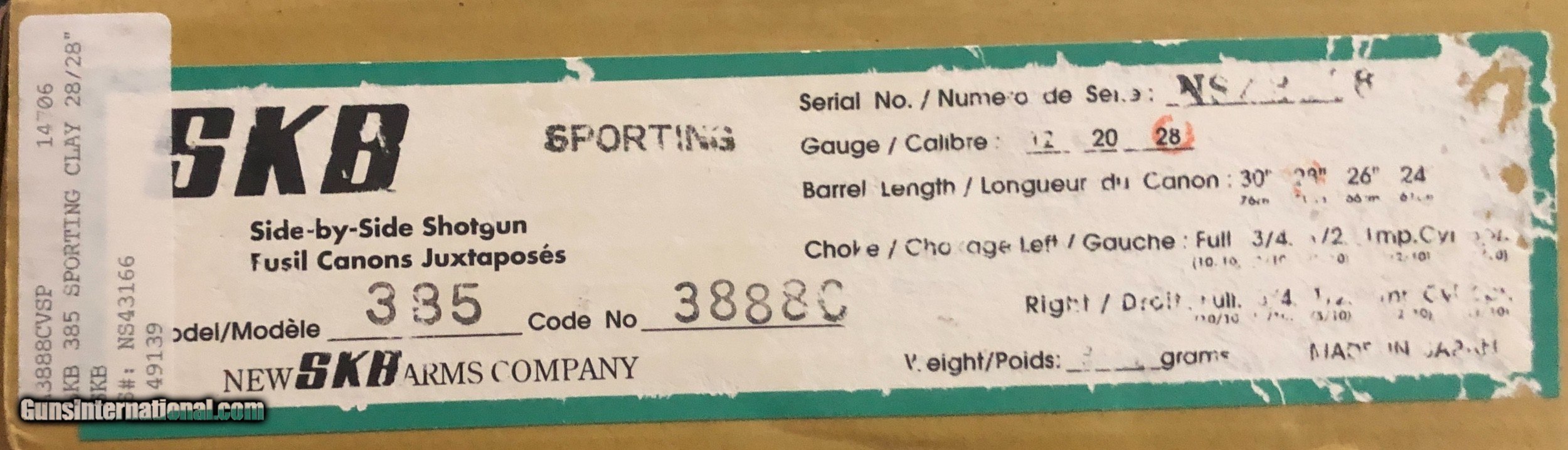 Description: SOLD !!!! Seldom found configuration. SKB Sporting Clays with choke tubes, raised vent rib and 28ga to boot. Gun has had very little use. Excellent condition with original box. Additional choke tubes can be purchased at SKBshotguns Please call Mark 715-814-1295 Pack and ship $45 LAYAWAY: Layaway is available with 1/3 down of final total price including shipping/insurance within 7 days . Balance due in 45 days. Layaway Sales and guns modified at time of sale are FINAL with no refunds, no inspections, no returns. SOLD Shotgun Gauge: 28 Gauge Manufacturer: SKB Model: 385 SPORTING CLAYS Barrel Length: 28IN Chambers: 2 3/4 IN Ejectors: YES Condition: EXCELENT Metal Condition: EXCELLENT Wood Condition: EXCELLENT Bore Condition: EXCELLENT Triggers: SINGLE SELECTIVE Stock Comb: 1 1/2IN Stock Heel: 2IN LOP: 14 3/8 REAR SINGLE TRIGGER Rib: RAISED VENTED Weight: 7LBS 5OZ Chokes: 3 Extras: WITH BOX |