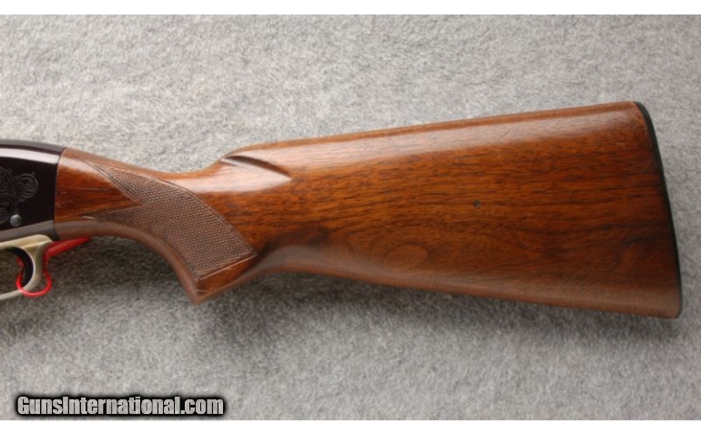 Description: Engraved receiver has outdoor scenes with pheasant and pointer dog and ducks in flight. All in all a nice shotgun with only minor dings and field marks. SOLD Caliber Info: 12 Gauge. Chambers: 2 3/4 Inch Semo-auto. Metal Condition: Very good with light blue wear and a few very small dings. Wood Condition: Very good with field marks. Bore Condition: Like new. Barrels: 28 Inch Win-Lite. Triggers: Single blue. Stock: Checkered walnut pistol grip. Stock Dimensions: 13 7/8 Inch LOP. Fore End: Checkered walnut. Butt Pad: Black Winchester butt plate. Weight: 6 Lbs 8 Oz. Sights: Single front bead. Chokes: Fixed Mod. Item Location: Owatonna, MN |