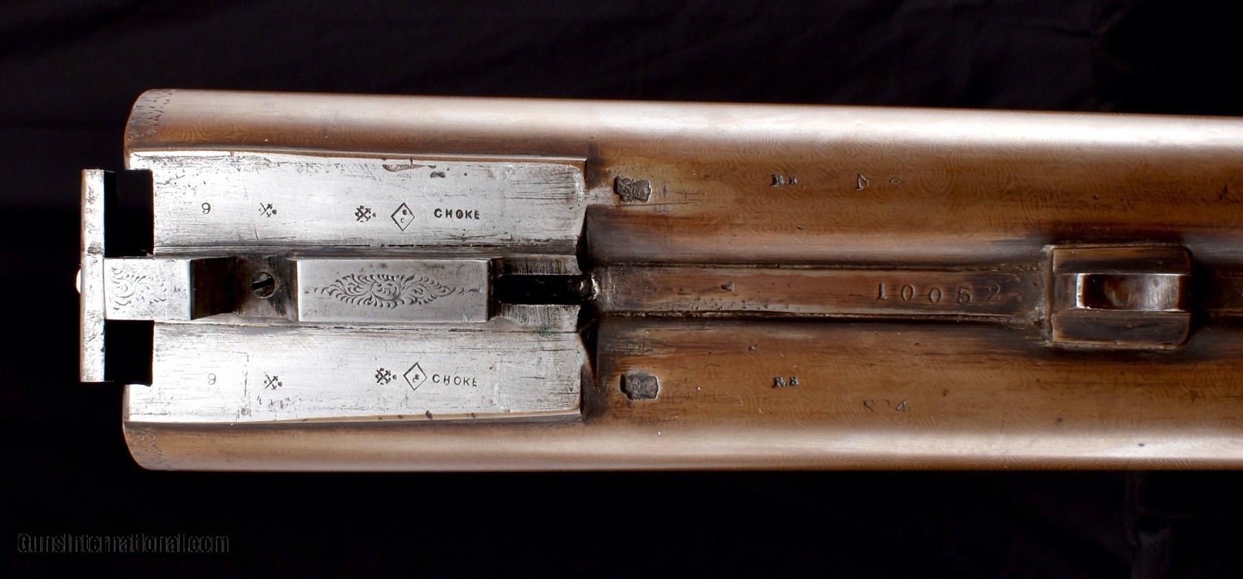Description: Rare early Eureka model gun made in 8ga with 34" damascus barrels. Gun has splinter forend, double triggers, extractors and is nicely engraved. Now set up with removable Briley choke tubes and in very sound shootable condition. This gun was used quite a bit with great success by the previous owner and it functions well. A stash of 8ga ammo, appropriate for this gun can be made available to the buyer. Gun remains in very good and shootable condition with very good bores, sound stocks. The gun is tight and on face and mechanics are very good. This scarce 8ga is priced at $3995 plus shipping to your home as an antique. Please dont hesitate to contact me at (704) 280-2382 or via PM on this site with any questions or reasonable offers. SOLD Antique: Yes Shotgun Gauge: 8 Gauge Manufacturer: J.P. Lovell Model: Eureka Serial Number: 10052 Barrel Length: 34 Ejectors: Extractors Condition: Very good Metal Condition: Very good Wood Condition: Very good Bore Condition: Very good Barrel Type: Damascus Stock Comb: 1-13/16 Stock Heel: 3-1/8 Fore End: Splinter LOP: 15 Weight: 13lbs 6oz Chokes: Choke Tubes |