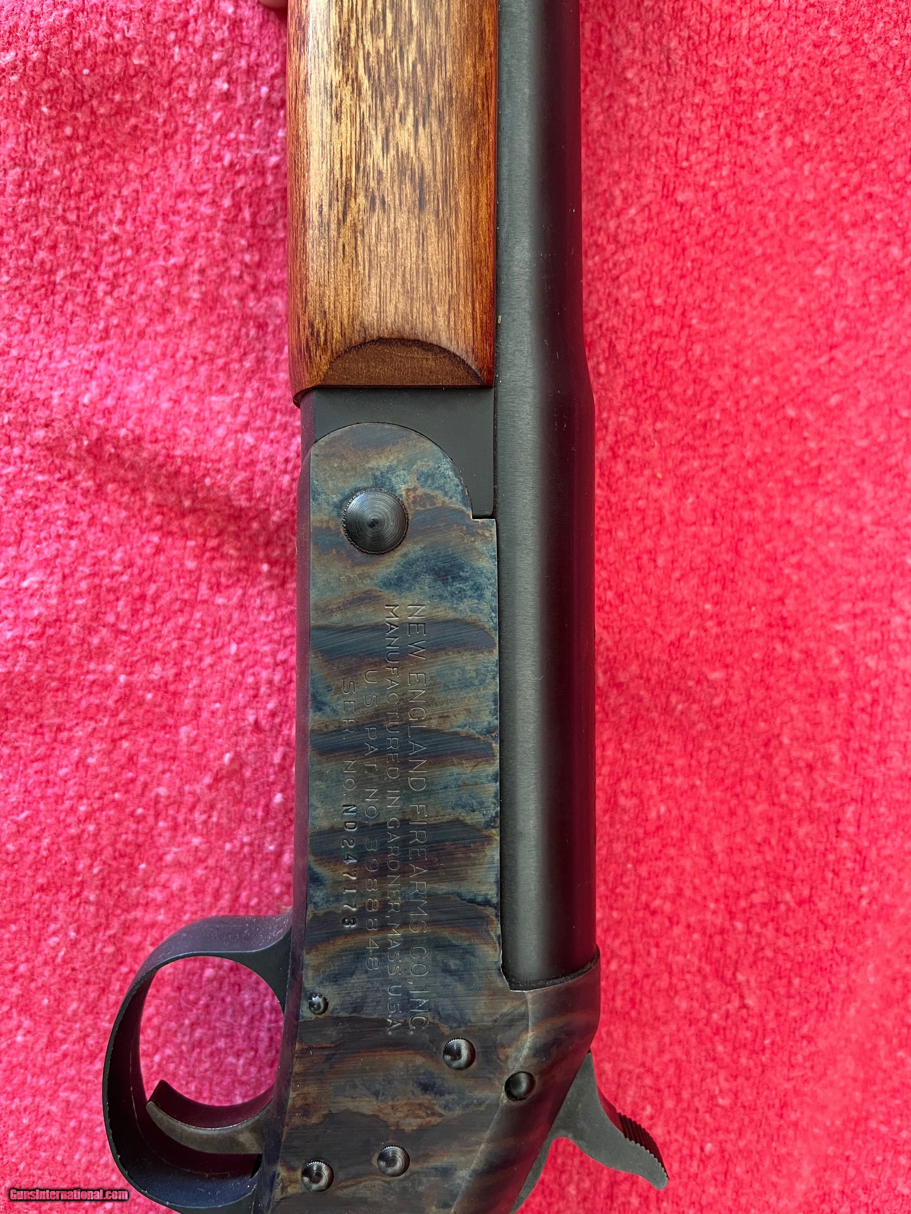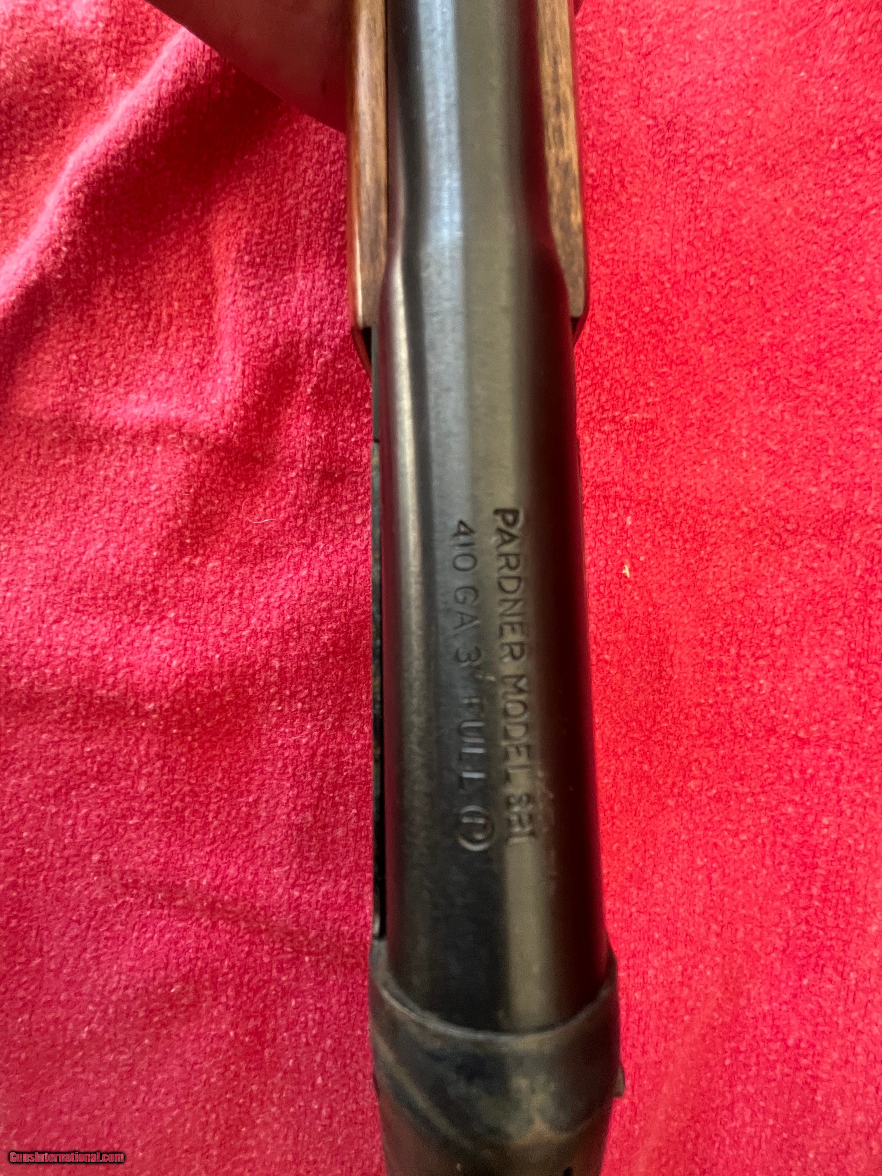 Description: New England Firearms Pardner single barrel .410 shotgun. Break action 25.5" Full Choke barrel. This shotgun has been fired very little and is almost new in appearance. It will be shipped via USPS insured upon receipt of the FFL copy and a USPS moneyorder. Shipping is $55. Feel free to ask any questions. SOLD Shotgun Gauge: .410 Gauge Manufacturer: New England Firearms Model: Partner Barrel Length: 25.5 Condition: Excellent Metal Condition: Excellent Wood Condition: Excellent Bore Condition: Excellent |