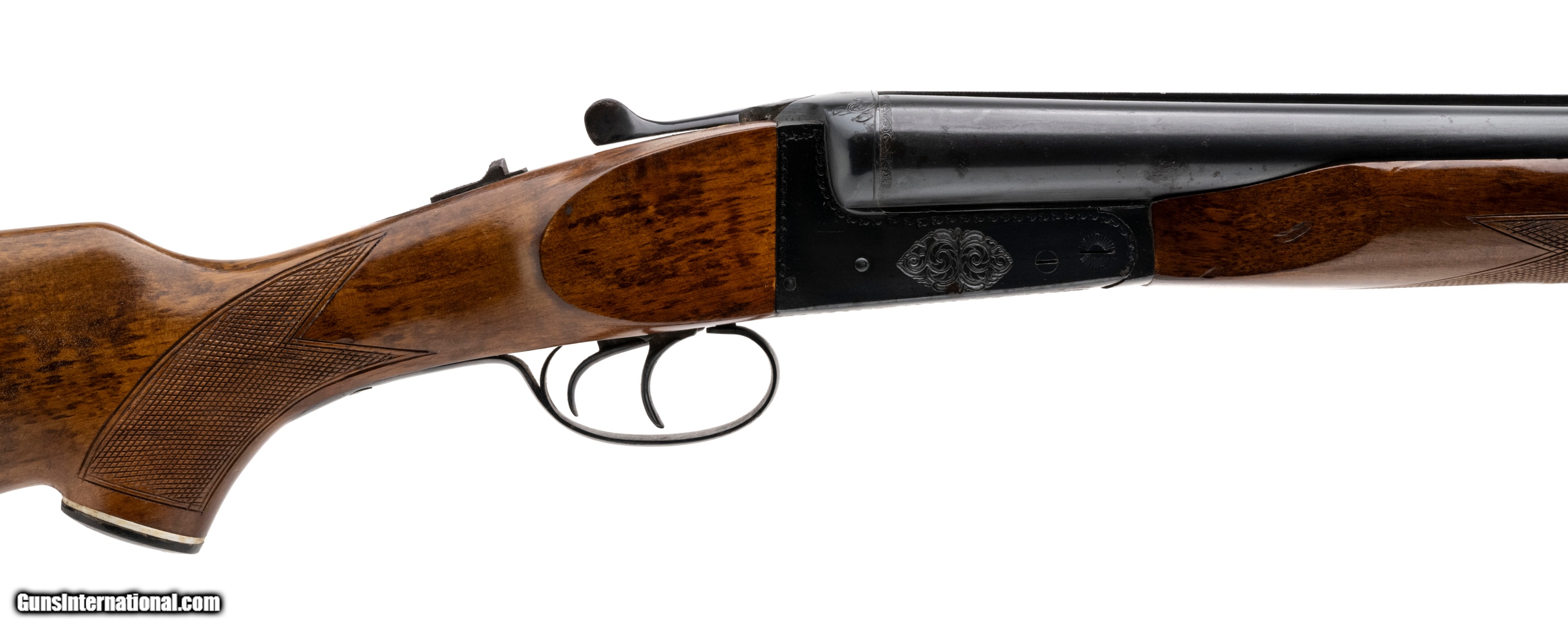 Description: "SN: 159814. Made circa 1940s, 10 Gauge with 32.5"" barrels. Bores are bright. Side/Side Field shotgun with engravings and a stock pad has been added. Finish is in very good condition with Light pitting at the top end of the barrels. Wood stock and forend are in very good condition with light handling wear. Overall condition is very good. 14"" LOP. SOLD |
