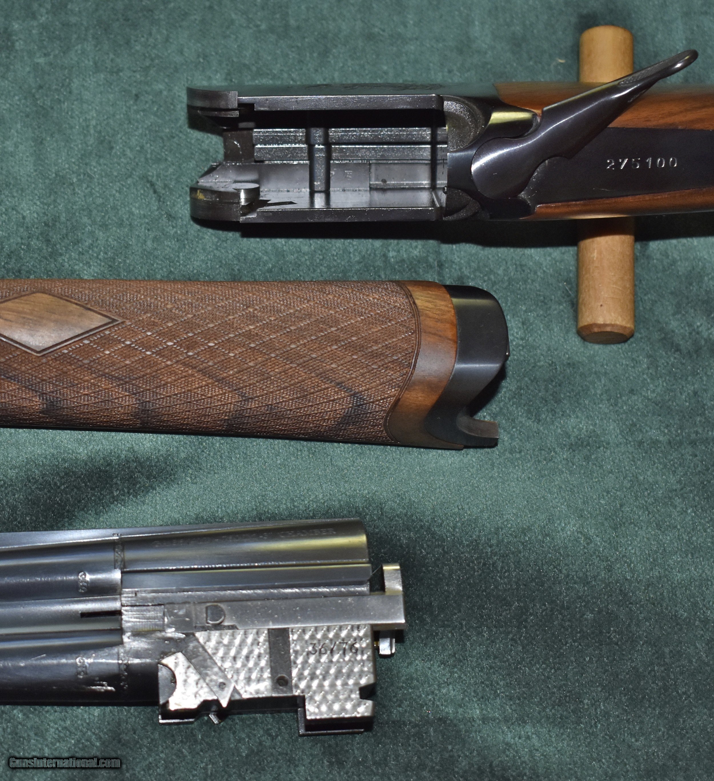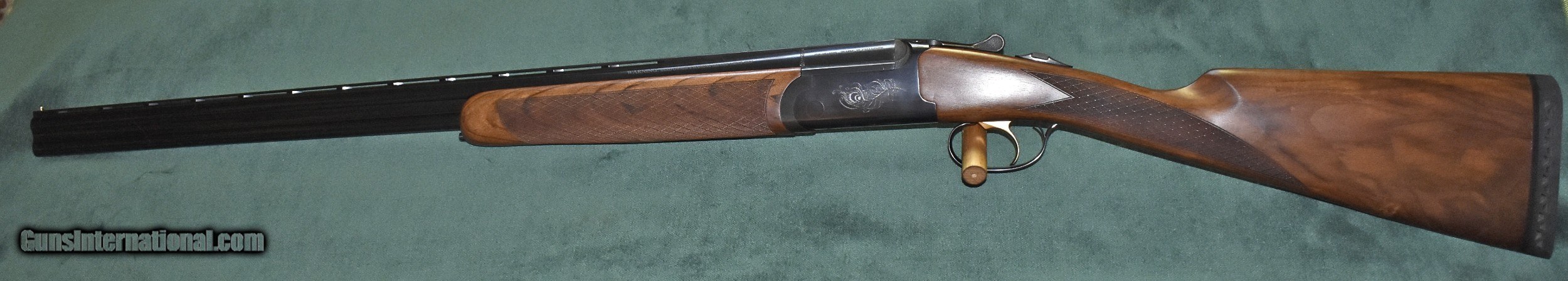 Description: 410 over under by Parvona Arms. Built by the FAIR group of Bresica,Italy, this gun is new and unfired in the makers luggage case. It has 26" vent rib barrels with 5 screw in chokes. Other features include a selective single trigger,ejectors,3" chambers,a straight grip stock with oil finished wood.The stock dimensions are 135/8" LOP over the factory pad,11/2" at comb,and 21/8" at heel.Included are 2 factory spacers that can be added if addition LOP is needed.This gun was intended for young shooters or smaller shooters who prefered a smaller,lighter gun.This would be perfect for preserve shooting or fun clays.Cased with chokes and accessories. SOLD Shotgun Gauge: .410 Gauge Manufacturer: Pavona Arms (FAIR Group) Serial Number: 275100 Barrel Length: 26 Chambers: 3 Ejectors: yes Condition: new in box Metal Condition: new Wood Condition: new Bore Condition: new Action: over under Triggers: single selective Stock Dimensions: 135/8"x11/2"x21/8 Rib: ventilated Weight: 6-0 Chokes: screw in Case: factory case |