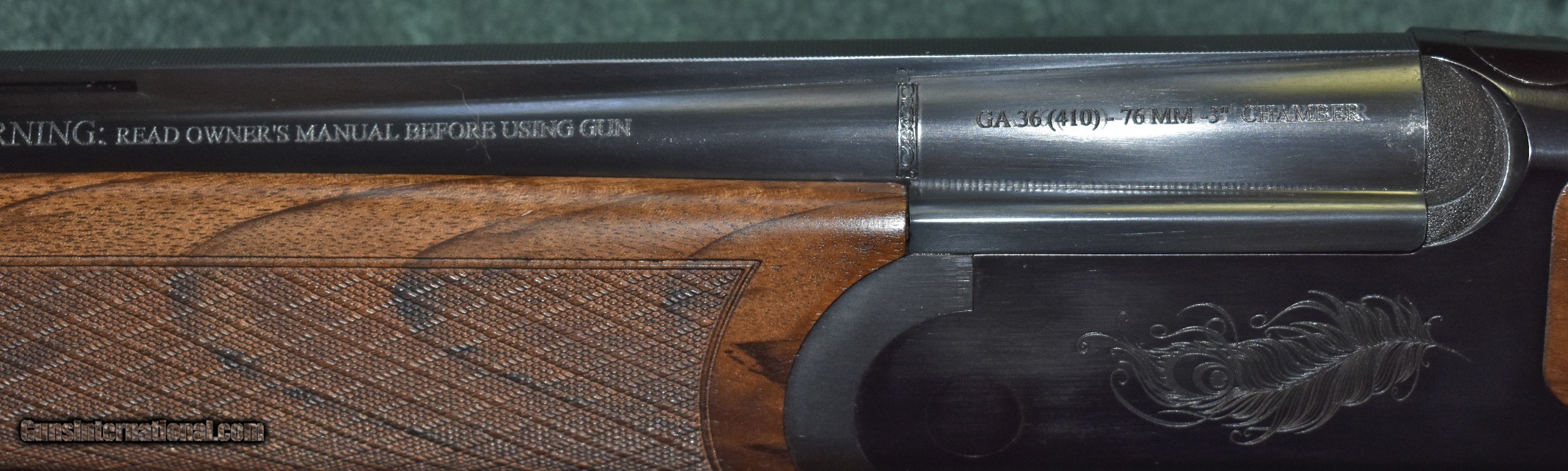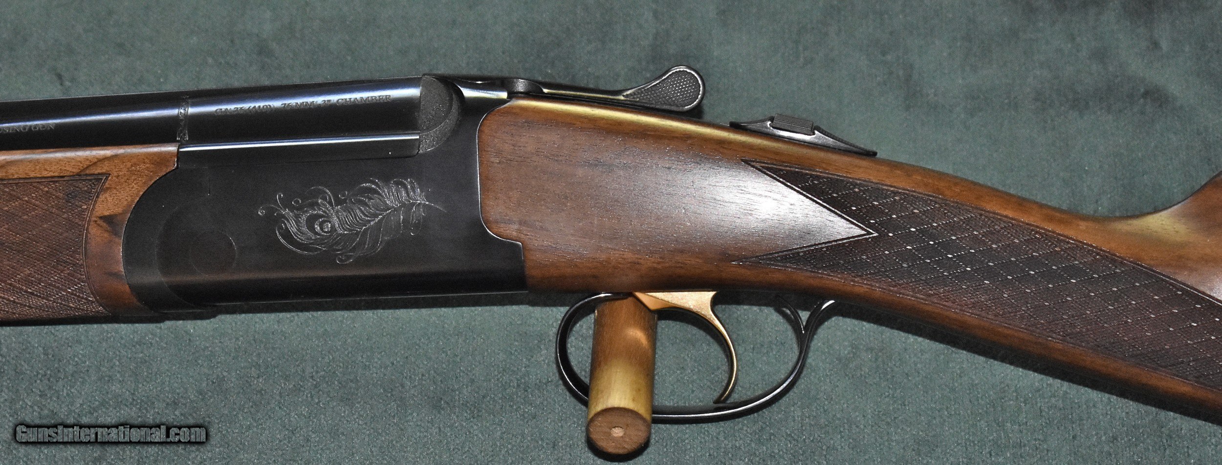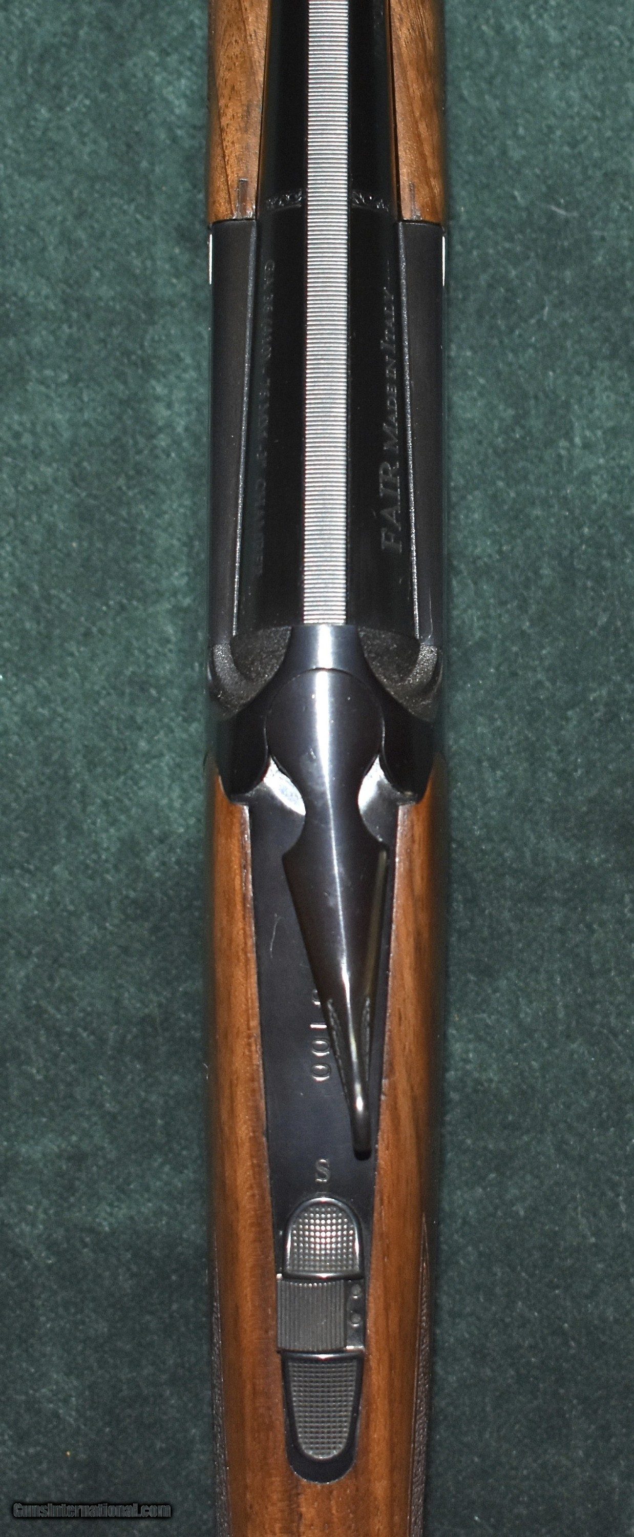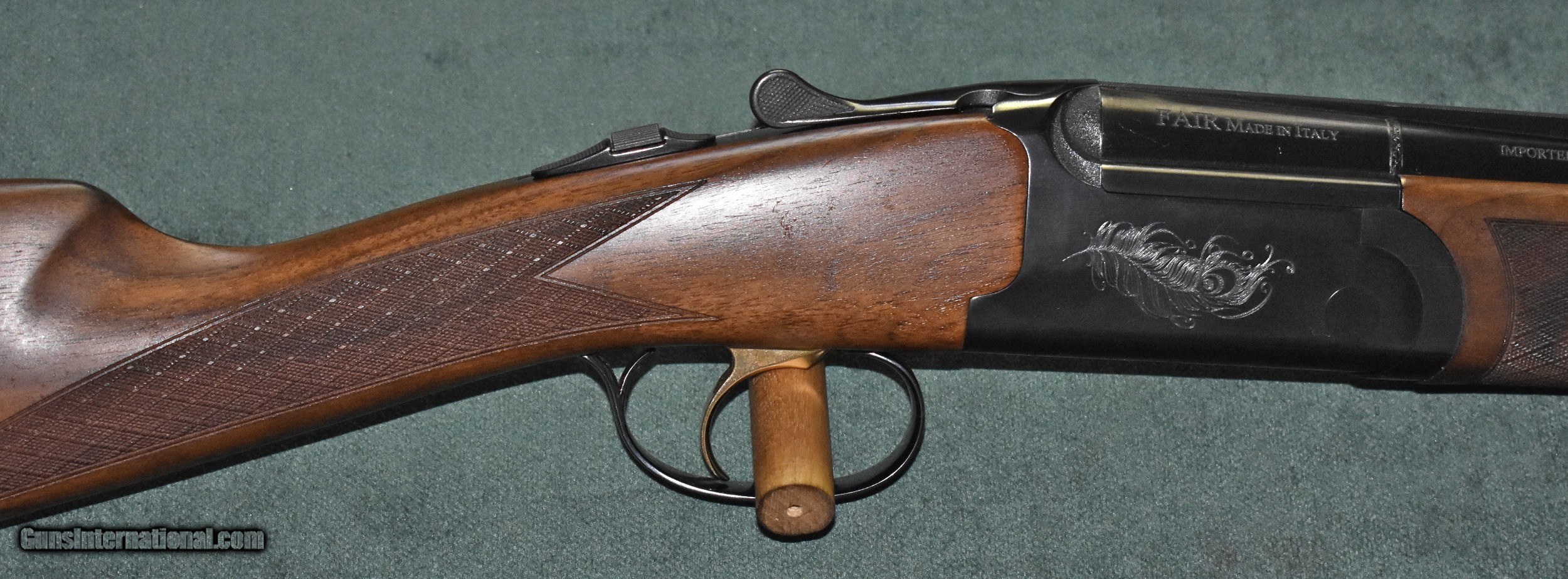 Description: 410 gauge over under ejector by Parvona Arms of Bresica,Italy.Built by the FAIR group in Brescia,this gun has 26" vent rib barrels with interchangable chokes.Other features include a selective single trigger,ejcetors,3: chambers,oil finished wood,abd a factory installed recoil pad.The gun is new and unfired in the makers case with manual and 5 chokes.Also included are 2 factory spacers to fit under the pad if extra length of pull is needed.A great gun for preserve birds,clays,or doves. SOLD Shotgun Gauge: .410 Gauge Manufacturer: FAIR Pavona Serial Number: 275100 Barrel Length: 26 Chambers: 3 Ejectors: yes Condition: new in box Metal Condition: new Wood Condition: new Bore Condition: new Action: over under Triggers: single selective Stock Dimensions: 135/8"x11/2"x21/8 Butt Pad: factory recoil pad Rib: ventilated Weight: 6-0 Case: factory case |
