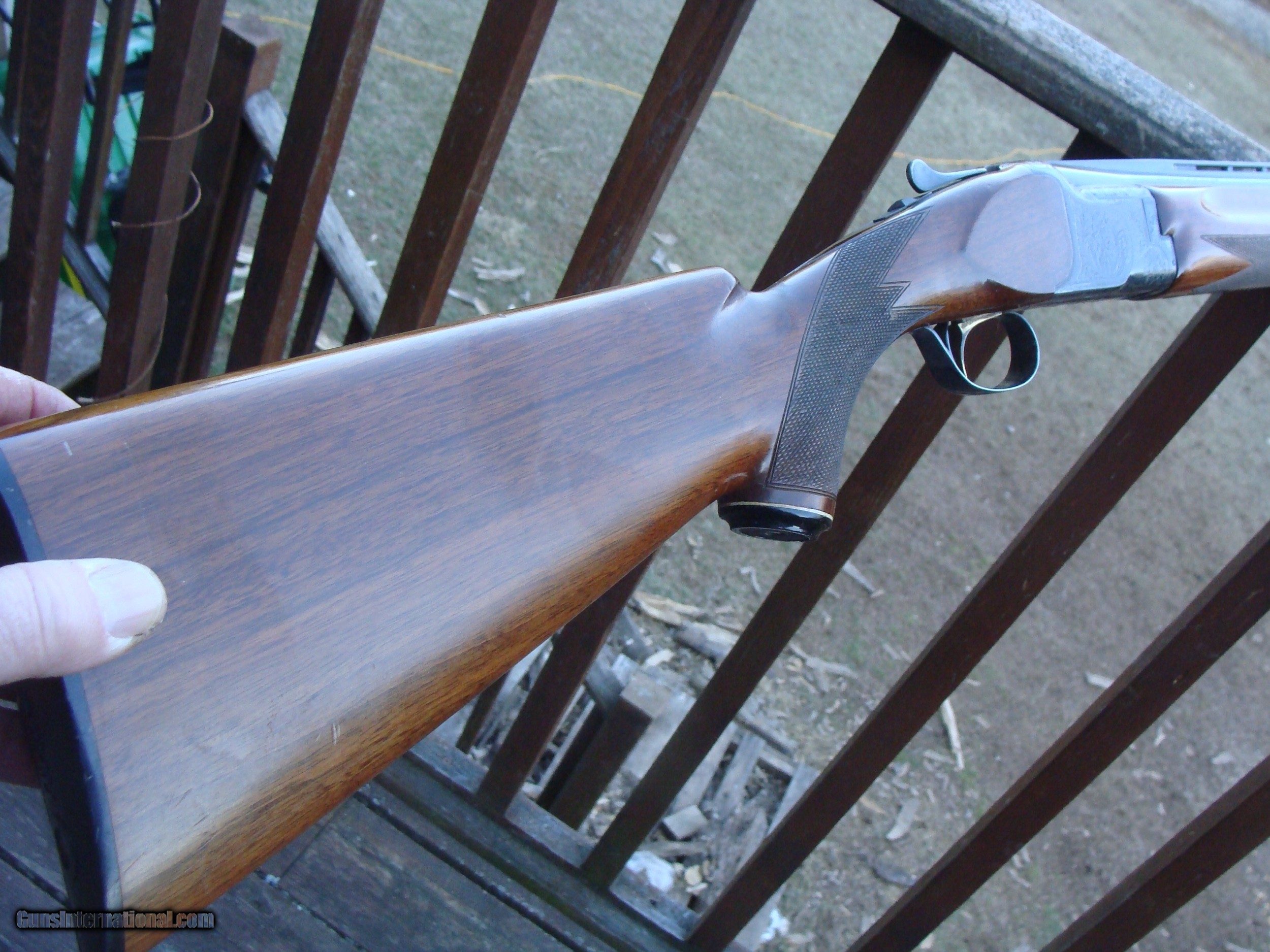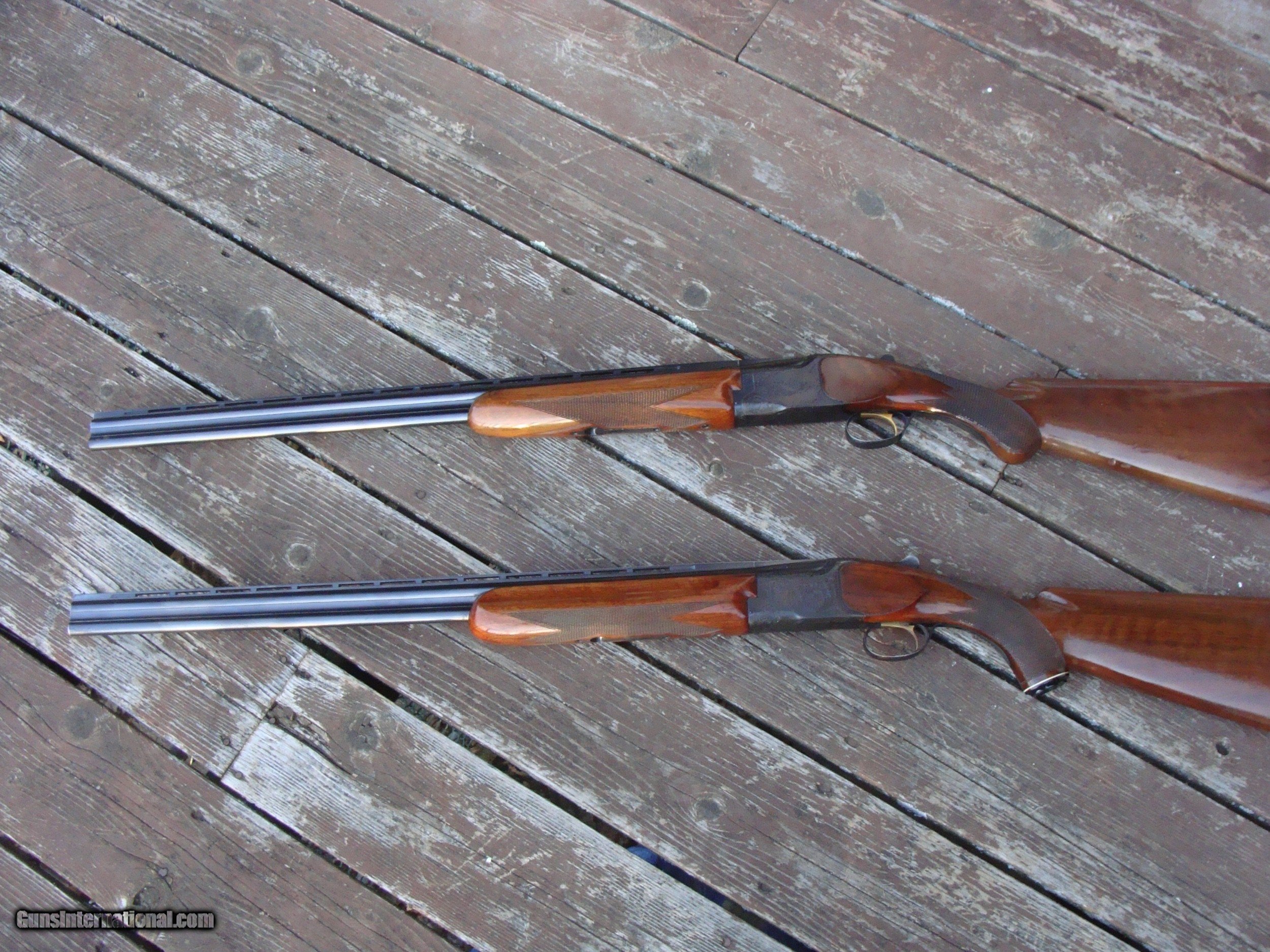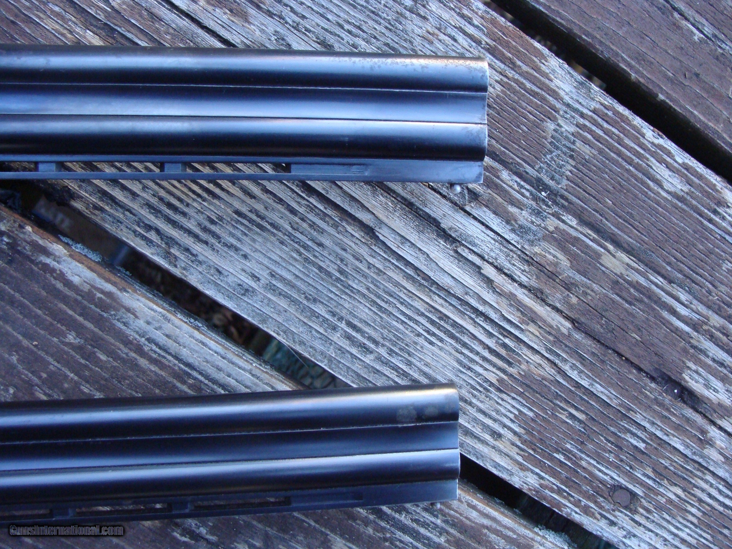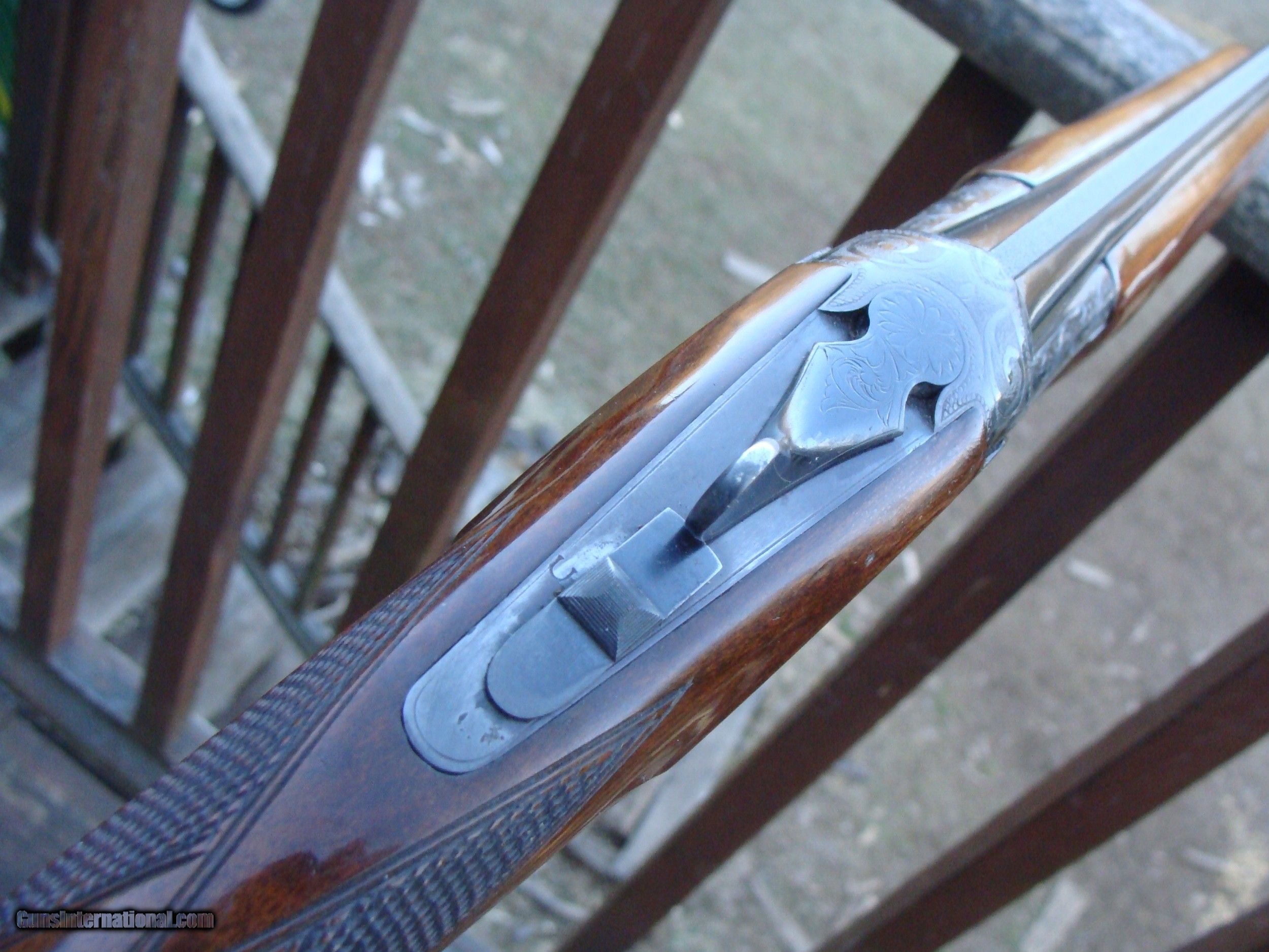Description: We are a small gun business in the Northeast. I like these litle guns so much i own 3 of them! Although made in the same plant as almost all of the Browning Over and Unders and the BSS side by sides, they more closely resemble the early Winchester 101's with deep relief engraving, well executed checkering and of high quality. They point and handle about exactly like a Belgian Superposed which in 410 would cost today approx 5k. This gun is being offered for a fraction of that and is approx 1000.00 less than ones exactly like it are being sold for. It was a quail gun and was hunted but well cared for. It has a number of compression marks on the handsom stock set, but few if any have penetrated the finish. There have been no repairs, or damaged and there are no non factory modifications. There is some light frosting at the muzzle end of the lower barrels and other small imperfections associted with a field gun that has been used. This area is pictured in the last photo....it is the set of barrels at the top of the picture (gun is upside down such that the barrel at the top of the pic is the underside of the lower barrel) As a classic field gun it is choked (markings indicate) M&F chokes (not common in 410's) Vented rib barrels are 26" and stock LOP is 14 approx. Blue is 85 to 90%. It locks up very tightly and the lever is centered. It has a single selective trigger and H safety exactly like the Superposed and Citori's. This would be a magnificent little gun to hunt over pointing dogs with and on a skeet field. NOTE: WE WILL BE SELLING A 2D GUN SIMILAR SHORTLY..A FEW PICS SHOWING BOTH ARE INCLUDED BUT ONLY THE GUN DEPICTED HERE IS FOR SALE AT THIS MOMENT. IT IS EASY TO IDENTIFY THE DIFFERENCE AS THE FOREARMS ARE DIFFERENT AS IS THE ENGRAVING. THE 2D GUN HAS A ROUND KNOB WE ARE AN FFL 01 IN THE NORTHEAST WHERE MANY FINE US MADE GUNS WERE PRODUCED AND WE OFTEN GET SOME FAIRLY HARD TO FIND UNIQUE AND HARDLY USED GUNS. WE HAVE OVER 1500 SALES ON ALL SITES WITH AN A+ RATING ON ALL (WE ALSO KEEP AN INVENTORY OF OLDER PERIOD CORRECT SCOPES; CALL WITH NEEDS) WE MOSTLY PICK VERY CLEAN GUNS, PRICE THEM FAIRLY AND WORK WITH MODEST MARGINS WE ARE HAPPY TO TAKE CONSIGNMENT GUNS AND COLLECTIONS OR WILL BUY YOURS OUTRIGHT. WE SOMETIMES ARE EMPLOYED FOR ESTATE PURPOSES AND VALUATIONS. CT RESIDENTS MUST CONTACT US TO UNDERSTAND OUR IN STATE TRANSFER POLICIES. WE CAN TAKE A CREDIT CARD HOWEVER THERE IS A 3% ADD ON BASED ON THE TOTAL FOR USE OF A CARD. IT IS ALWAYS THE BUYERS RESPONSIBILITY TO GET US A COPY OF YOUR RECEIVING FFL'S LIC AND WE REQUIRE A COPY OF YOUR PHOTO ID BEFORE THE GUN SHIPS YOU MUST CALL YOUR FFL.WE DO NOT CALL FOR YOU. LAYAWAY'S OK WITH MOST OF OUR GUNS (INQUIRE) SHIPPING IS $ 45.00 TO MOST LOCATIONS SHIPPED PRIOIRITY SOLD |