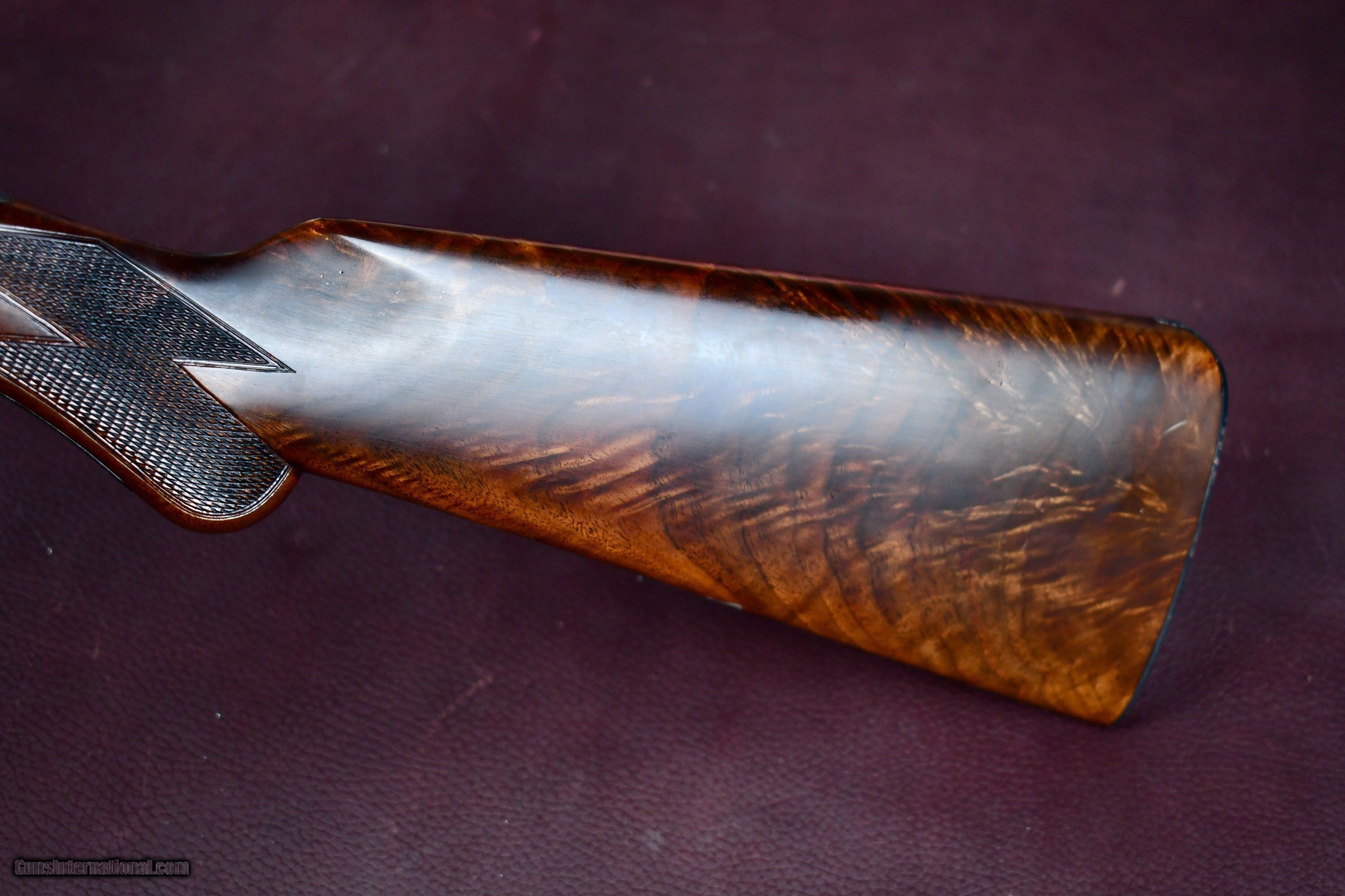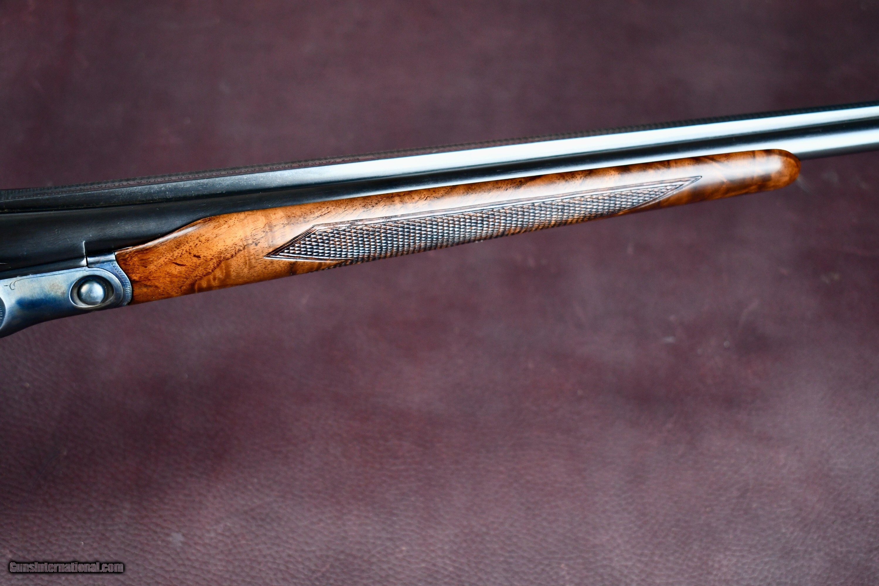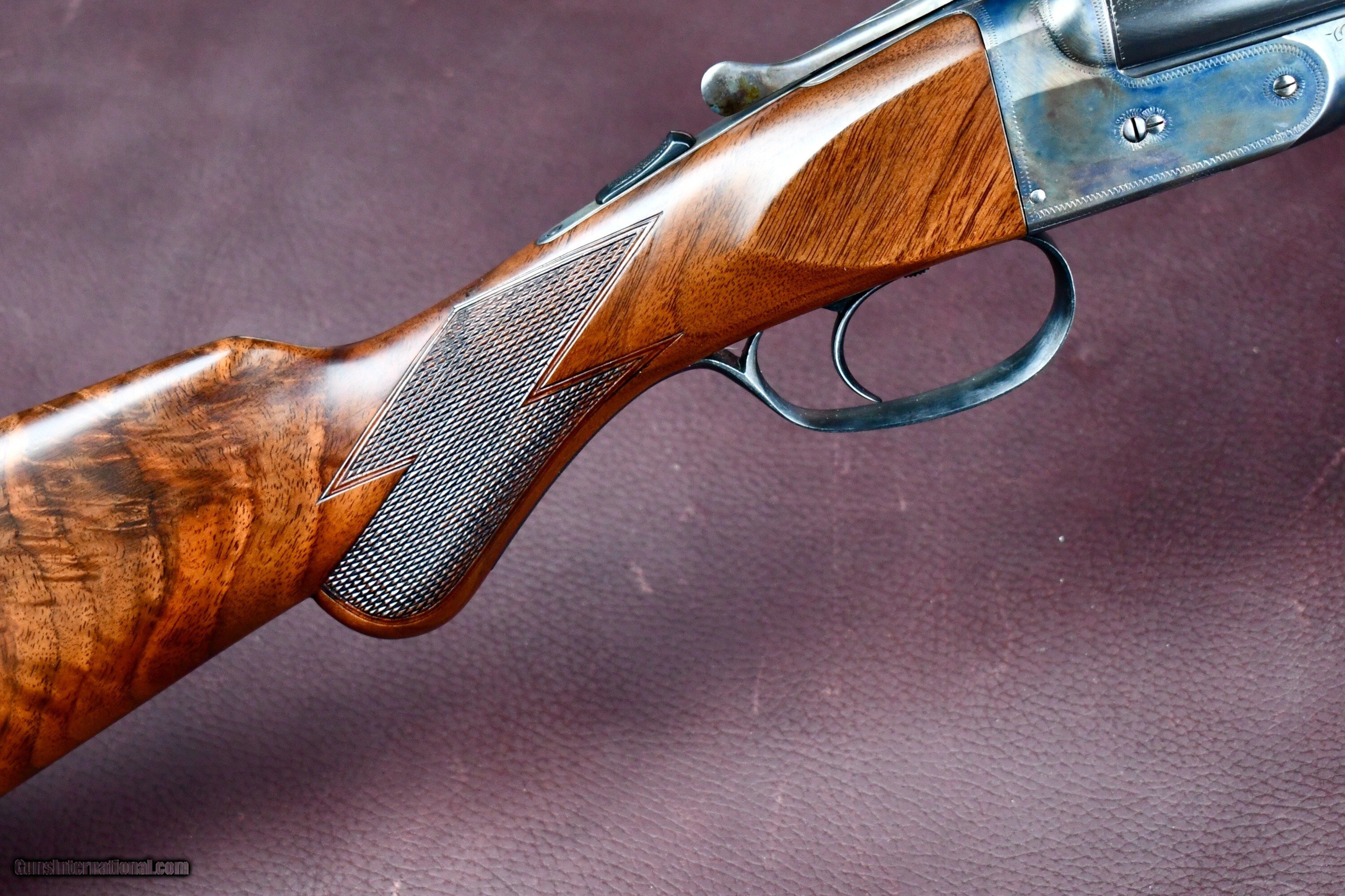 Description: FACTORY ORDERED PARKER BROTHERS 410 WITH ALL SKEET OPTIONS -- PARKER SKEET GUNS WERE FACTORY SUPPLIED WITH REVERSE CHOKES ( TIGHT CHOKE IN RIGHT BARREL) THIS 410 WAS ORDERED WITH IM IN RIGHT AND MOD IN LEFT FOR TIGHTER PATTERNS -- 26" MOD/IM -- SINGLE TRIGGER -- EJECTORS -- FACTORY BALL GRIP (RARE IN SKEET CONFIGURATION) -- SLIM SKEET BEAVERTAIL FOREND -- SKELETAL BUTT -- SINGLE BRASS FRONT BEAD -- SOLID MATTED RIB -- THIS 410 NUMBERS IN THE SERIALIZATION BOOK AS A #14 OPTION GUN WITH BALL GRIP AS ADVERTIZED -- A BEAUTIFUL FACTORY PARKER SKEET 410 THAT RETAINS ALL OF ITS FACTORY CORRECT/ REAPPLIED FINISHES -- AN EXTREMELY RARE ALL OPTION PARKER 410 Manufacturer: PARKER BROTHERS Model: VHE SKEET Serial Number: 236576 Barrel Length: 26 Bore Info: EXCELLENT Chambers: 3 Ejectors: YES Condition: EXCELLENT AS NEW Metal Condition: EXCELLENT AS NEW Wood Condition: EXCELLENT AS NEW Bore Condition: EXCELLENT Barrel Type: SXS Triggers: SINGLE SELECTIVE Stock: BALL GRIP Stock Comb: 1 1/2 Stock Heel: 2 1/4 Fore End: PETITE BEAVERTAIL (SKEET) Butt Pad: SKELETAL LOP: 14 Rib: SOLID MATT Finish: CASE COLOR / BLUE Weight: 6 LBS Sights: 1 Choke Left: IM Choke Right: MOD Engraving: YES FACTORY V PATTERN Price: $34,950.00 Contact Seller |