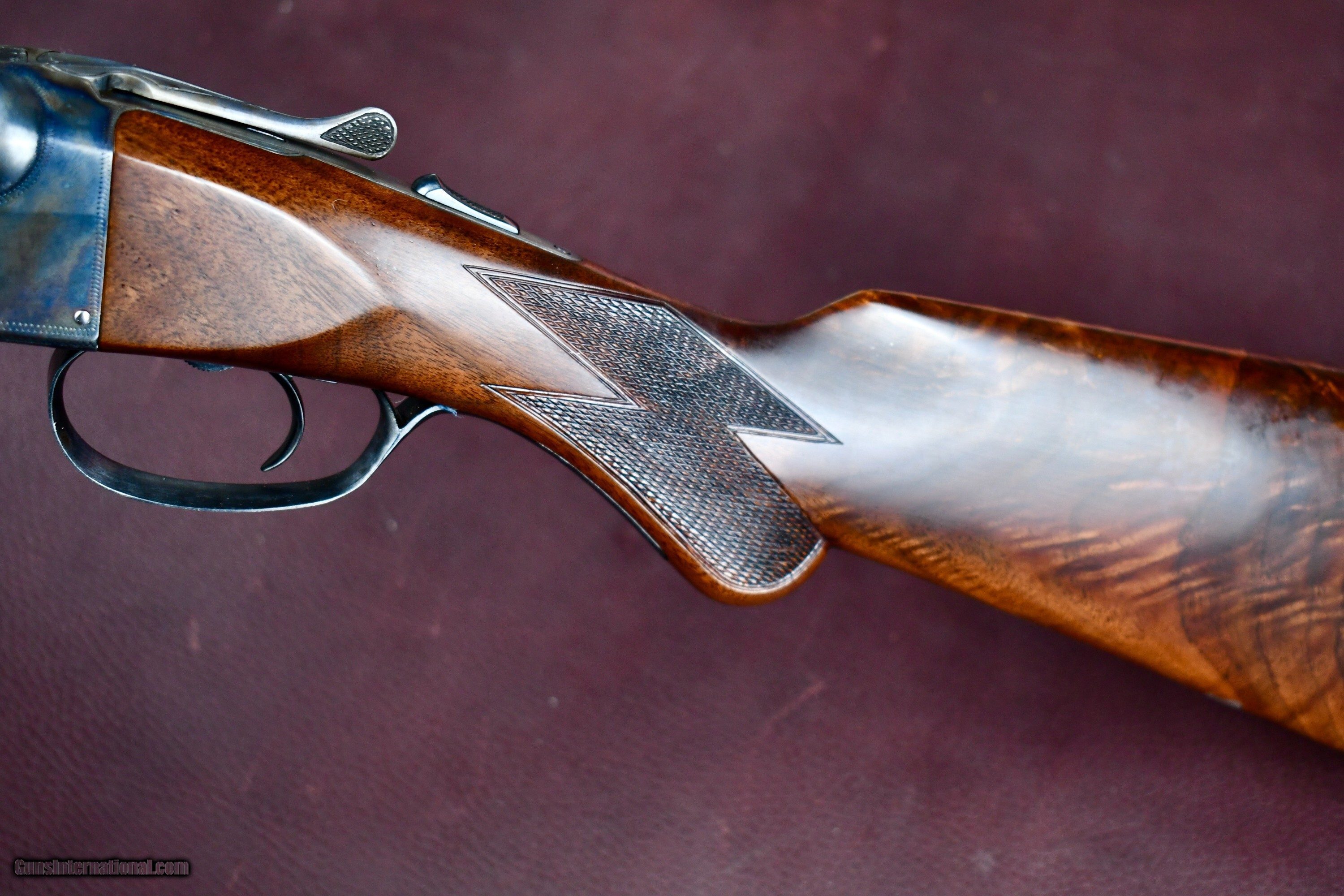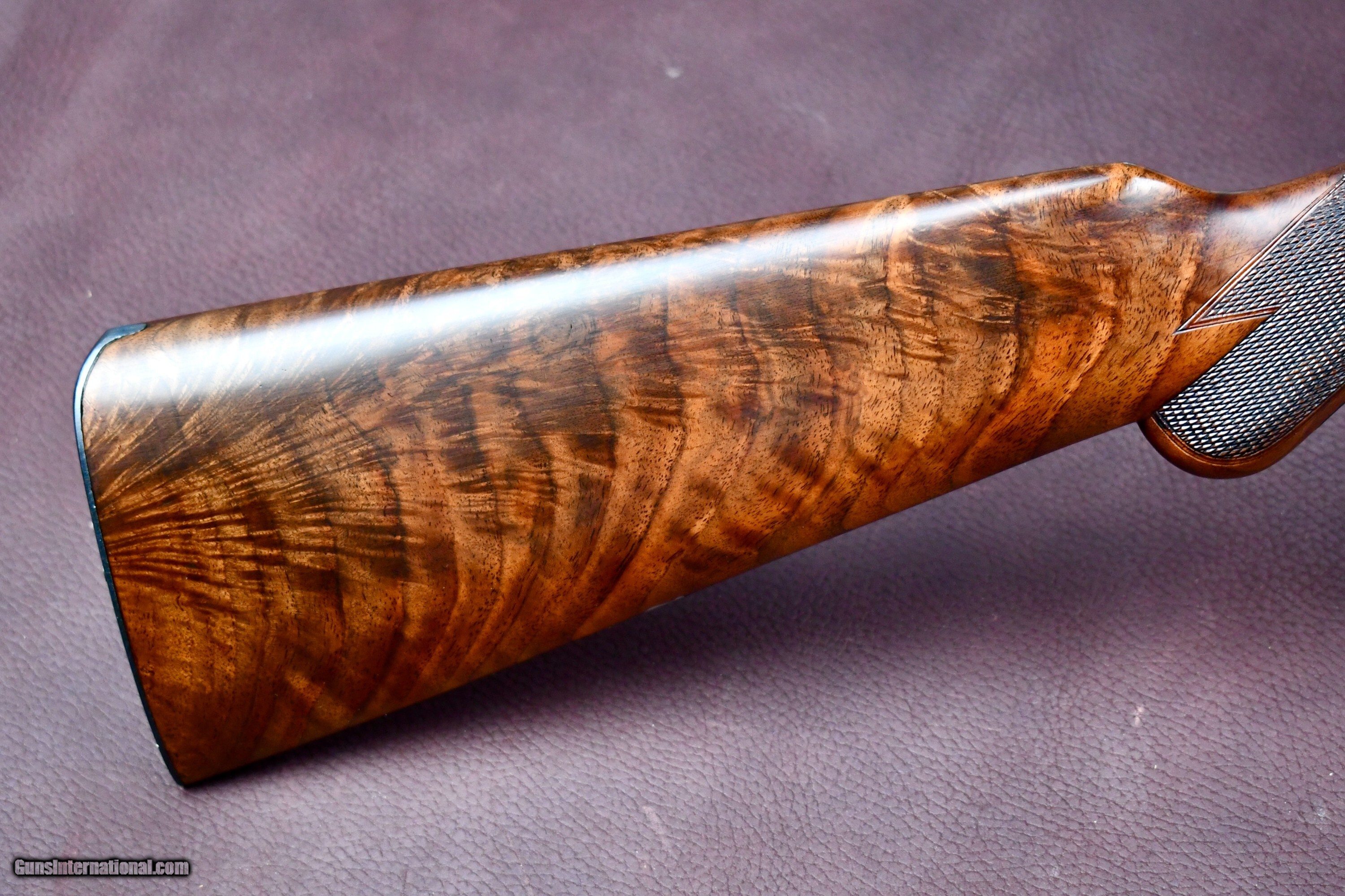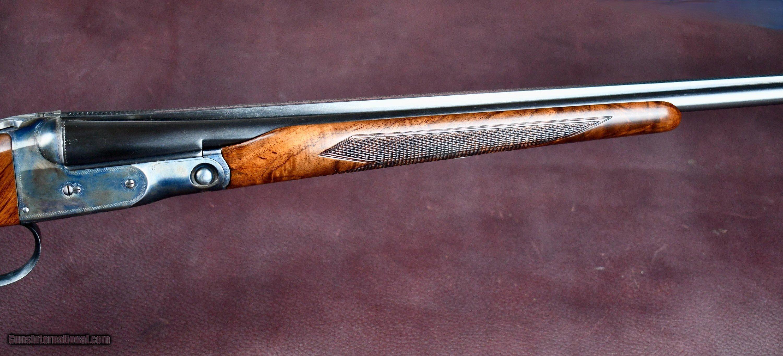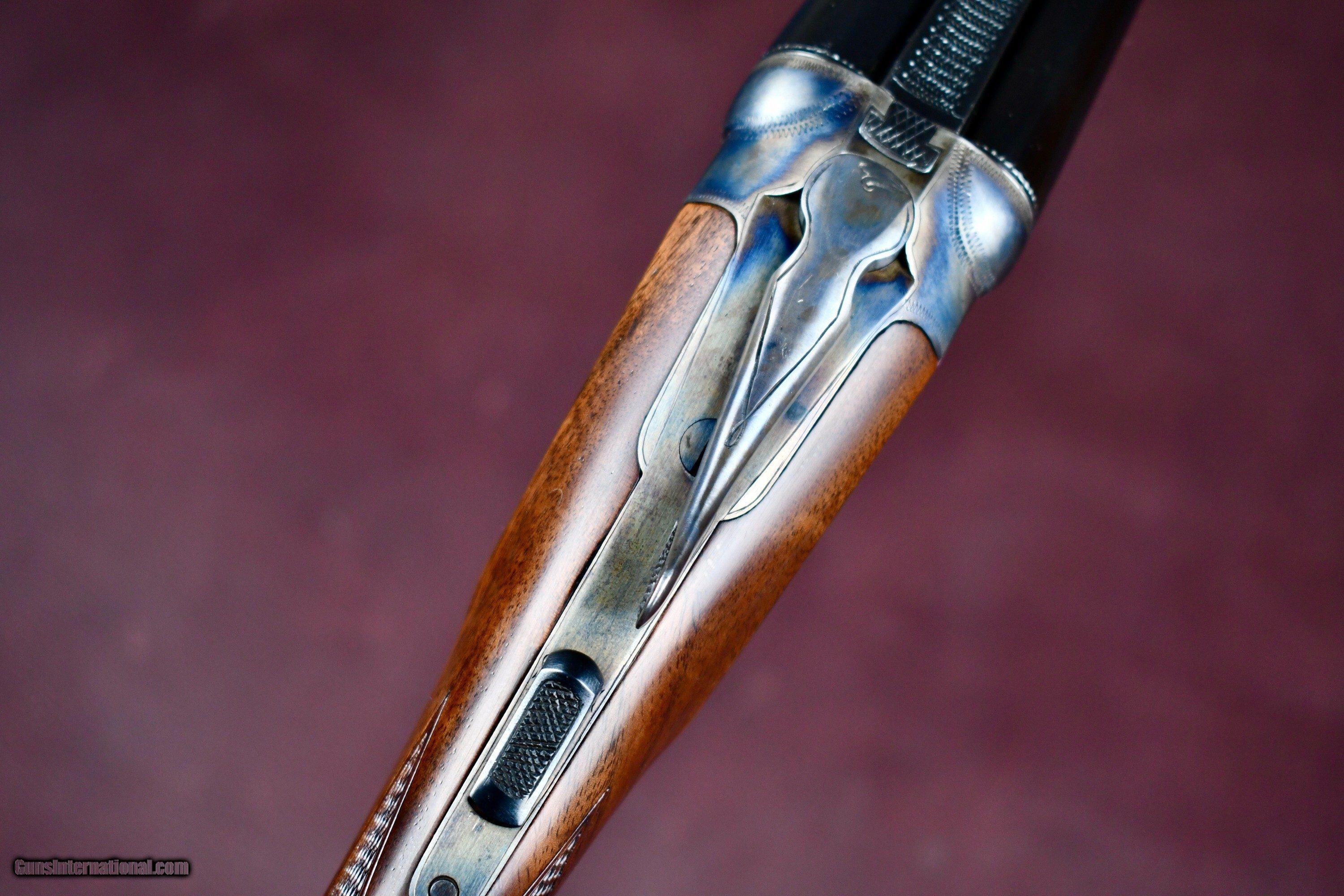 Description: FACTORY ORDERED PARKER BROTHERS 410 WITH ALL SKEET OPTIONS -- PARKER SKEET GUNS WERE FACTORY SUPPLIED WITH REVERSE CHOKES ( TIGHT CHOKE IN RIGHT BARREL) THIS 410 WAS ORDERED WITH IM IN RIGHT AND MOD IN LEFT FOR TIGHTER PATTERNS -- 26" MOD/IM -- SINGLE TRIGGER -- EJECTORS -- FACTORY BALL GRIP (RARE IN SKEET CONFIGURATION) -- SLIM SKEET BEAVERTAIL FOREND -- SKELETAL BUTT -- SINGLE BRASS FRONT BEAD -- SOLID MATTED RIB -- THIS 410 NUMBERS IN THE SERIALIZATION BOOK AS A #14 OPTION GUN WITH BALL GRIP AS ADVERTIZED -- A BEAUTIFUL FACTORY PARKER SKEET 410 THAT RETAINS ALL OF ITS FACTORY CORRECT/ REAPPLIED FINISHES -- AN EXTREMELY RARE ALL OPTION PARKER 410 Manufacturer: PARKER BROTHERS Model: VHE SKEET Serial Number: 236576 Barrel Length: 26 Bore Info: EXCELLENT Chambers: 3 Ejectors: YES Condition: EXCELLENT AS NEW Metal Condition: EXCELLENT AS NEW Wood Condition: EXCELLENT AS NEW Bore Condition: EXCELLENT Barrel Type: SXS Triggers: SINGLE SELECTIVE Stock: BALL GRIP Stock Comb: 1 1/2 Stock Heel: 2 1/4 Fore End: PETITE BEAVERTAIL (SKEET) Butt Pad: SKELETAL LOP: 14 Rib: SOLID MATT Finish: CASE COLOR / BLUE Weight: 6 LBS Sights: 1 Choke Left: IM Choke Right: MOD Engraving: YES FACTORY V PATTERN Price: $34,950.00 Contact Seller |