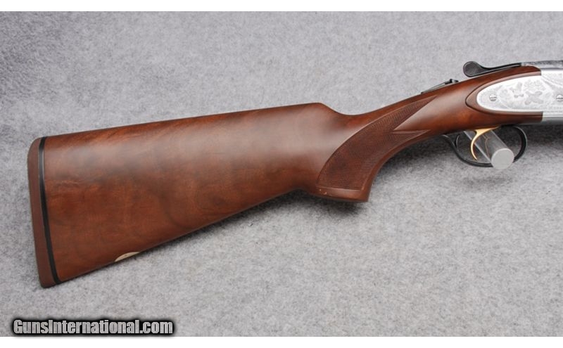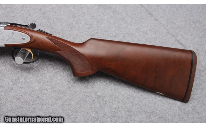 Description: This is a Beretta 687 Over/Under shotgun in .410. It is the "Ducks Unlimited Collectors" Series 1991-92 . The coin finished engraved action is in Excellent condition as are the 28 inch vent rib barrels. A total of 3 interchangeable choke tubes are included. The Excellent checkered walnut stock shows a few handling marks on the pistol grip. This shotgun has seen very little use and comes in the Ducks Unlimited deluxe case. SOLD Caliber Info: .410 Bore Chambers: 3 Metal Condition: Excellent Wood Condition: Excellent with light handling marks Bore Condition: Bright and Shiny Barrels: 28" Vent Rib Triggers: Single Stock: Checkered Walnut Stock Dimensions: LOP: 14 1/2", DAC: 1 1/8", DAH: 1 3/4 Fore End: Checkered Walnut Butt Pad: Leather Covered Rubber Weight: 6 1/2 lbs Sights: Silver Front Bead Chokes: Interchangeable chokes. 3 tubes included Extras: Ducks Unlimited Deluxe case Item Location: Reno, NV |