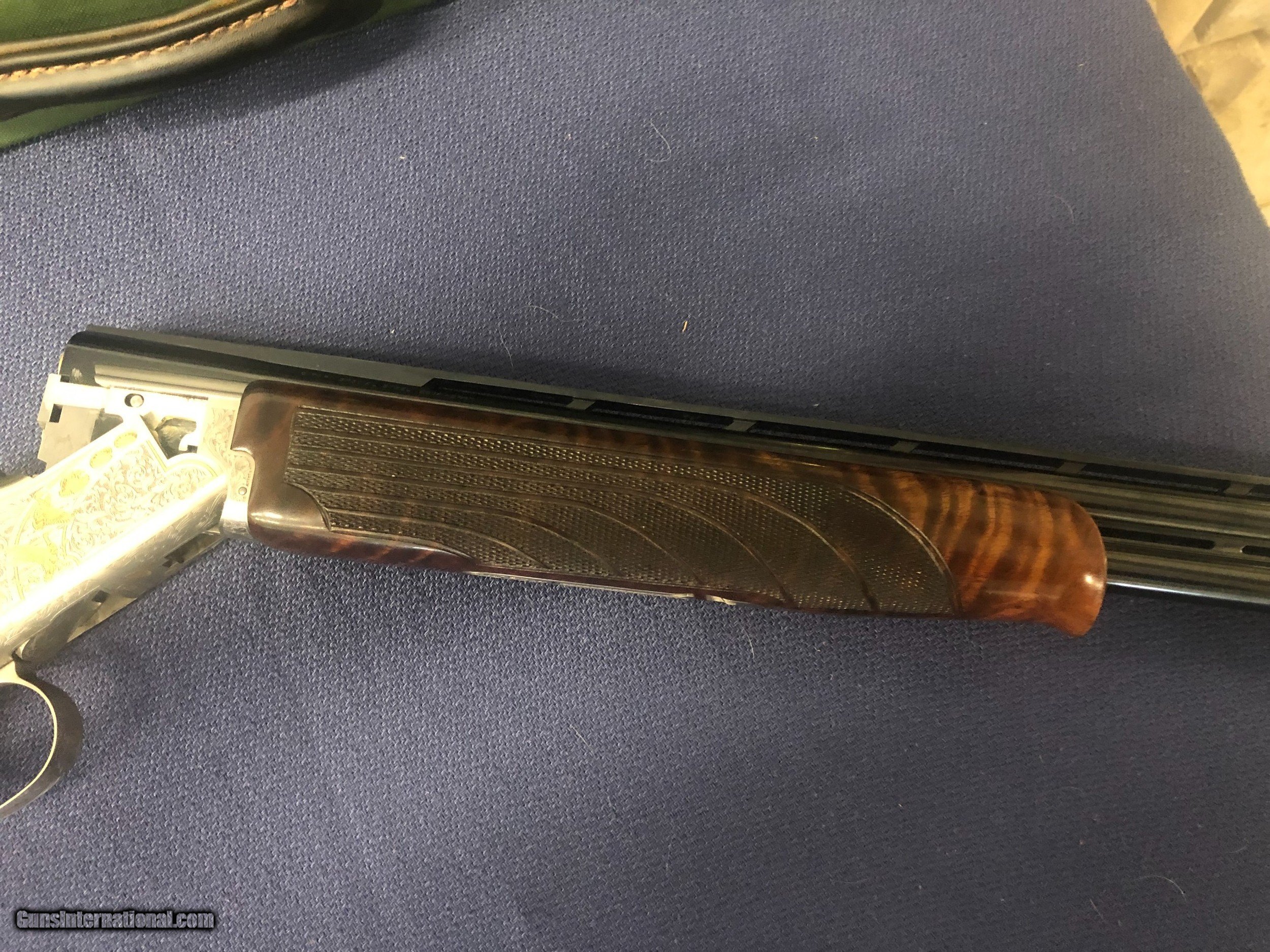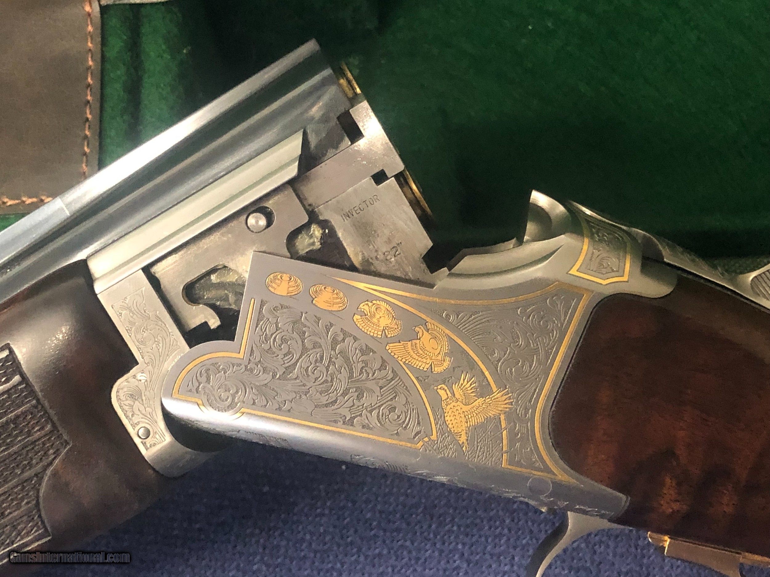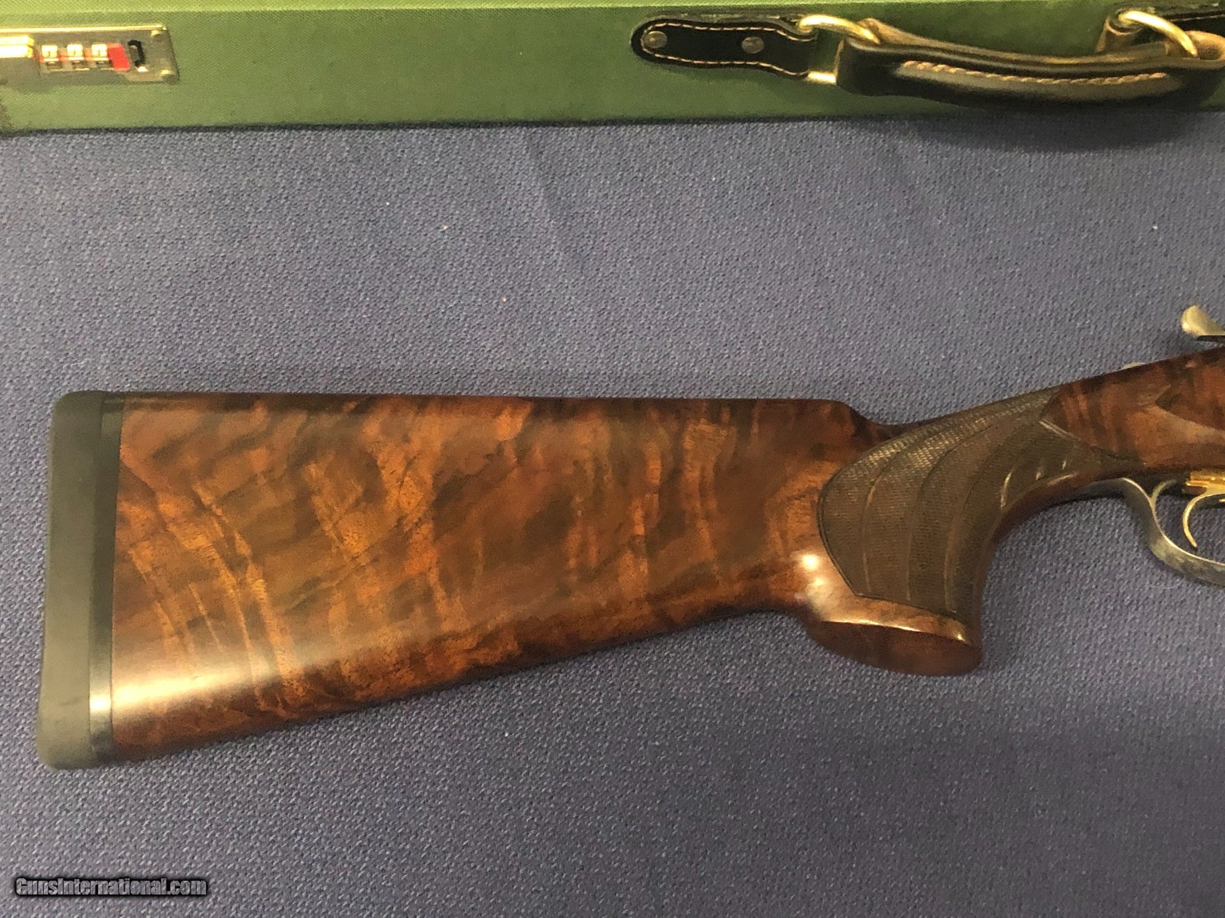 Description: Browning Citori 625 Golden Clays .410 bore SOLD - Thank you, Carl!! Special Limited Manufacturing Run by Browning Production ended in 2014 I am the original owner Bought from Cove Creek Outfitters in PA Wonderful target grade shotgun! Gorgeous heavy grain dark walnut wood Schnabel fore end Browning Sporting Clays grade engraving and golden inlays Browning factory fitted case – green canvas and brown leather trim Case locks have never been set – they still have red safety pins in them 32” barrels Center bead and lite pipe front sight Diana Grade Invector extended chokes Little or no handling marks in wood – anything there is VERY light! Barrel blue is deep and perfect – no rust or scratches Manufactured in 2011 Single, selective inertia trigger LOP 14 ¾” DAC 1 ¾” DAH 2 ¼” All but new condition!! $5,250 plus shipping and insurance SOLD Shotgun Gauge: .410 Gauge Manufacturer: Browning Model: Citori 625 Golden Clays Barrel Length: 32 Chambers: 2 3/4 Ejectors: yes Condition: Outstanding Metal Condition: Outstanding Wood Condition: Outstanding Bore Condition: Bright and Shiney Barrel Type: over/under Triggers: single selective Stock: pistol grip with right palm swell Stock Cast: none Fore End: schnabel Butt Pad: yes LOP: 14 3/4 Manufacture Date: 2011 Chokes: invector Engraving: Deep relief Case: Browning factory case included Item Location: Iowa |