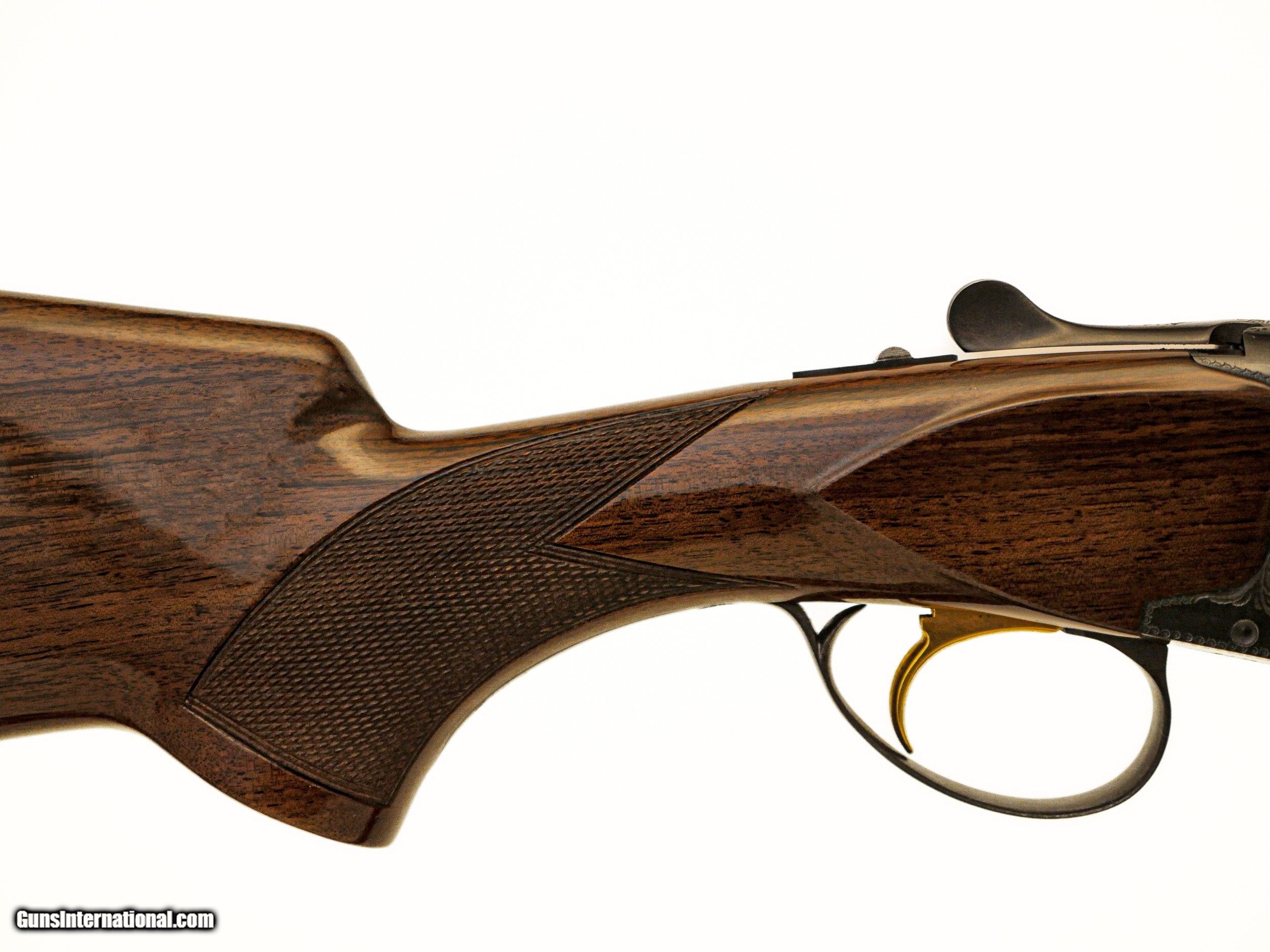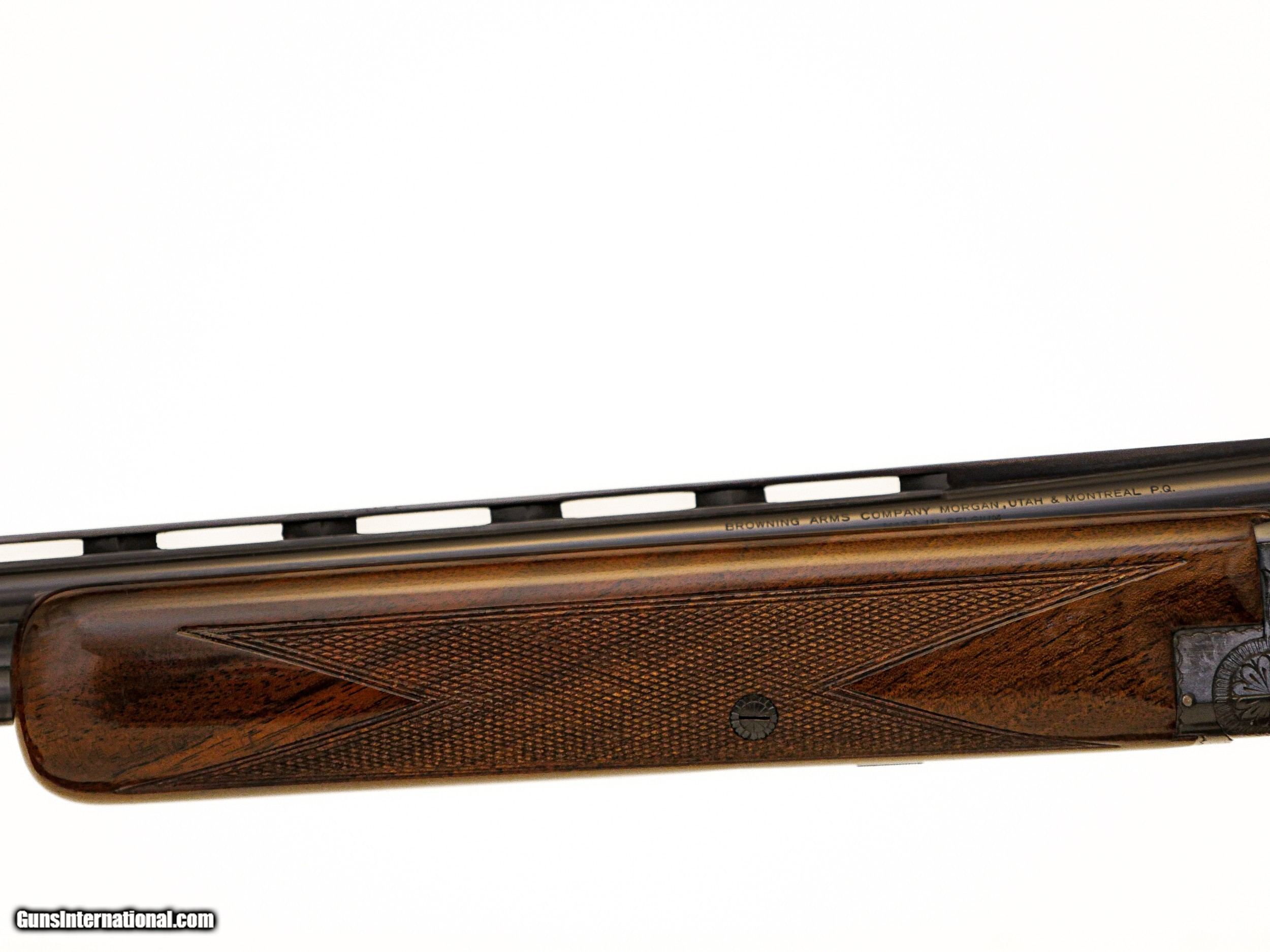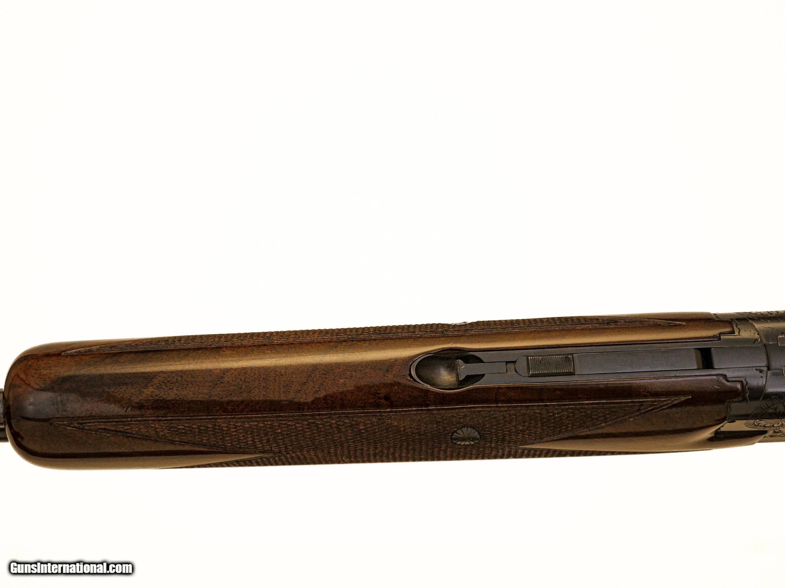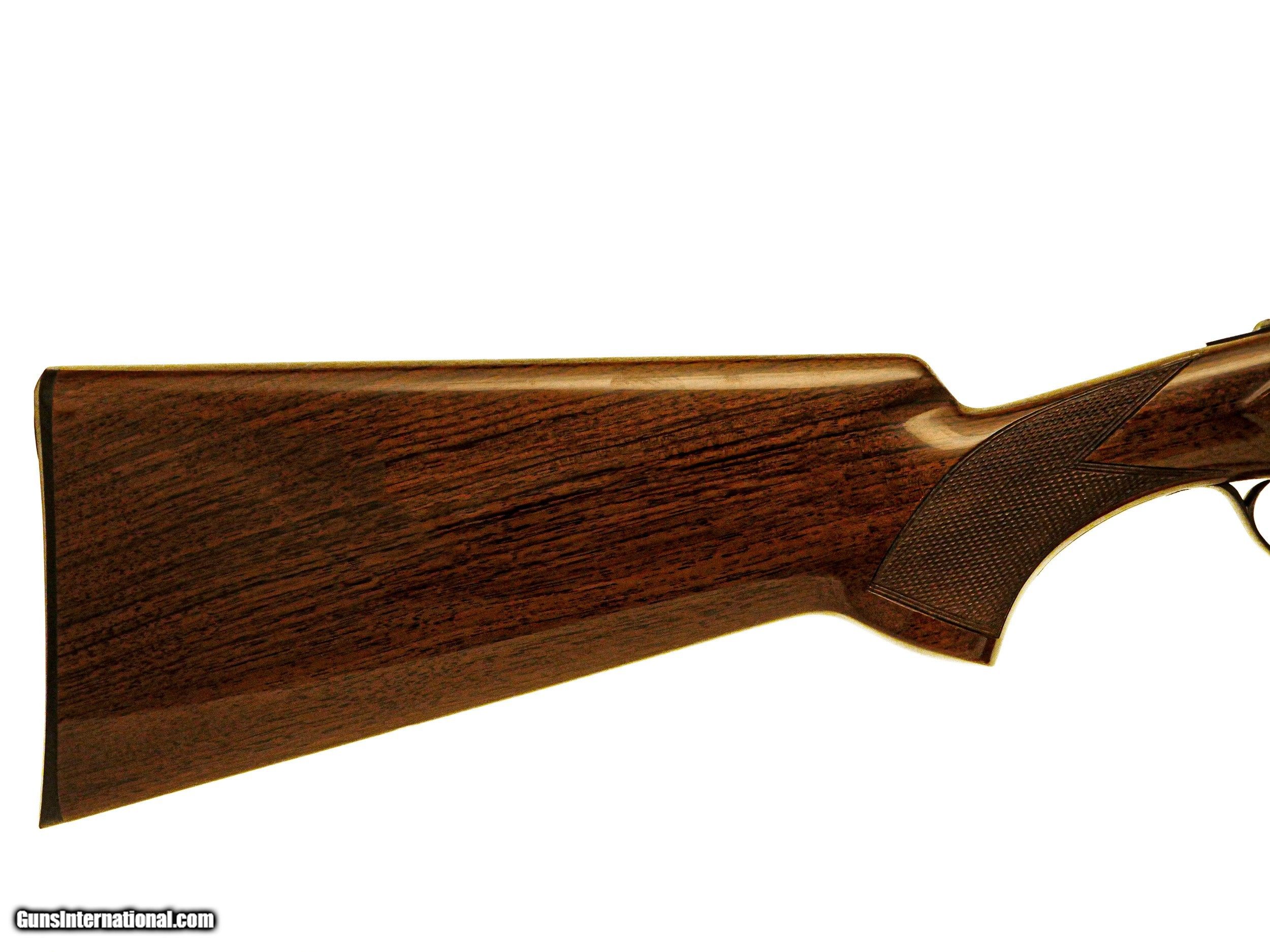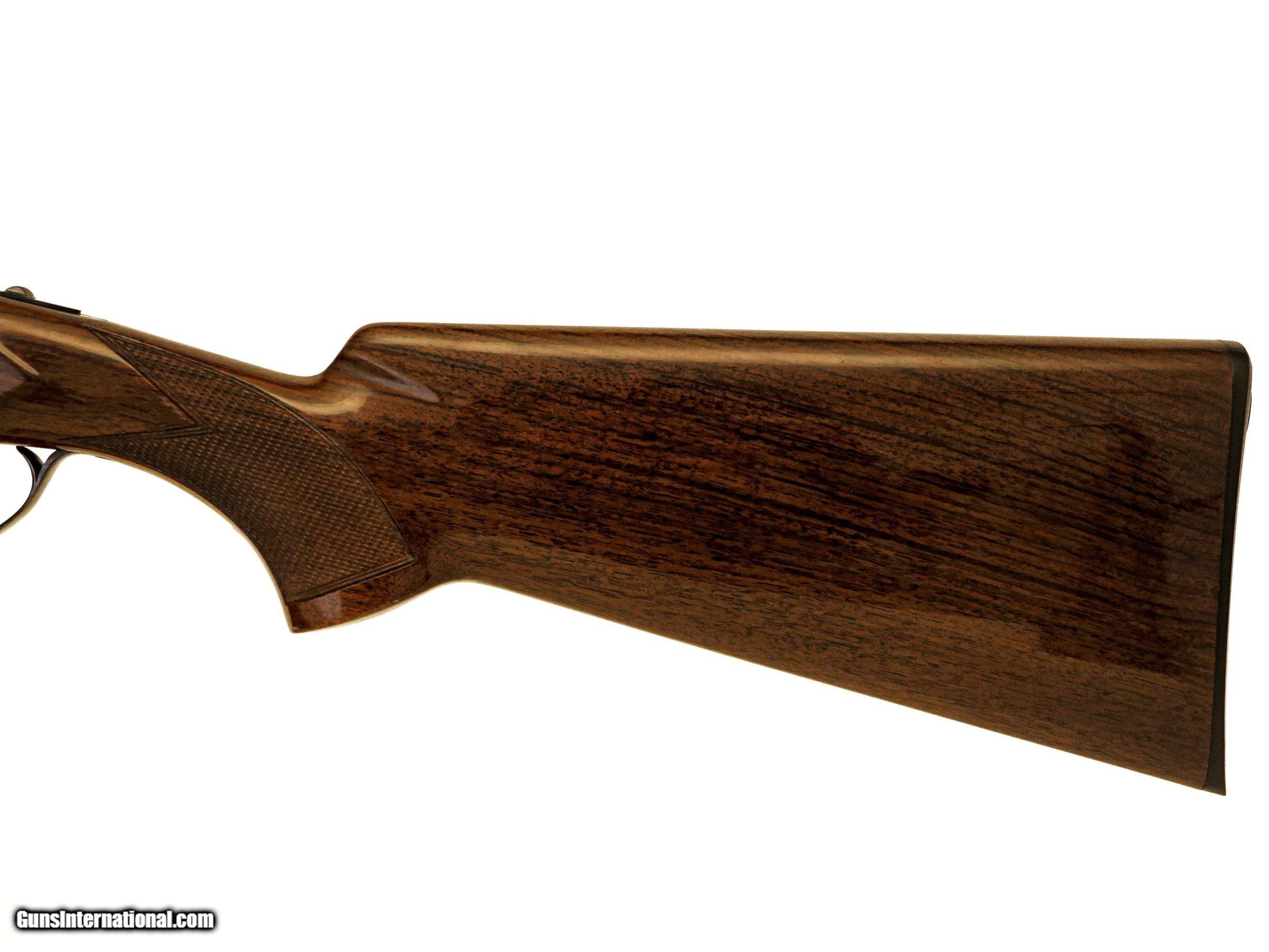 Description: Browning - Grade 1, .410. 26 ½” Barrels Choked IMP CYL/MOD. Square knob long tang, 1971 Belgian manufacture, Browning butt plate, vent rib, automatic ejectors, gold single selective trigger, field forend, 3” chambers, 90% wood with only a few handling marks, perfect checkering and bluing, extremely rare small bore Browning, available for immediate delivery. S & H - $50.00. Inv: 51852 6 lbs. 11 oz. 14 ¼” x 1 ½” x 2 ¼” $6,999.00 Shipping to lower 48: $50.00 SOLD |
