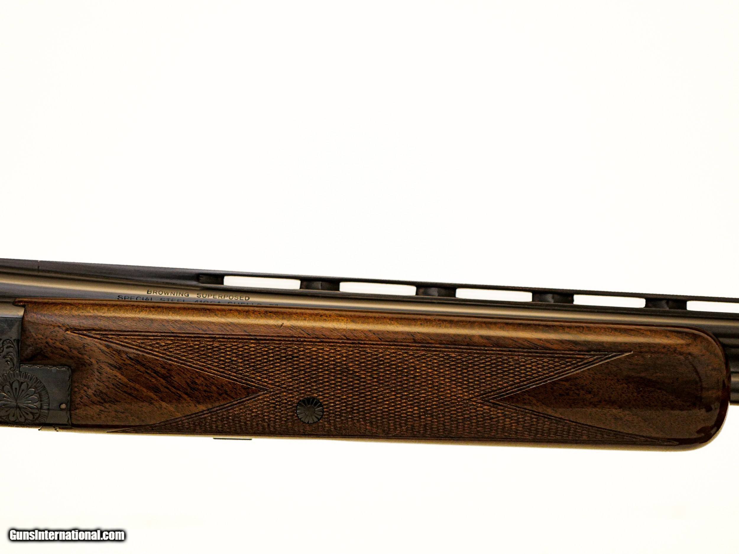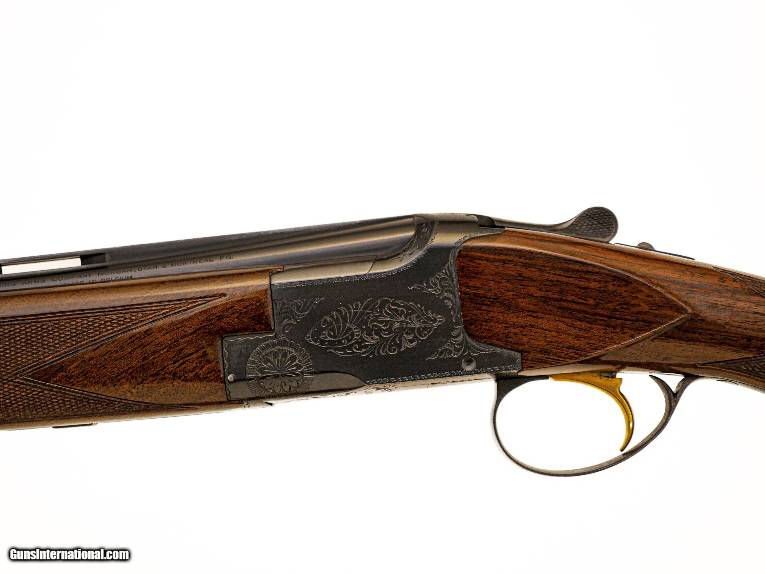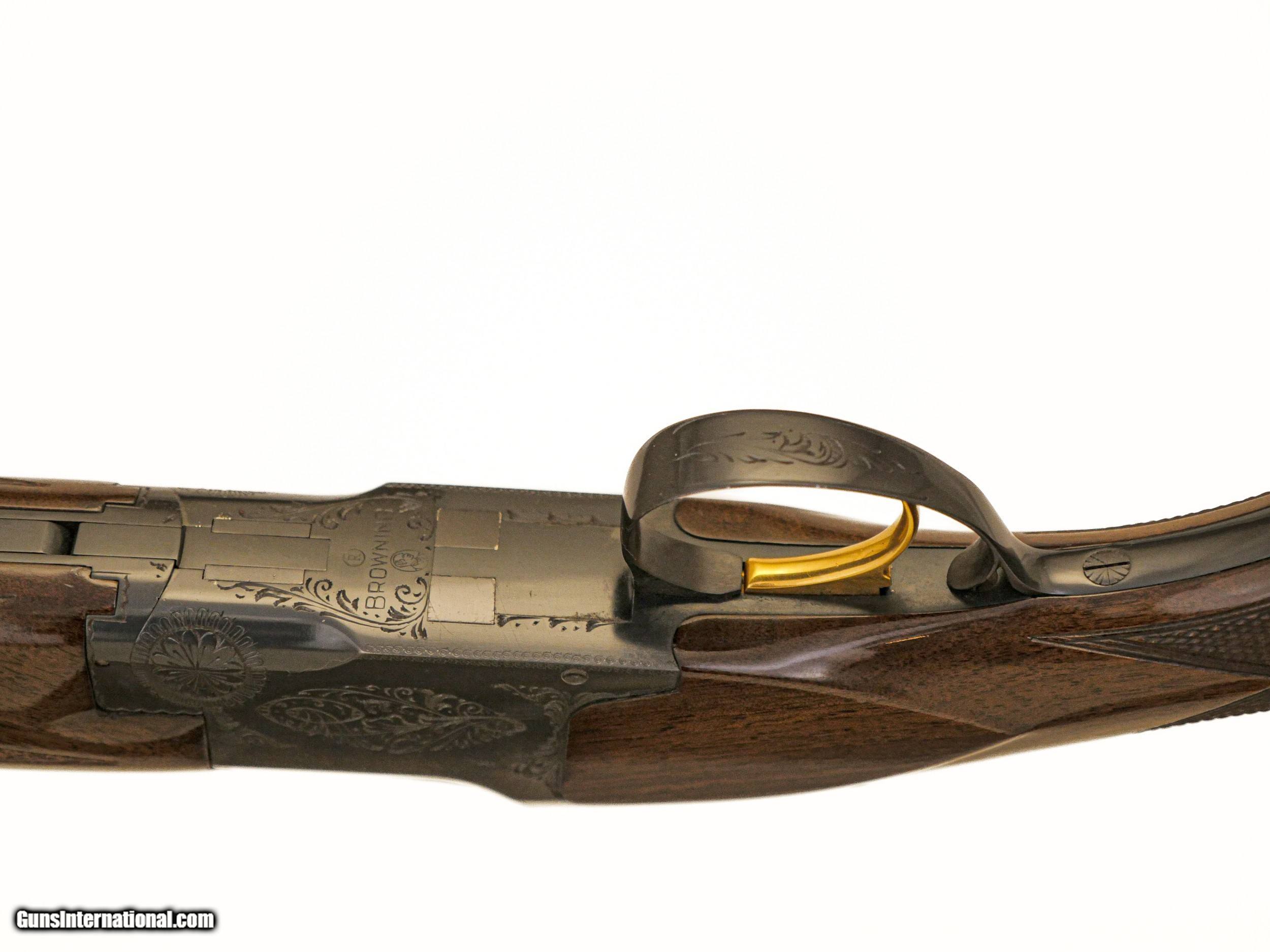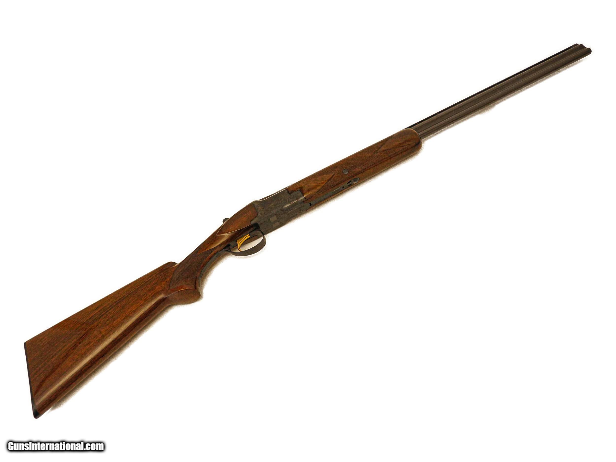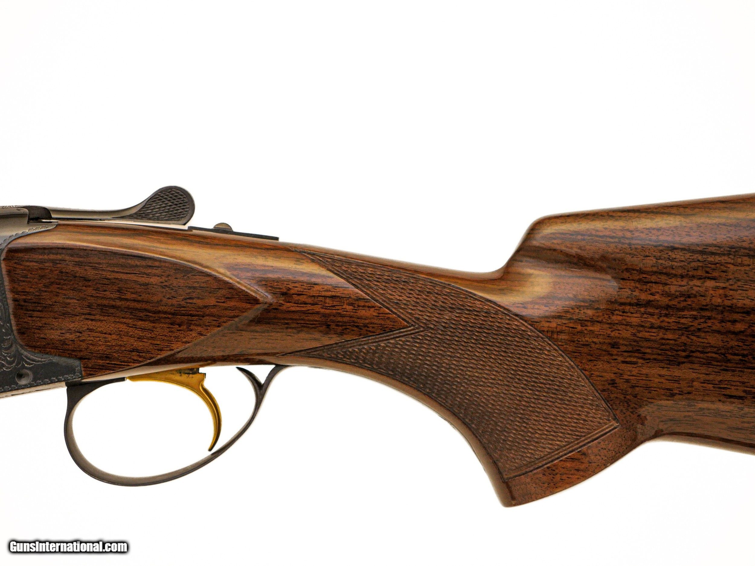 Description: Browning - Grade 1, .410. 26 ½” Barrels Choked IMP CYL/MOD. Square knob long tang, 1971 Belgian manufacture, Browning butt plate, vent rib, automatic ejectors, gold single selective trigger, field forend, 3” chambers, 90% wood with only a few handling marks, perfect checkering and bluing, extremely rare small bore Browning, available for immediate delivery. S & H - $50.00. Inv: 51852 6 lbs. 11 oz. 14 ¼” x 1 ½” x 2 ¼” $6,999.00 Shipping to lower 48: $50.00 SOLD |