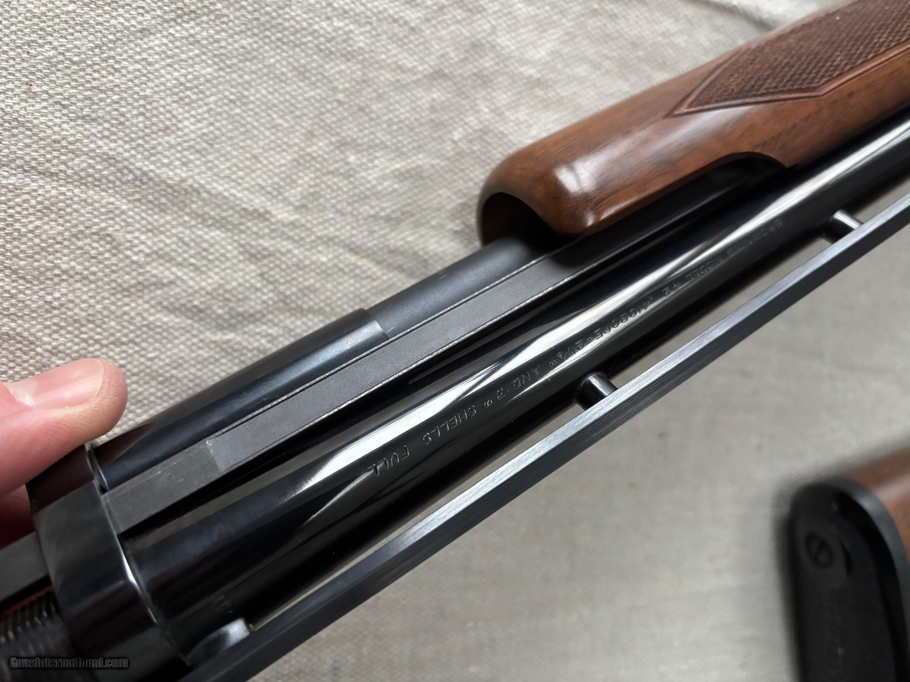 Description: This splendid example of a Browning Model 42 is the most faithful and accurate reproduction of the legendary Winchester Model 42. This particular example is a Grade 1, with a 26" vent rib barrel, fixed full choke, and far better wood than most Grade 1 M42s. I've always preferred the Grade 1 guns from this series, as they more closely resemble a Winchester M42 in a deluxe configuration. If this shotgun had the original box, I would advertise it as NIB. I cannot find a mark or blemish anywhere on the metal or wood of this gun. There are no obvious signs of use. It handles beautifully in the hand, and would be perfect on the skeet field, sporting clays course, or in the field. Given the thick barrel wall, I'd imagine screw-in chokes would be an option for someone, if they desired, but I've always found this choke to be ideal with the .410. Don't miss this opportunity to pick up a discontinued, truly high condition Browning Model 42! Payment via check/ Money Order. Buyers MUST provide tracking information for payment sent, and your FFL must accept shipment from me with a driver's license. Shipping cost $60. Shotgun Gauge: .410 Gauge Manufacturer: Browning Model: Model 42 Serial Number: 04587NZ882 Barrel Length: 26” Chambers: 3” Condition: EXC Metal Condition: EXC Wood Condition: EXC Bore Condition: EXC Action: Pump Stock: Walnut Fore End: Factory Checkered Deluxe Butt Pad: Factory Browning Buttplate Chokes: Full Item Location: CT Price: $1,899.00 Contact Seller |