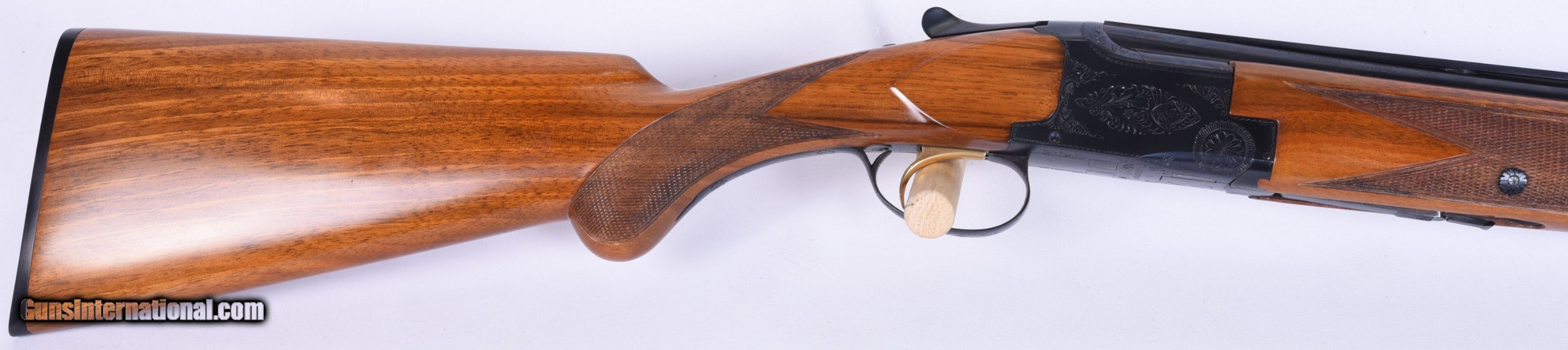 Description: Here is a Browning Superposed 410/20Ga. Grade I. 2 barrel set. Both 28" barrels. SK/SK. Simmons 1/2" vent ribs. 14 3/8" LOP to origonal buttpad. Made in 1963. SOLD Engraving: Yes Item Location: 35209 |