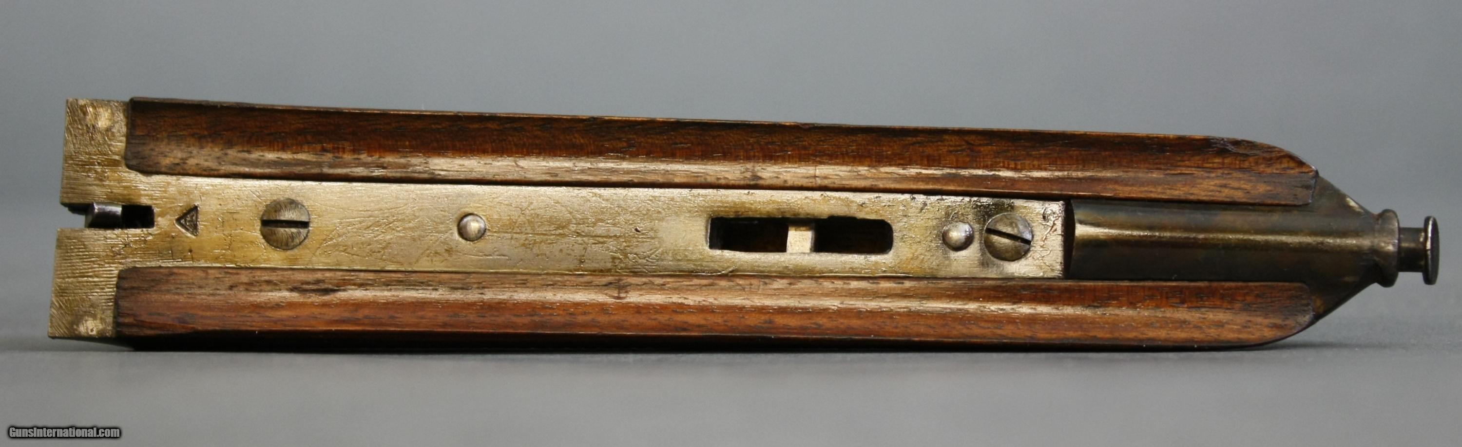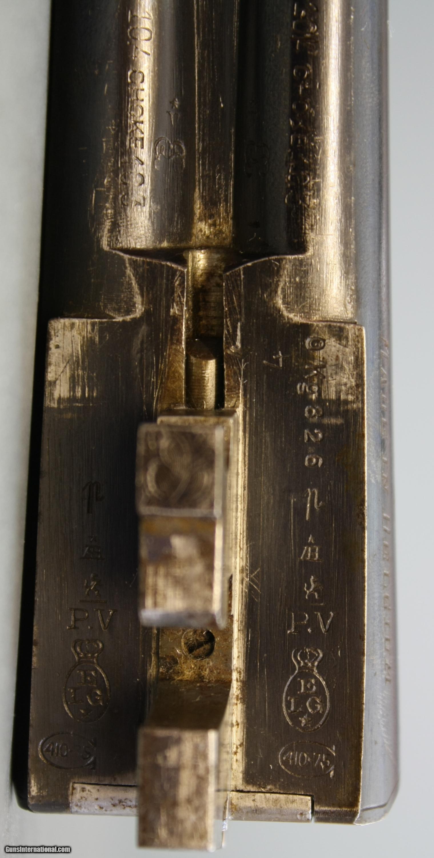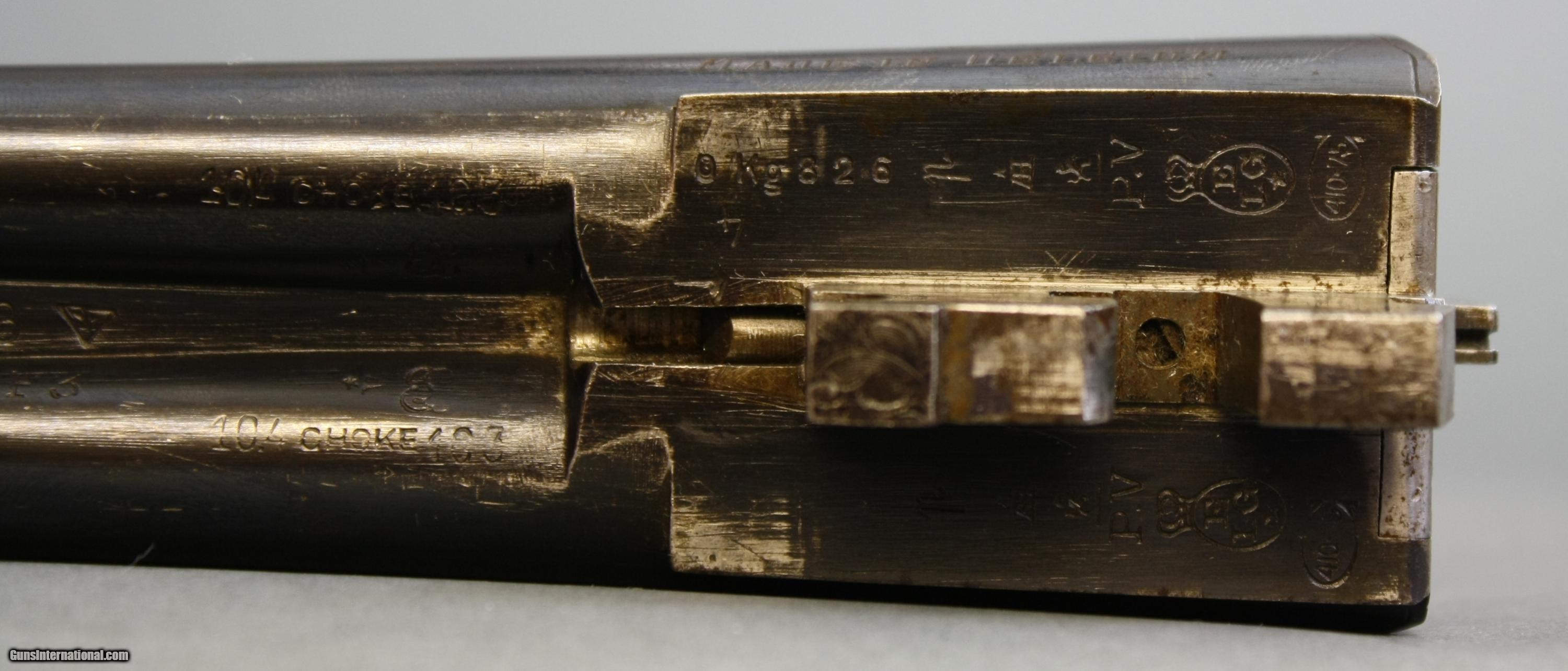 Description: Belgium .410 double made by Charles Darlen. This gun is unfamliar to me so please feel free to ask questions and I'll do my best to answer them for you. It is extremely well made and very tight in all aspects. Side clips and extractors. It has 26" barrels that ring like bells and have nice bores. Chokes measured with a Galazan cheater gauge measure imp/mod in each barrel. The little gun weighs 4 lbs 2 oz and the stock has very shootable dimensions. Wrist circumference is just barely 4" so it feels like a small wand. The only issue I can see is a few small and scattered rust spots from poor storage. They will polish out with a couple thousandths, or leave as is. Overall, this is a well made little .410 in nice condition. Quality trades considered. SOLD Curio/Relic: Yes Manufacturer: Charles Darlen Bore: nice Ejectors: no Condition: original Gauge Info: .410 Stock Dimensions: 14 x 1 1/2 x 2 1/4 Weight: 4 lbs 2 oz Choke Left: imp/mod Choke Right: imp/mod |