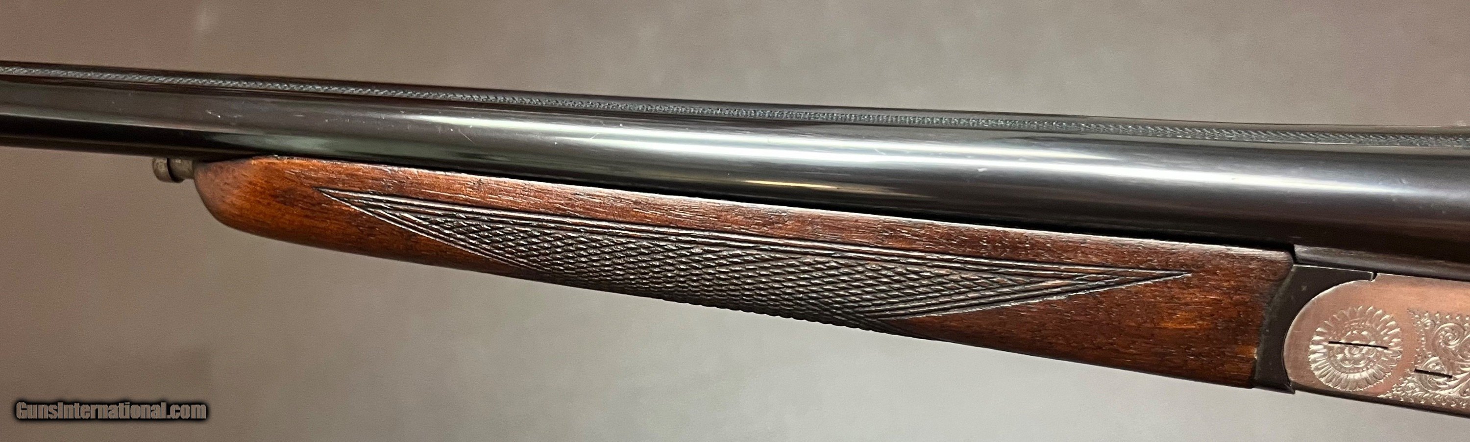 Description: Denton & Kennell boxlock ejector .410 27 3/4" ejector matted game rib barrels with single front bead 3" magnum chambers Chokes: .020/.025 F/F Bore measurements: .413/.413 Bores are bright & clean Lockup is tight as new Ejectors are perfectly timed Triggers are crisp Figured straight grip stock with splinter forend LOP 14 1/8" over ebony wood plate DAC 1 3/8 DAH 2 1/8 Cast off 3/8" 5lbs 12oz Scaled .410 coin finished scroll engraved action with disc set strikers. Very well built .410 boxlock ejector that appears to have had little use, some minor handling marks and storage wear. Great dimensions and weight for game/clays. Shotgun Gauge: .410 Gauge Price: $1,600.00 Buy Now Contact Seller |