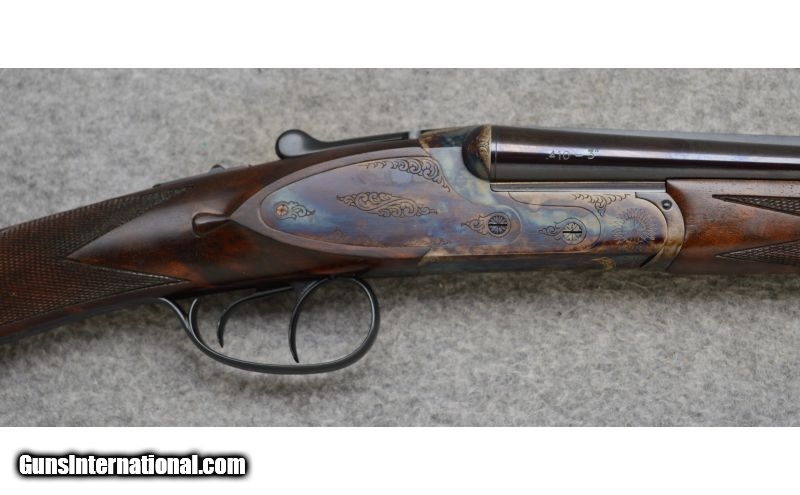Description: Excellent condition overall with original case. SOLD Manufacturer: Circa: 2015 Caliber Info: .410 Gauge Chambers: 3 Metal Condition: Excellent Wood Condition: Excellent Bore Condition: Excellent Barrels: 28" with Tapered Concave Rib Triggers: Double Triggers with Ejectors Stock: Deluxe Checkered Straight Grip Walnut Stock Dimensions: DAC: 1 1/2", DAH: 2 1/4", Cast off: 1/8", LOP: 14 3/4 Fore End: Checkered Splinter Style Butt Pad: Checkered Wood Butt Weight: 5 lbs. 8 ozs. Sights: Single Bead Chokes: Fixed: Modified & Modified Item Location: Hamburg, PA |