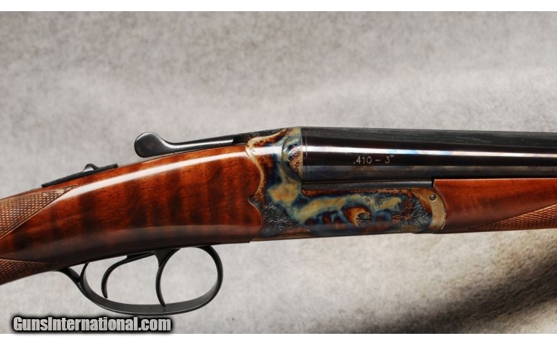 Description: SOLD Caliber Info: .410 cal Chambers: 3 Metal Condition: New Gun Wood Condition: New Gun Bore Condition: New Gun Barrels: 28" Ejectors Triggers: Double Triggers Stock: Checkered English Grip Stock Dimensions: 14 5/8" LOP Fore End: Checkered Splinter Butt Pad: Checkered Butt Weight: 5Lbs 10 Oz. Sights: Front Bead Chokes: IC & FULL Item Location: Scarborough, ME |