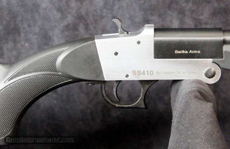 Description: .410, #B21SS1177, 20 inch barrel, 3 inch chamber, blue and bright metal, composite stock and forearm, folds in half, manufactured by Berika in Turkey Condition: excellent bore, little use, 98% overall. Price: $235.00 Contact Seller |
